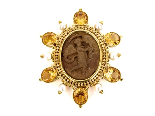 18k Yellow Gold Stunning Citrine And Cultured Pearl Framed Cherub Cameo Brooch #441122. Black Rock Galleries provides high end estate liquidation services through online estate auctions and a 50,000 sq ft designer showroom. estate liquidator, estate sale, online auction, antiques, fine art, liquidation, clean outs, auction, consignment, interior design, fine jewelry, collectibles, appraisals, estate appraisals, estate services, decor, furniture, furniture consignment, antique center, consignment shop. We offer appraisal services and specialize in fine art, jewelry, antiques and decorative arts. Sell with us. Black Rock Galleries is the tri-state's largest estate liquidator serving New England and the greater New York City area. We are the trusted source for expert appraisals, auction services, estate sales, and consignments. Black Rock Galleries is the east coast's largest and most trusted estate liquidator, with locations in Connecticut, greater Boston, MA and Raleigh, NC, Fairfield, Southport, Apex, TX. We are the best source for expert appraisals, auction services, estate sales and consignments. We have served thousands of families and estates with compassion, professionalism and expertise. BRG works with attorneys, executors, realtors and families to bring the greatest return on personal and estate property in the current market. Our unique combination of services make us the easy choice to get the job done in a timely and stress-free manner. We are with you from the initial consultation to the final clean out. Our house-built online auction software platform offers clients a dynamic approach to liquidating their personal property. This venue is most successful in bringing the best return with the least amount of disruption for our clients. See our services page for a complete description of this offering. 18k Yellow Gold Stunning Citrine And Cultured Pearl Framed Cherub Cameo Brooch #441122