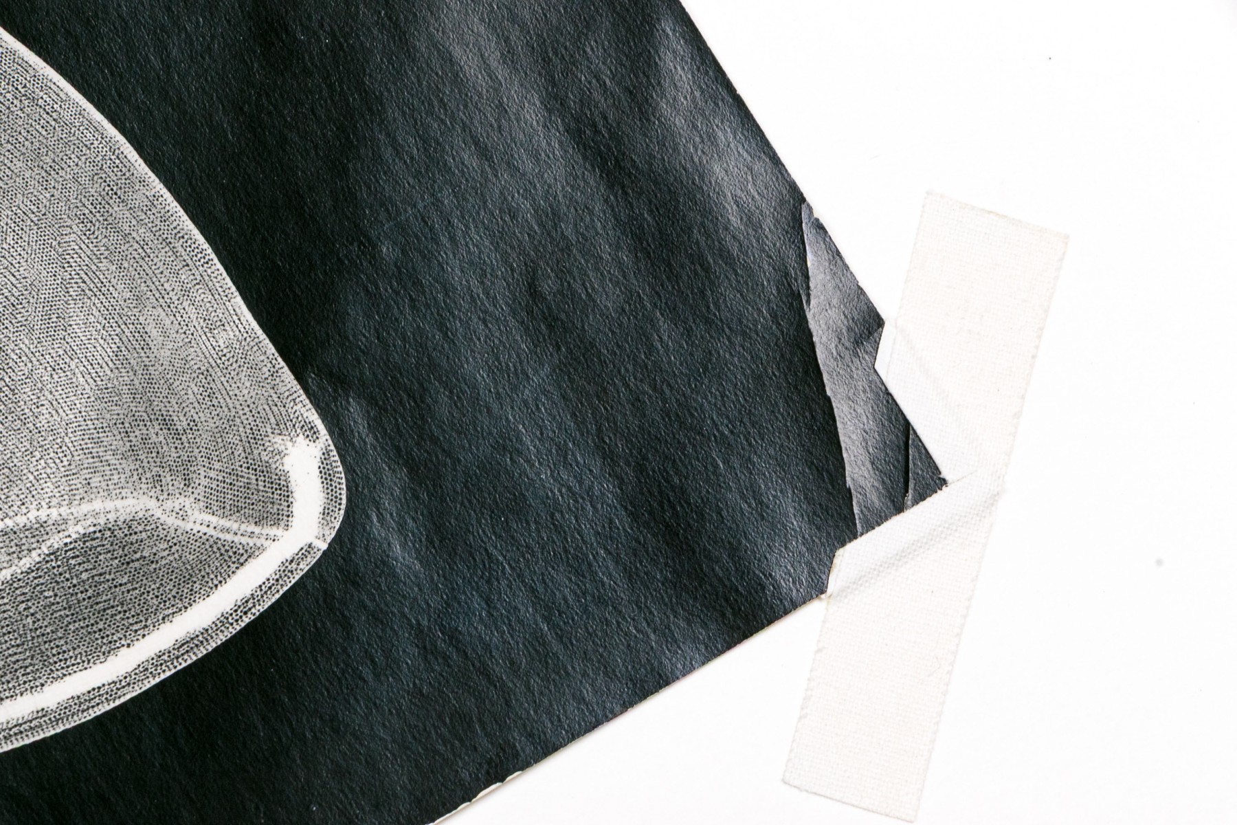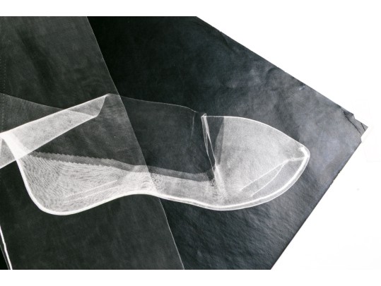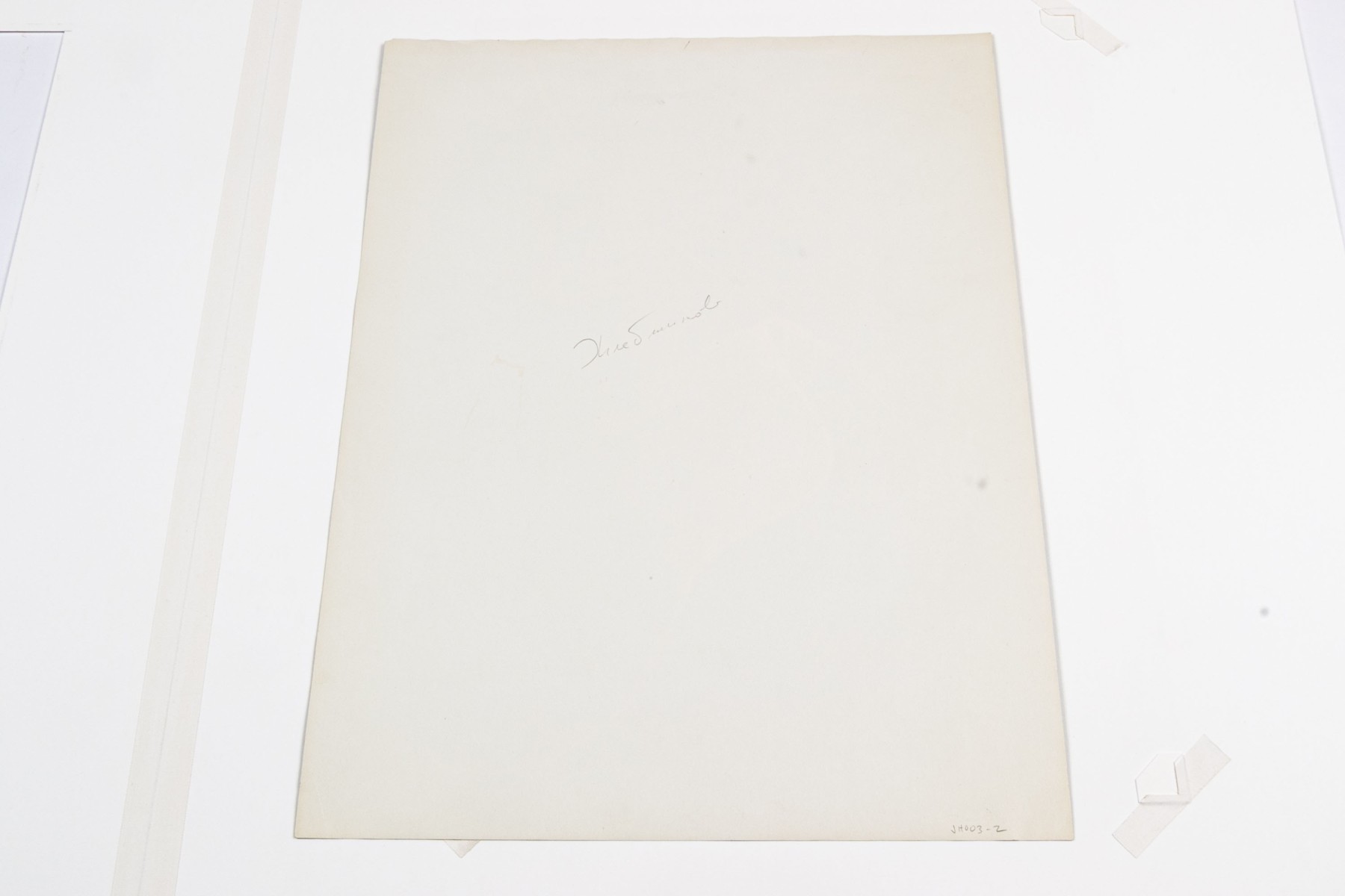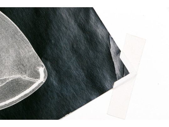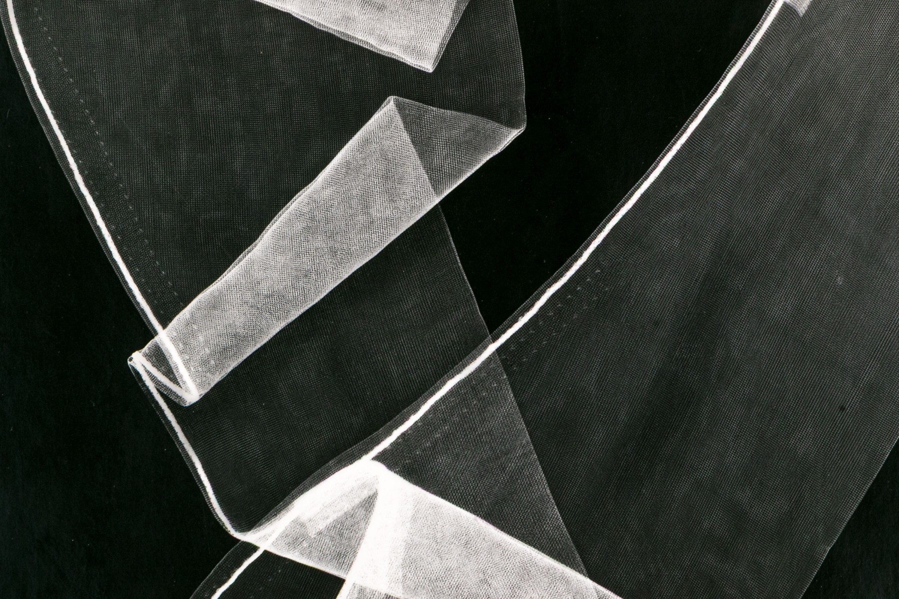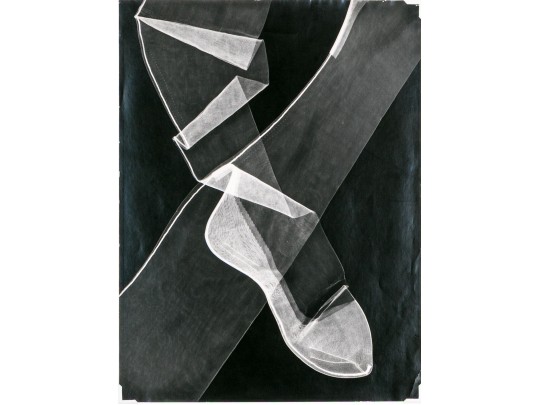 Alexander Khlebnikov (Russian, 1897-1979) “Photogram" 1935 gelatin silver print depicting a pair of stockings with eye-catching contrast created by the overlapping transparent fabric against a black ground. With handwritten labels on the verso and bearing a label from Lallak + Tom Gallery denoting the original gallery price of $3,500. Unframed.
