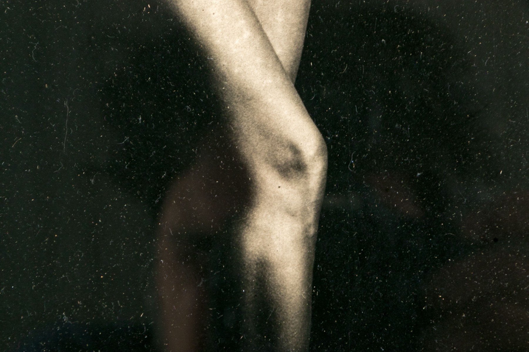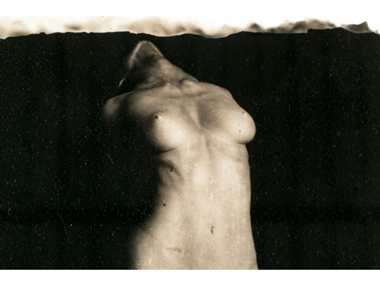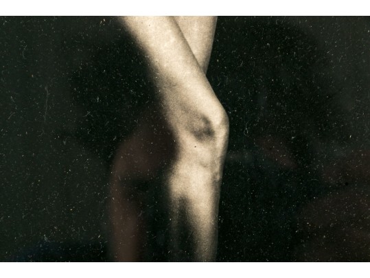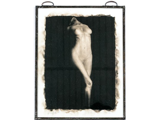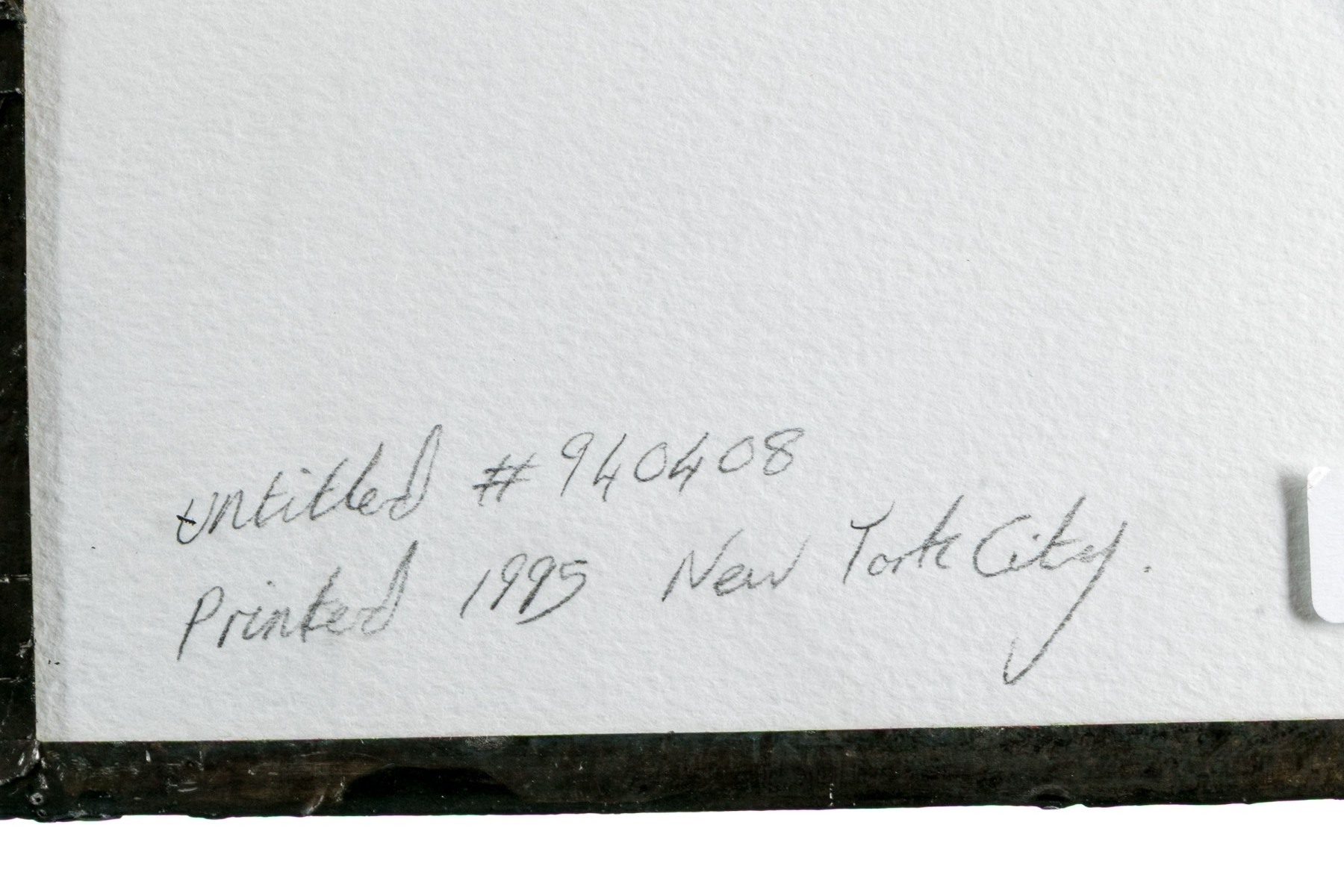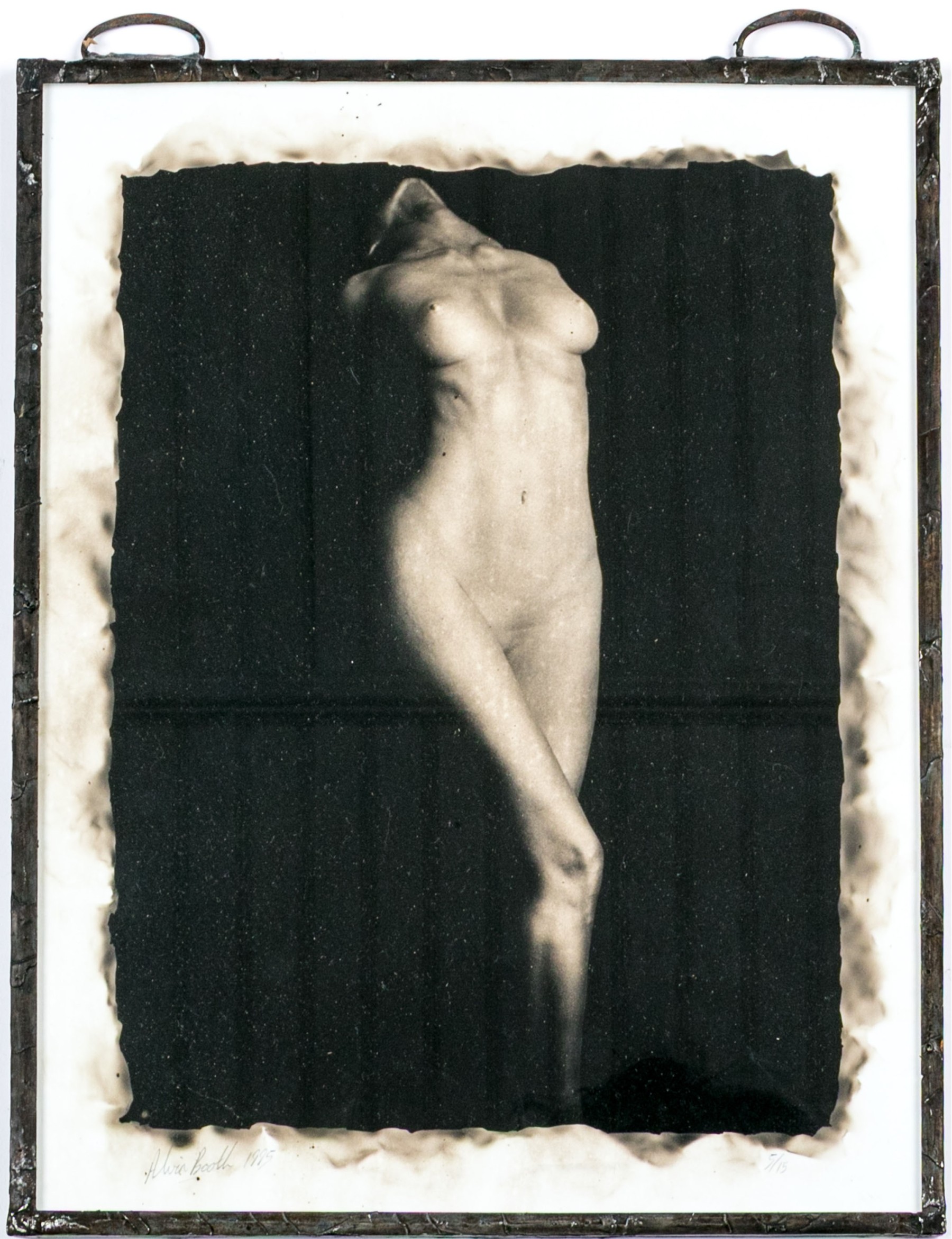 Alvin Booth (English-American [NY], B. 1959) "Untitled #940408" photographic print depicting a female nude posed dramatically with head tipped back and one knee forward against a black ground. Signed and dated lower left, labeled on the verso.