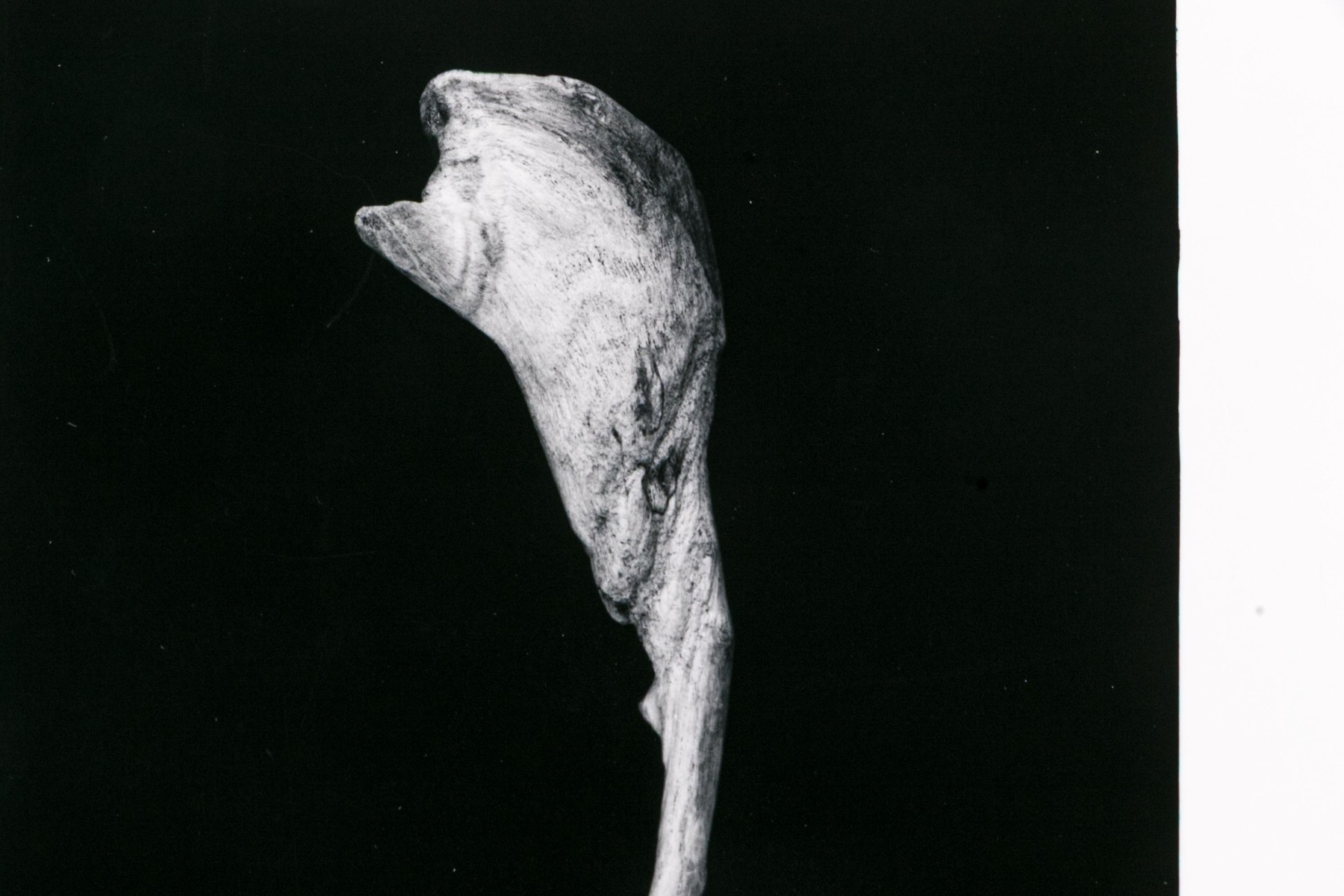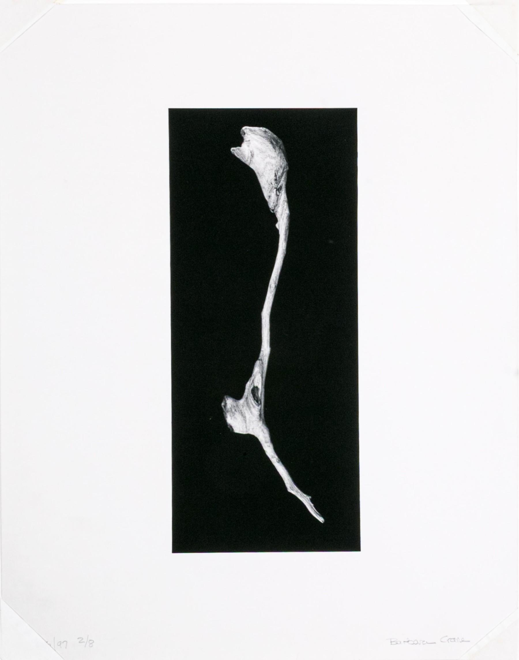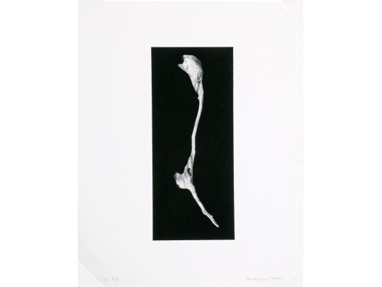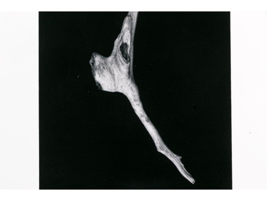 Barbara Crane (American, 1928-2019) gelatin silver print from the Coloma to Covert: Sticks, 1997 Series depicting an eye-catching gnarled stick against a black ground. Handwritten labels on the verso with the edition 2/8. Unframed.