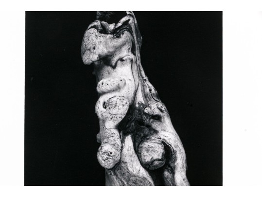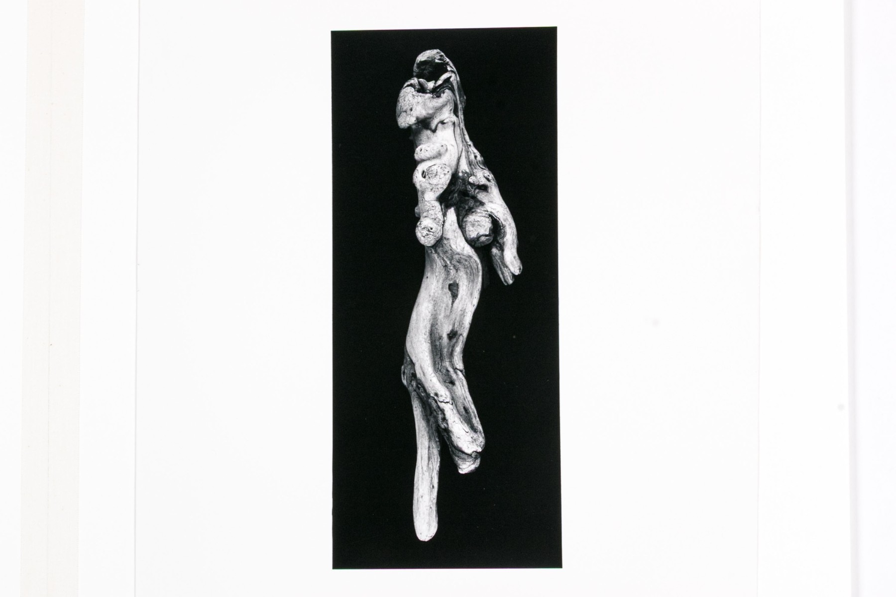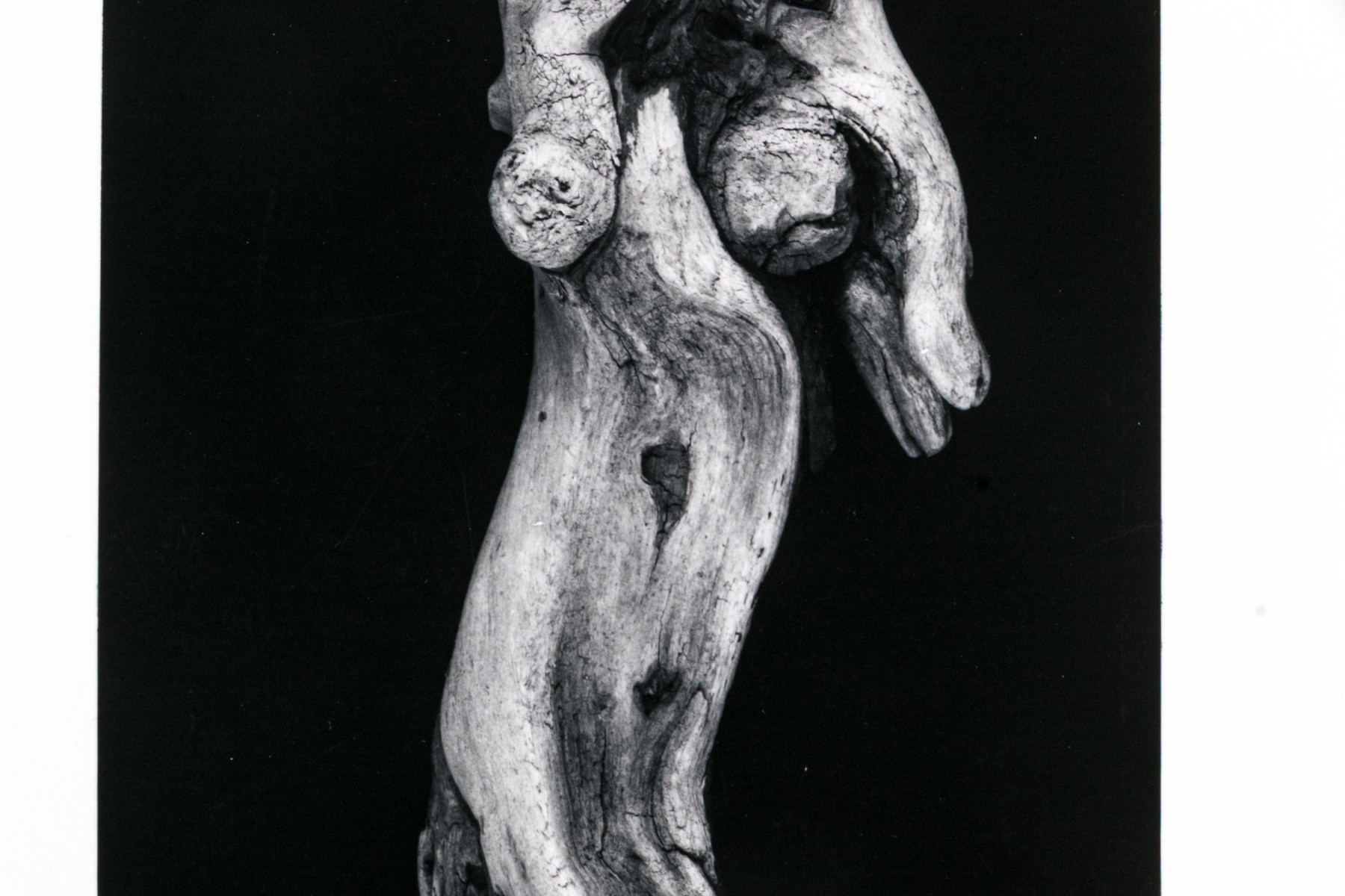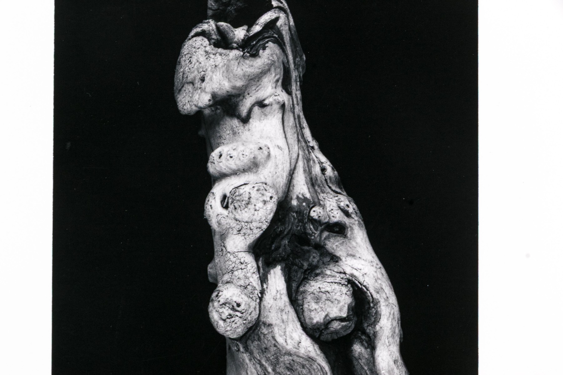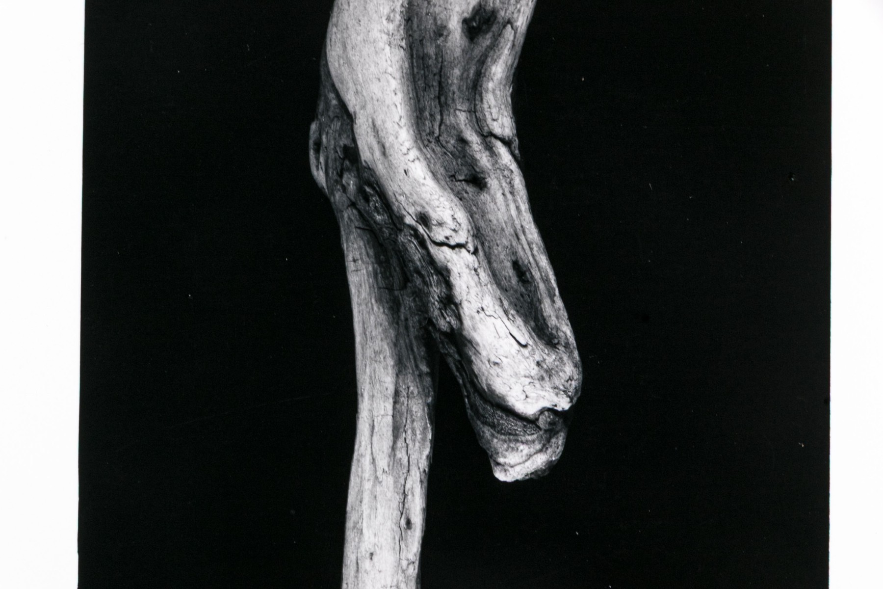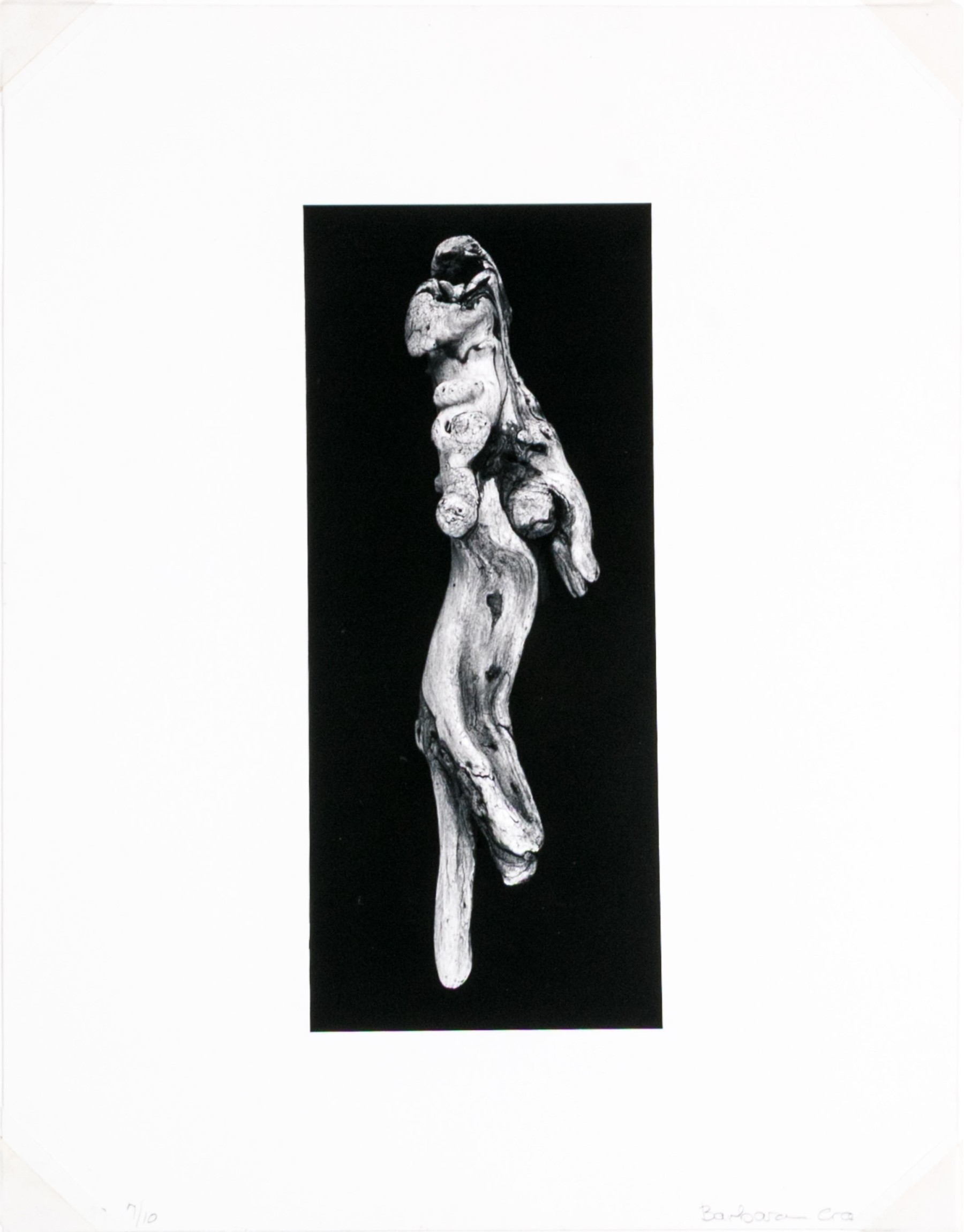 Barbara Crane (American, 1928-2019) gelatin silver print from the Coloma To Covert: Sticks Series depicting a figural gnarled branch with great detail and high contrast against a black ground. Handwritten labels to the verso. Unframed.