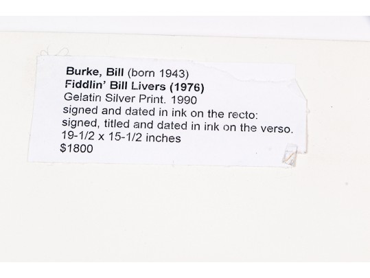 Bill Burke (American, B. 1943) “Fiddlin’ Bill Livers, 1976" Signed Gelatin Silver Print #446404. Black Rock Galleries provides high end estate liquidation services through online estate auctions and a 50,000 sq ft designer showroom. estate liquidator, estate sale, online auction, antiques, fine art, liquidation, clean outs, auction, consignment, interior design, fine jewelry, collectibles, appraisals, estate appraisals, estate services, decor, furniture, furniture consignment, antique center, consignment shop. We offer appraisal services and specialize in fine art, jewelry, antiques and decorative arts. Sell with us. Black Rock Galleries is the tri-state's largest estate liquidator serving New England and the greater New York City area. We are the trusted source for expert appraisals, auction services, estate sales, and consignments. Black Rock Galleries is the east coast's largest and most trusted estate liquidator, with locations in Connecticut, greater Boston, MA and Raleigh, NC, Fairfield, Southport, Apex, TX. We are the best source for expert appraisals, auction services, estate sales and consignments. We have served thousands of families and estates with compassion, professionalism and expertise. BRG works with attorneys, executors, realtors and families to bring the greatest return on personal and estate property in the current market. Our unique combination of services make us the easy choice to get the job done in a timely and stress-free manner. We are with you from the initial consultation to the final clean out. Our house-built online auction software platform offers clients a dynamic approach to liquidating their personal property. This venue is most successful in bringing the best return with the least amount of disruption for our clients. See our services page for a complete description of this offering. Bill Burke (American, B. 1943) “Fiddlin’ Bill Livers, 1976" Signed Gelatin Silver Print #446404