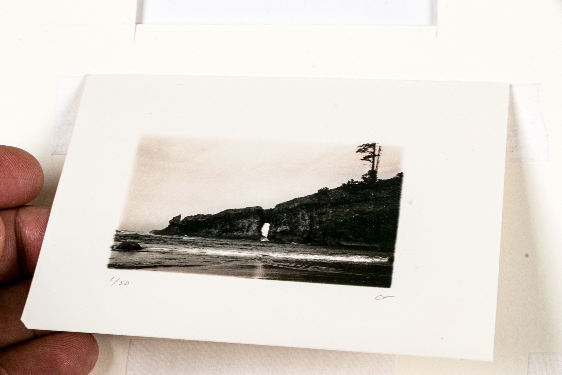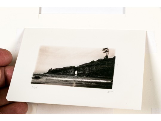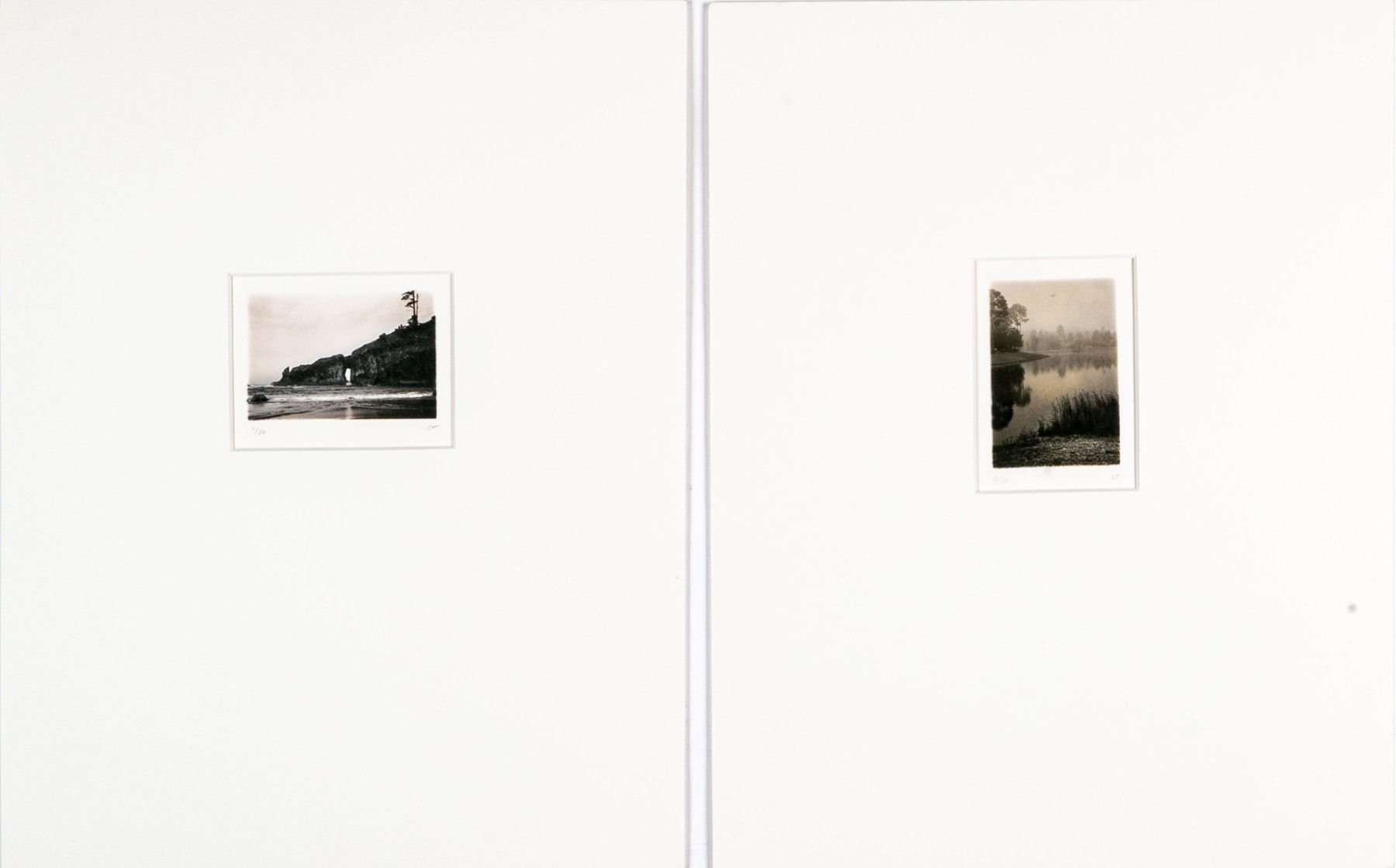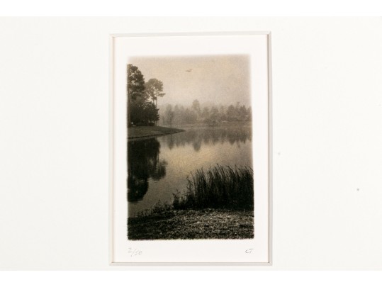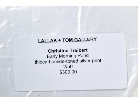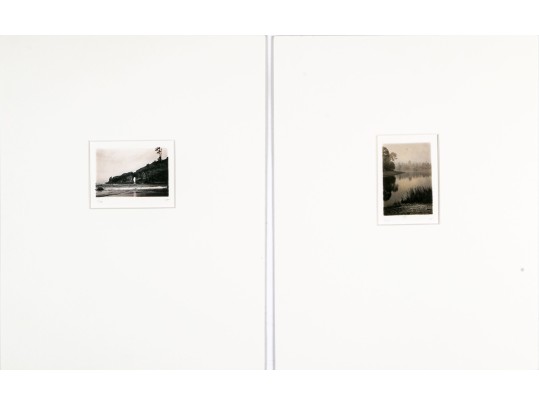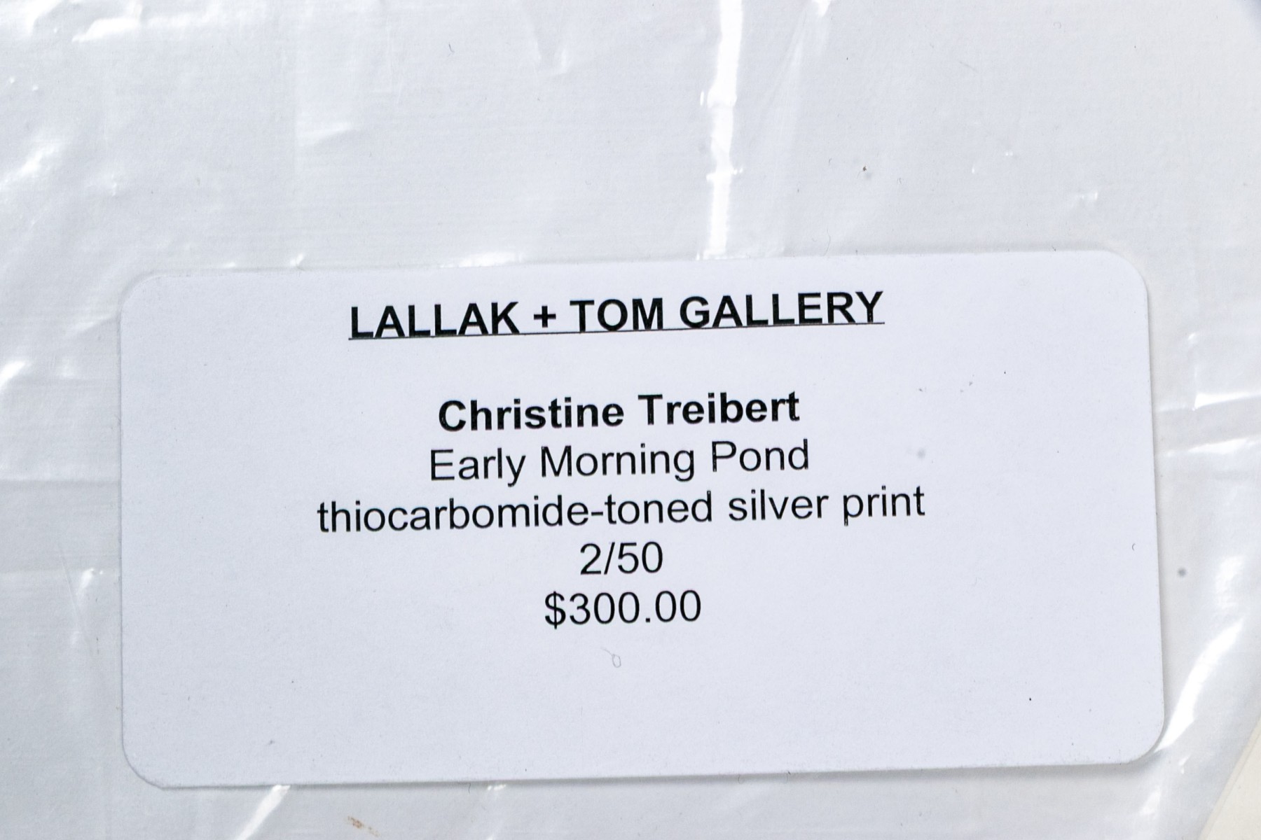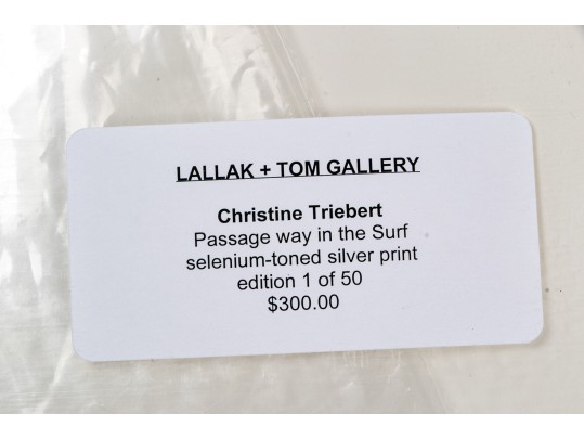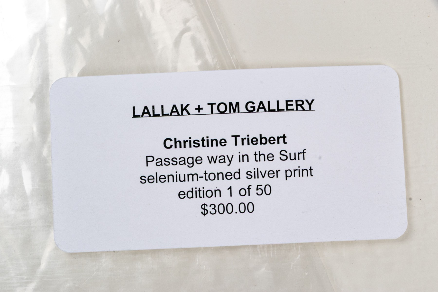 Christine Triebert (American [VT], b. 1951) "Early Morning Pond" and "Passageway in the Surf" silver prints depicting atmospheric waterscapes with a keen eye for contrast. Signed and numbered below the margin. Matted, unframed.