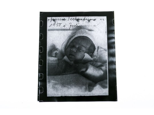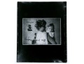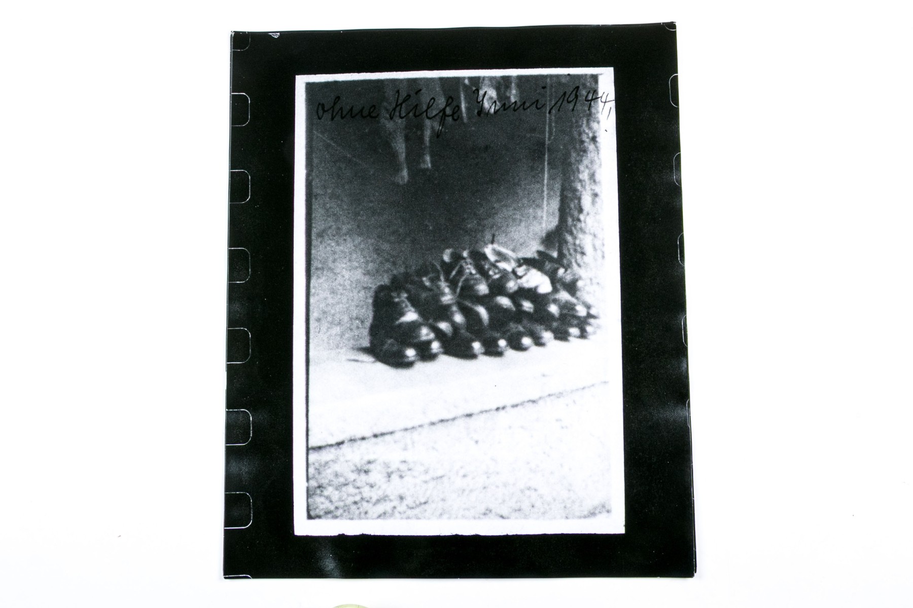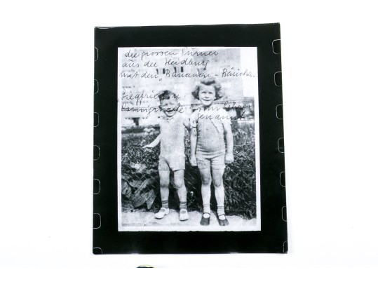 A wonderful collection of seventeen photographic prints depicting compositions with portraits and a scene of stacked shoes, many superimposed with written words. Unframed.