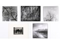 A wonderful collection of five gelatin silver print by Michael Miller depicting scenes of trees and urban landscapes. Pencil signed, numbered, and titled on the verso. Unframed.