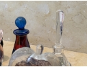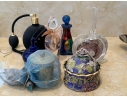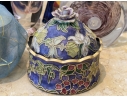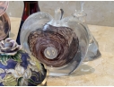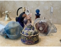 - A pentagonal footed box with hinged glass top. The box is gilt metal and crystal perfume bottle, pair footed scent bottle, brass mounted glass vase - 11” H