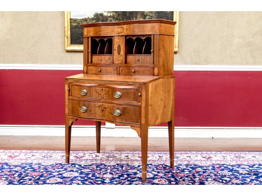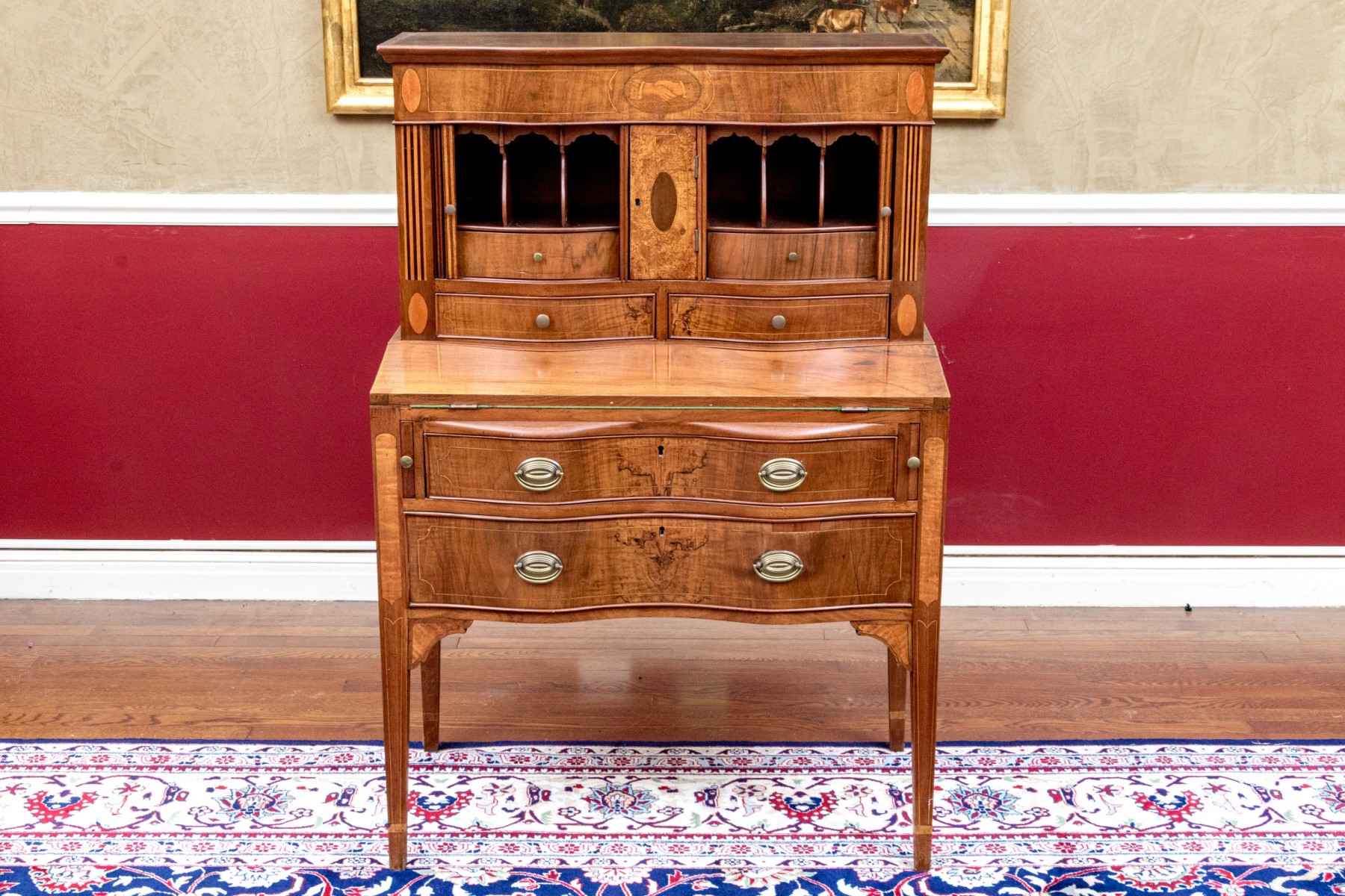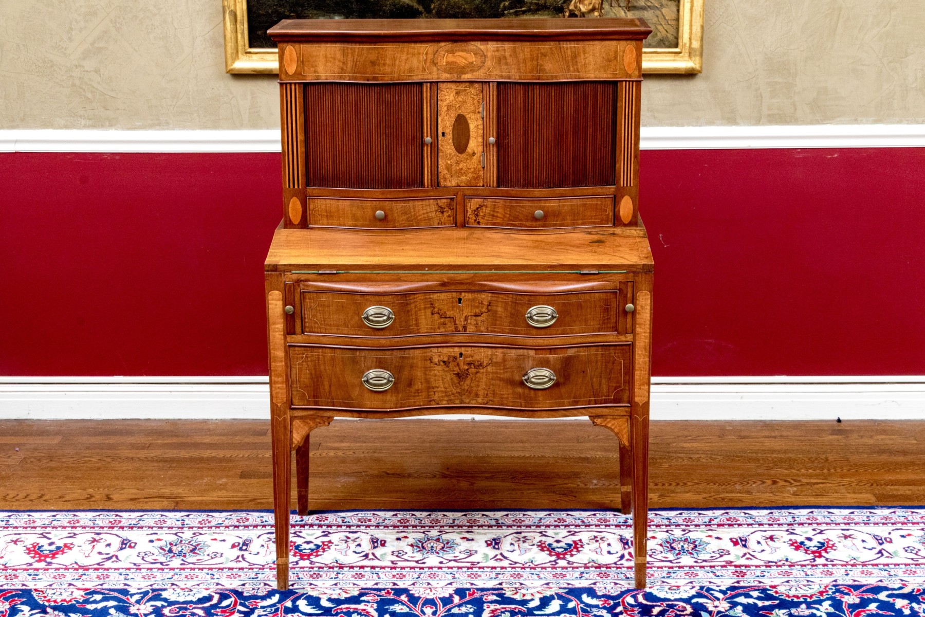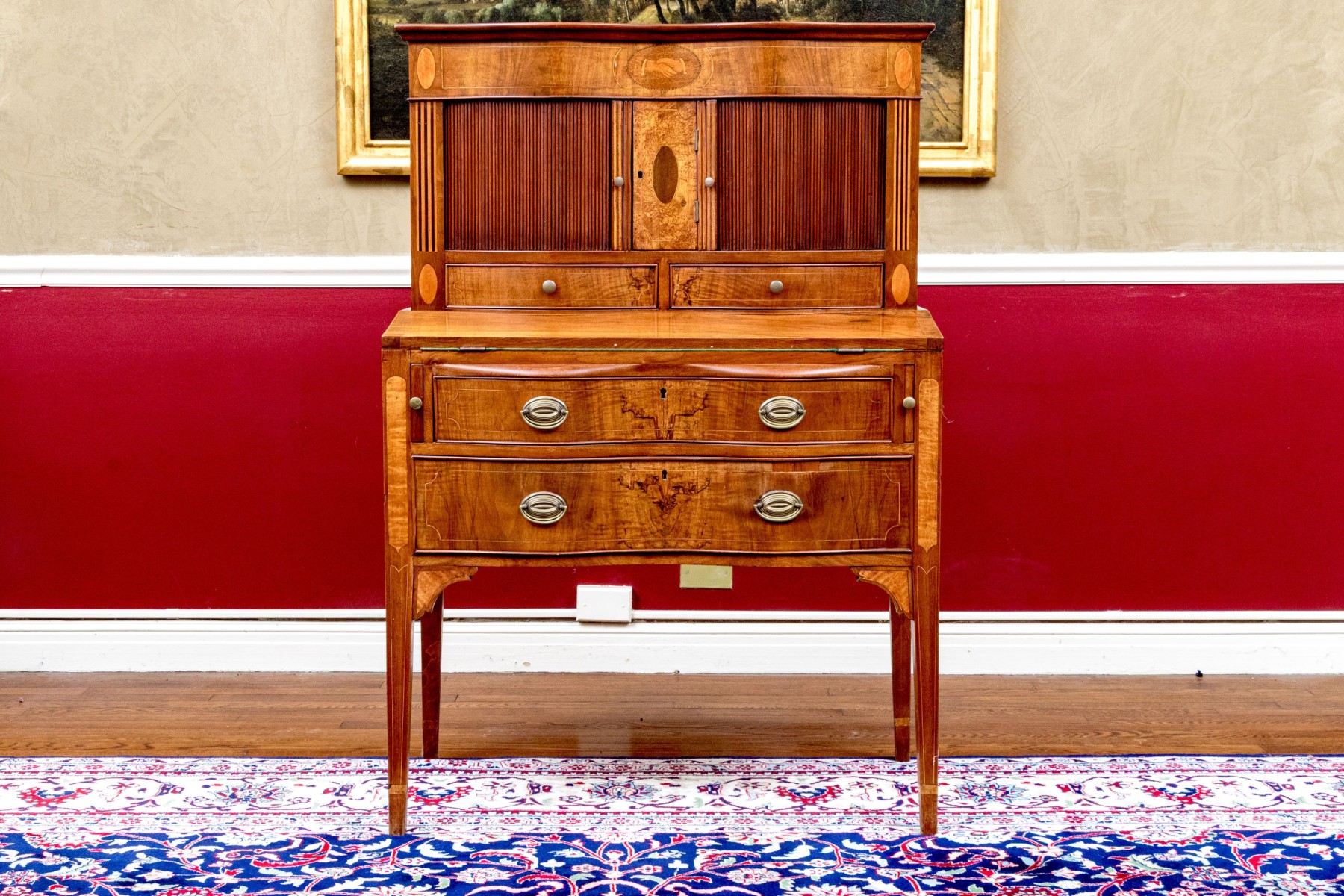 Federal Style Serpentine Tambour Secretary Desk #441339. Black Rock Galleries provides high end estate liquidation services through online estate auctions and a 50,000 sq ft designer showroom. estate liquidator, estate sale, online auction, antiques, fine art, liquidation, clean outs, auction, consignment, interior design, fine jewelry, collectibles, appraisals, estate appraisals, estate services, decor, furniture, furniture consignment, antique center, consignment shop. We offer appraisal services and specialize in fine art, jewelry, antiques and decorative arts. Sell with us. Black Rock Galleries is the tri-state's largest estate liquidator serving New England and the greater New York City area. We are the trusted source for expert appraisals, auction services, estate sales, and consignments. Black Rock Galleries is the east coast's largest and most trusted estate liquidator, with locations in Connecticut, greater Boston, MA and Raleigh, NC, Fairfield, Southport, Apex, TX. We are the best source for expert appraisals, auction services, estate sales and consignments. We have served thousands of families and estates with compassion, professionalism and expertise. BRG works with attorneys, executors, realtors and families to bring the greatest return on personal and estate property in the current market. Our unique combination of services make us the easy choice to get the job done in a timely and stress-free manner. We are with you from the initial consultation to the final clean out. Our house-built online auction software platform offers clients a dynamic approach to liquidating their personal property. This venue is most successful in bringing the best return with the least amount of disruption for our clients. See our services page for a complete description of this offering. Federal Style Serpentine Tambour Secretary Desk #441339
