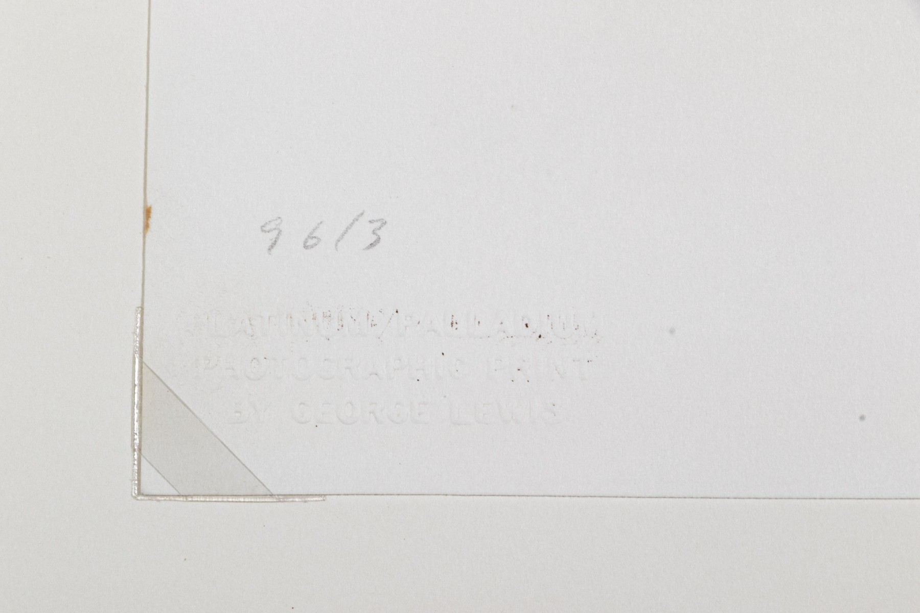 Signed, numbered edition #3, labeled with the print being made '97 and the negative '96; with an embossed label at the lower corner and pencil labeled 96/3. In a mount wrapped in plastic, unframed.
