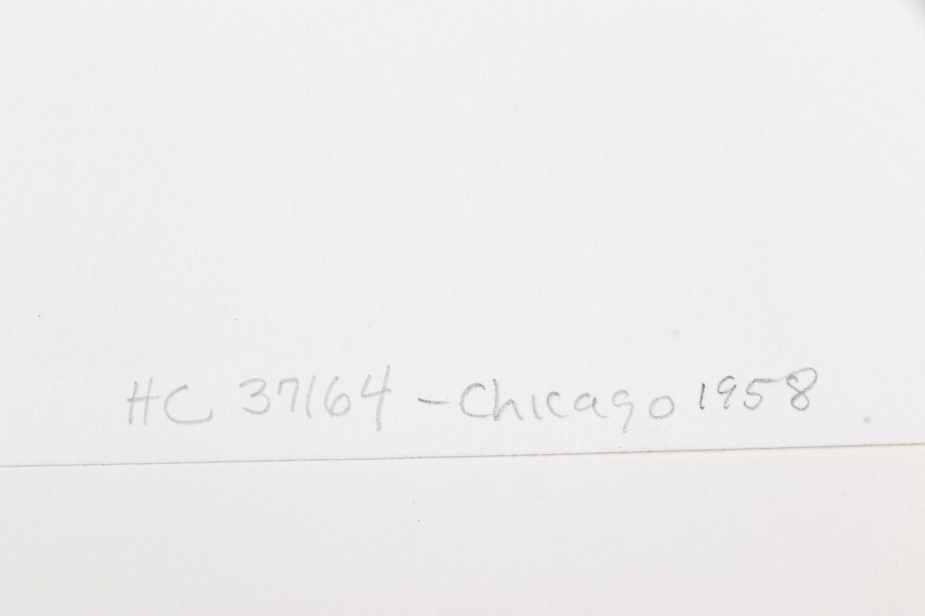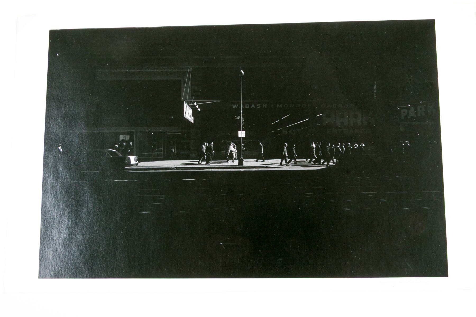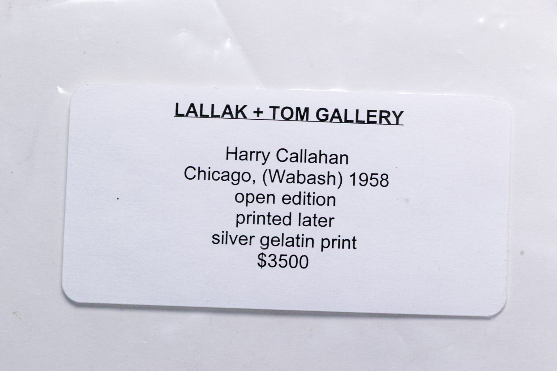 Harry Callahan (American, 1912-1999) "Chicago (Wabash)" gelatin silver print depicting a crowd of figures walking an urban sidewalk. Bearing a label from Lallak + Tom Gallery denoting the piece as being printed later and having an original gallery price of $3,500. Unframed.