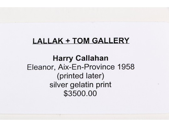 Harry Callahan (American, 1912-1999) "Eleanor, Aix-En-Province" Signed Gelatin Silver Print #446427. Black Rock Galleries provides high end estate liquidation services through online estate auctions and a 50,000 sq ft designer showroom. estate liquidator, estate sale, online auction, antiques, fine art, liquidation, clean outs, auction, consignment, interior design, fine jewelry, collectibles, appraisals, estate appraisals, estate services, decor, furniture, furniture consignment, antique center, consignment shop. We offer appraisal services and specialize in fine art, jewelry, antiques and decorative arts. Sell with us. Black Rock Galleries is the tri-state's largest estate liquidator serving New England and the greater New York City area. We are the trusted source for expert appraisals, auction services, estate sales, and consignments. Black Rock Galleries is the east coast's largest and most trusted estate liquidator, with locations in Connecticut, greater Boston, MA and Raleigh, NC, Fairfield, Southport, Apex, TX. We are the best source for expert appraisals, auction services, estate sales and consignments. We have served thousands of families and estates with compassion, professionalism and expertise. BRG works with attorneys, executors, realtors and families to bring the greatest return on personal and estate property in the current market. Our unique combination of services make us the easy choice to get the job done in a timely and stress-free manner. We are with you from the initial consultation to the final clean out. Our house-built online auction software platform offers clients a dynamic approach to liquidating their personal property. This venue is most successful in bringing the best return with the least amount of disruption for our clients. See our services page for a complete description of this offering. Harry Callahan (American, 1912-1999) "Eleanor, Aix-En-Province" Signed Gelatin Silver Print #446427