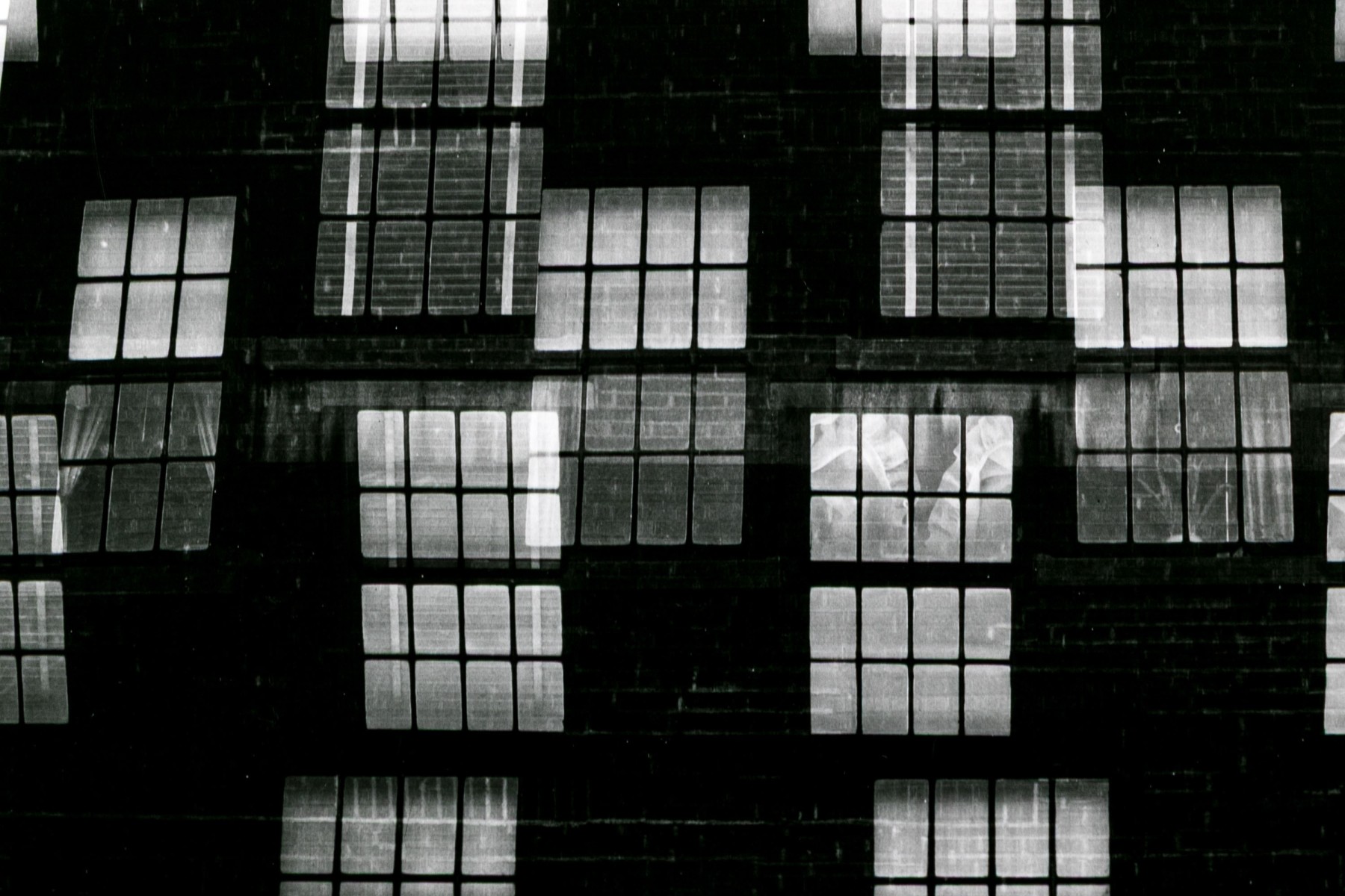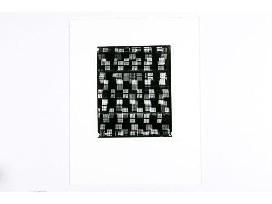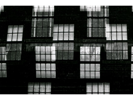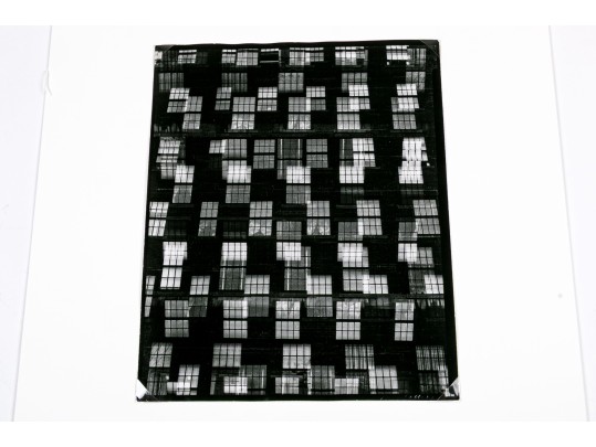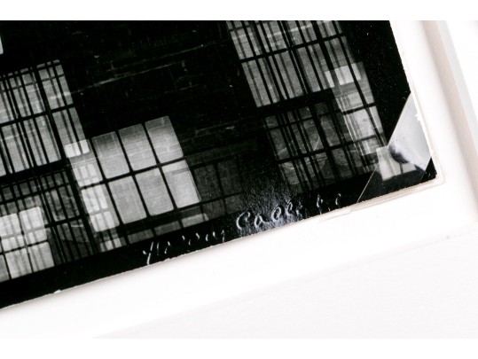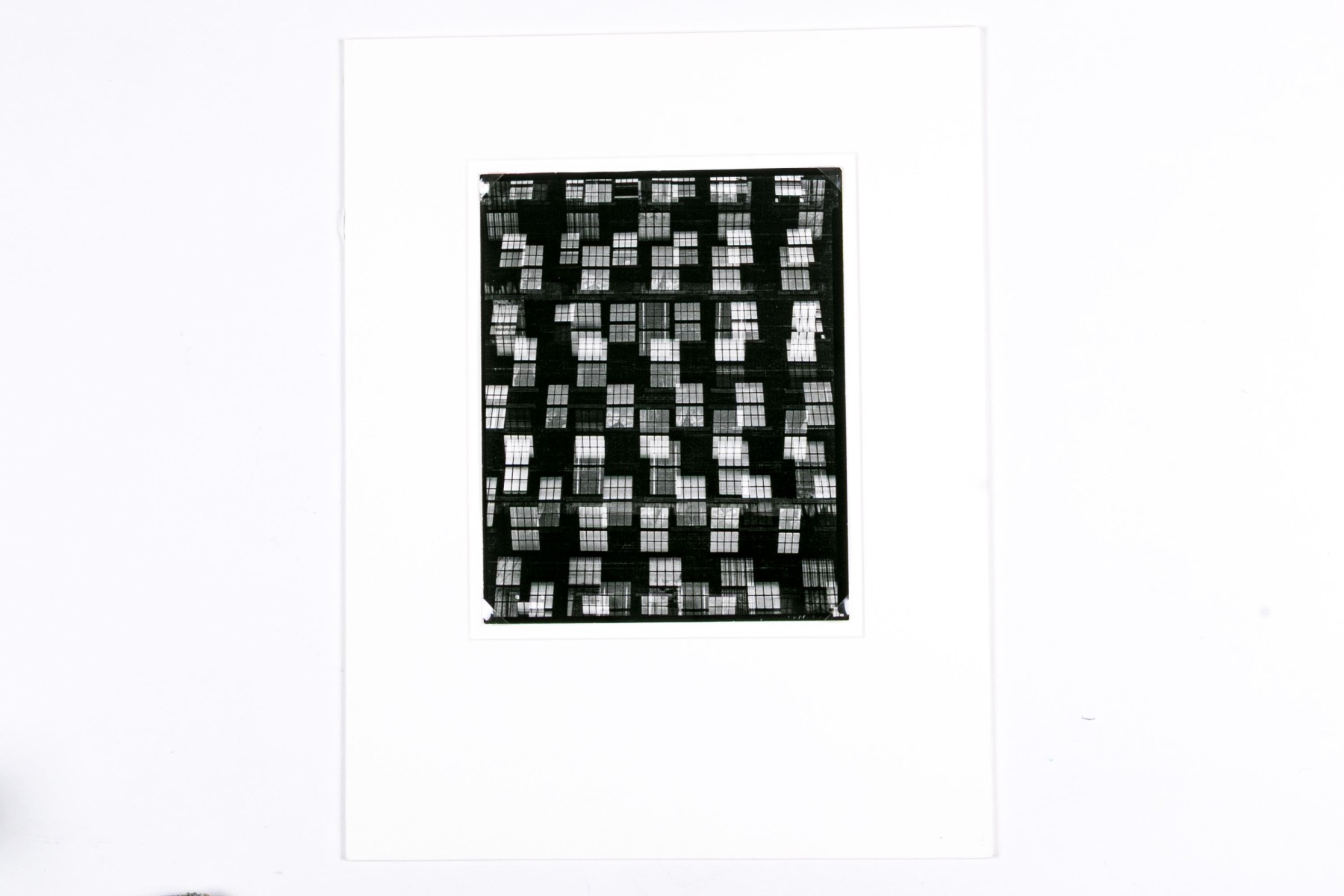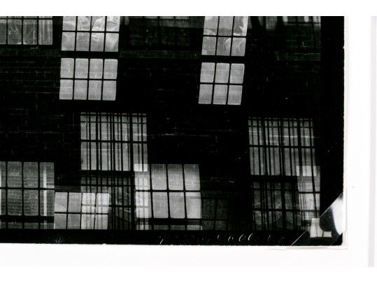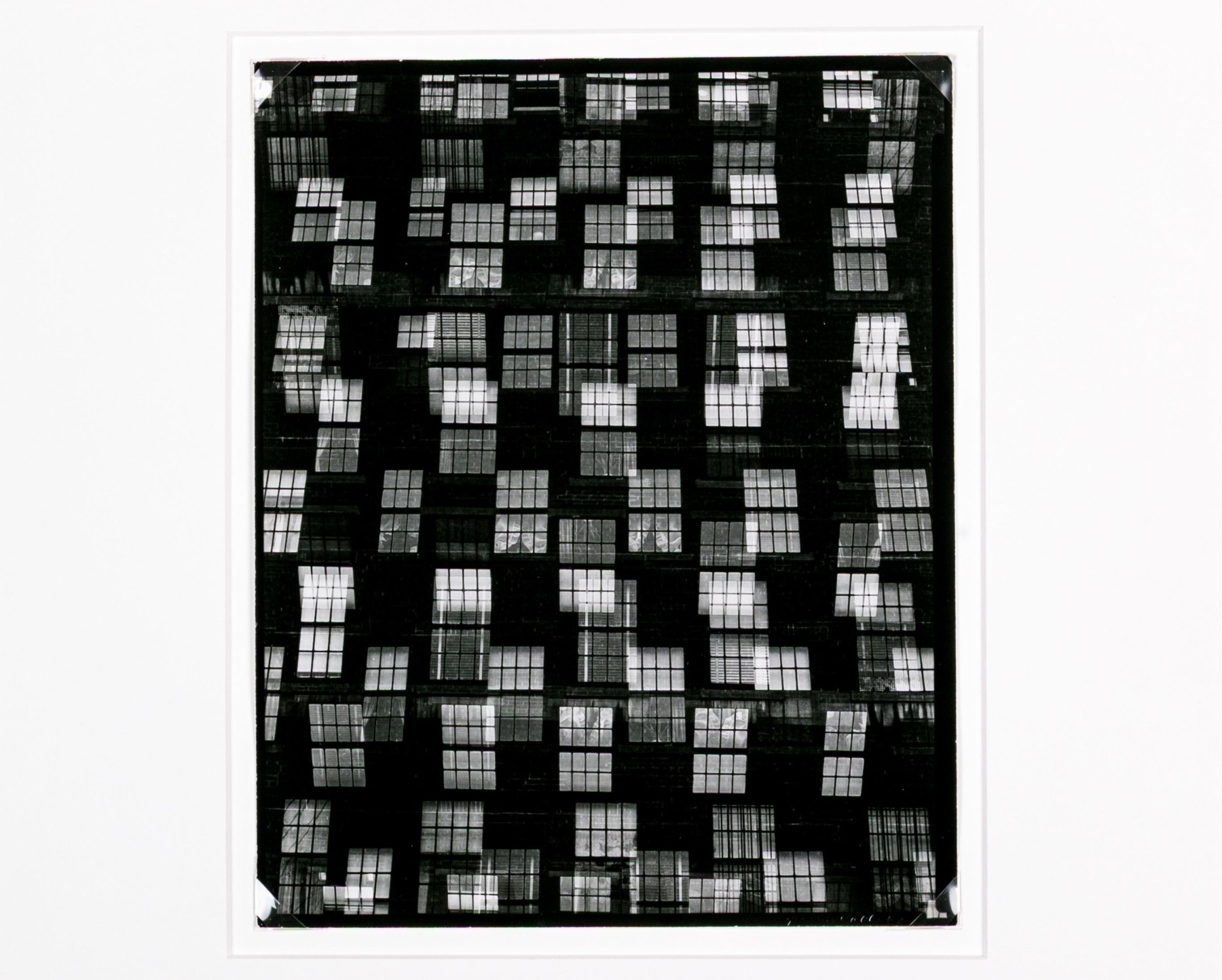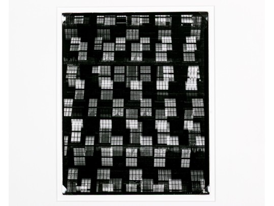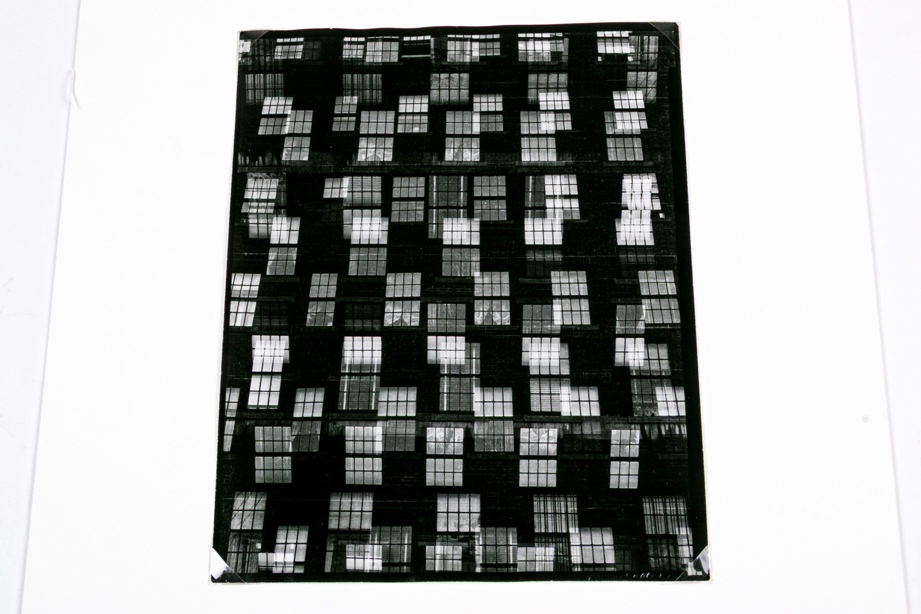Harry Callahan (American, 1912-1999) "Untitled (Chicago)" gelatin silver print depicting overlaid views of windows on an urban building creating an eye-catching pattern. Handwritten labels on the verso. Unframed.