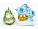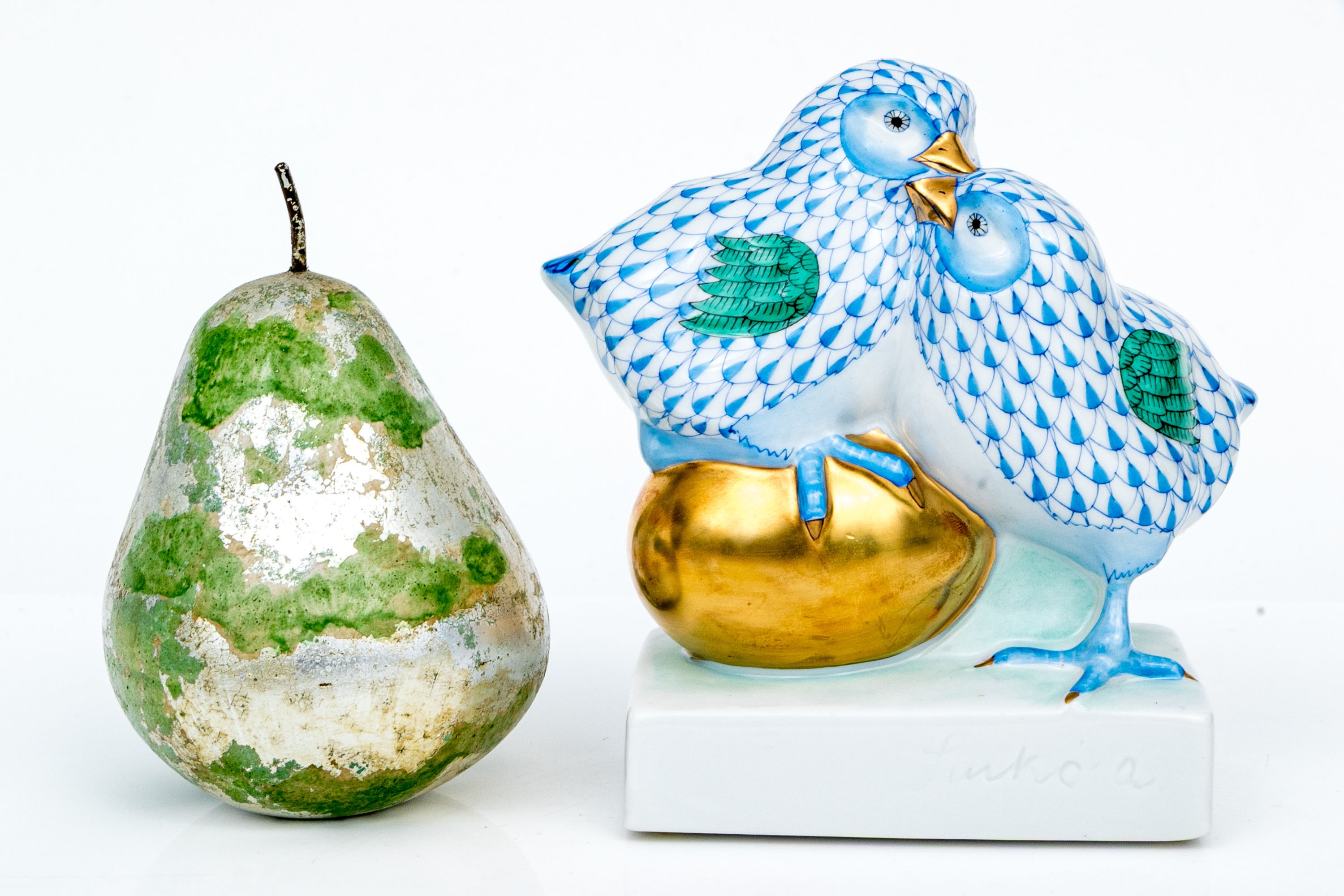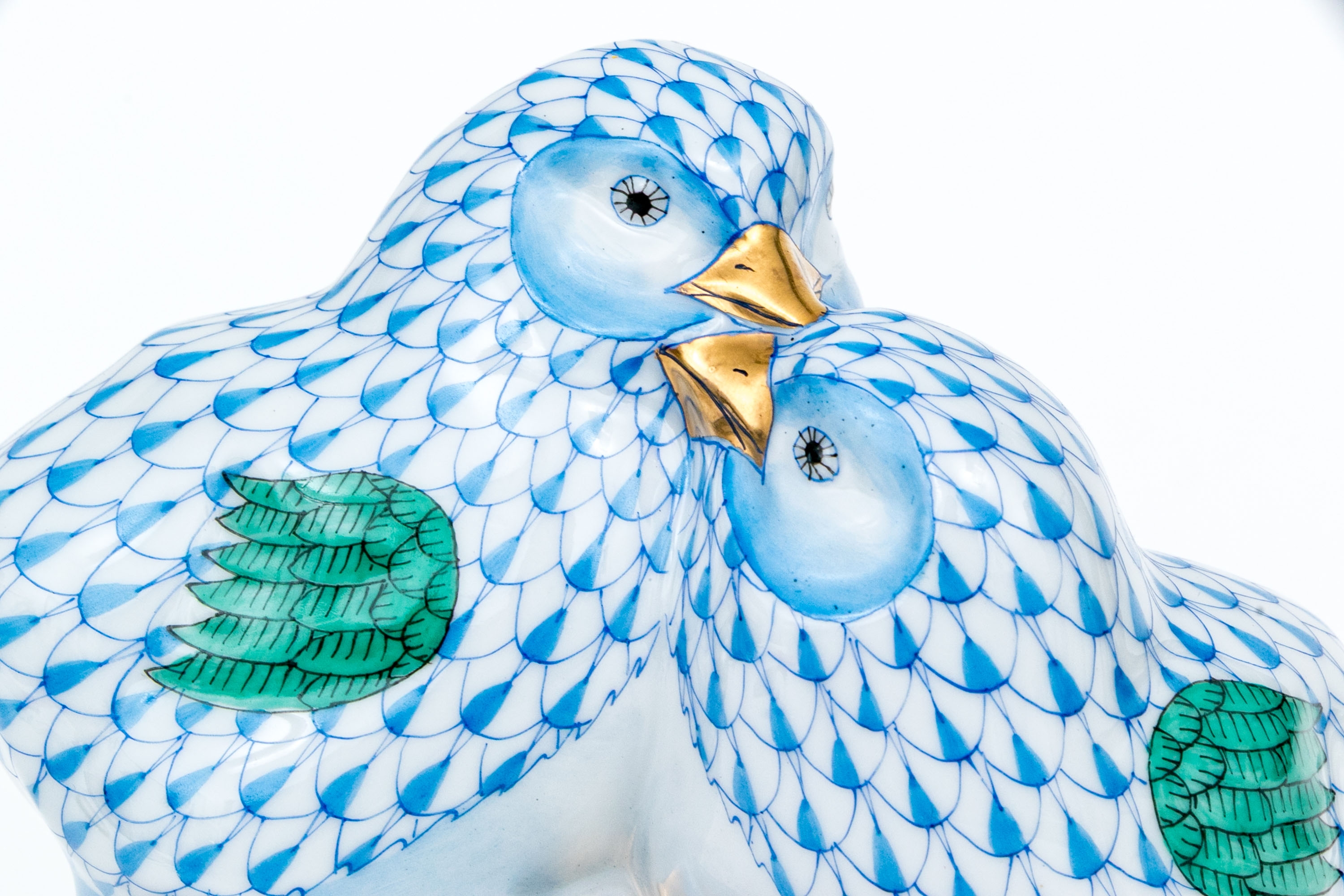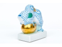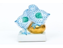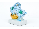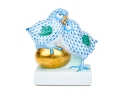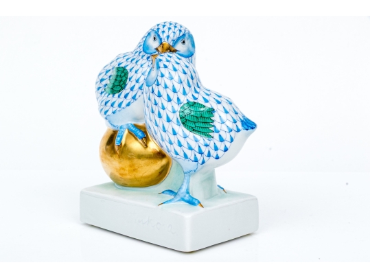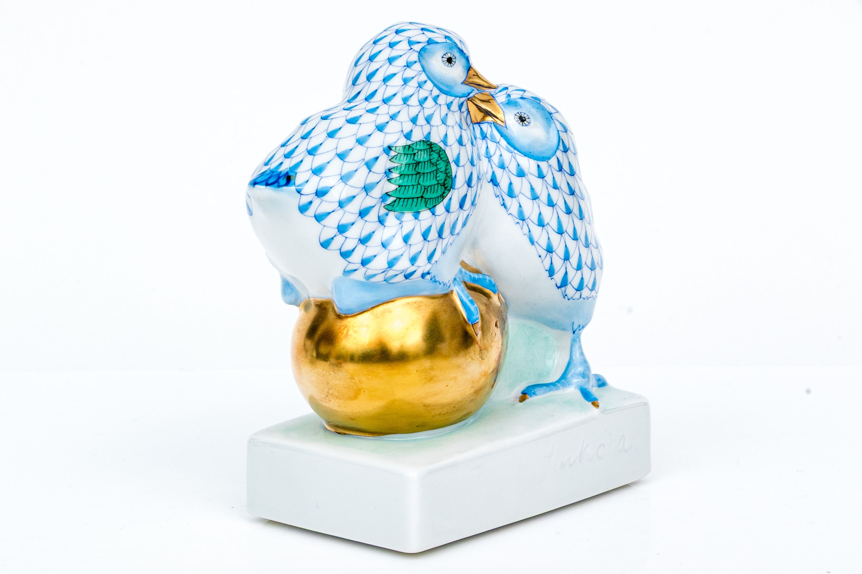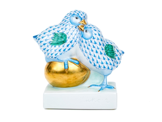 Herend Commemorative Hand-Painted Pair Of Chicks With Golden Egg, Blue Fishnet (VHB) Patter