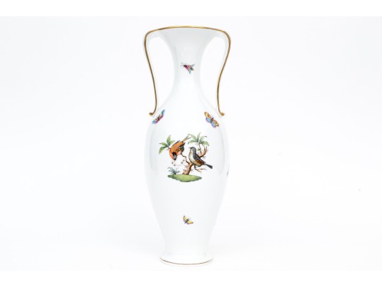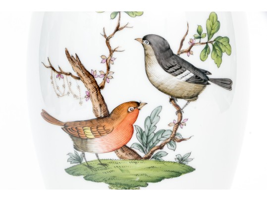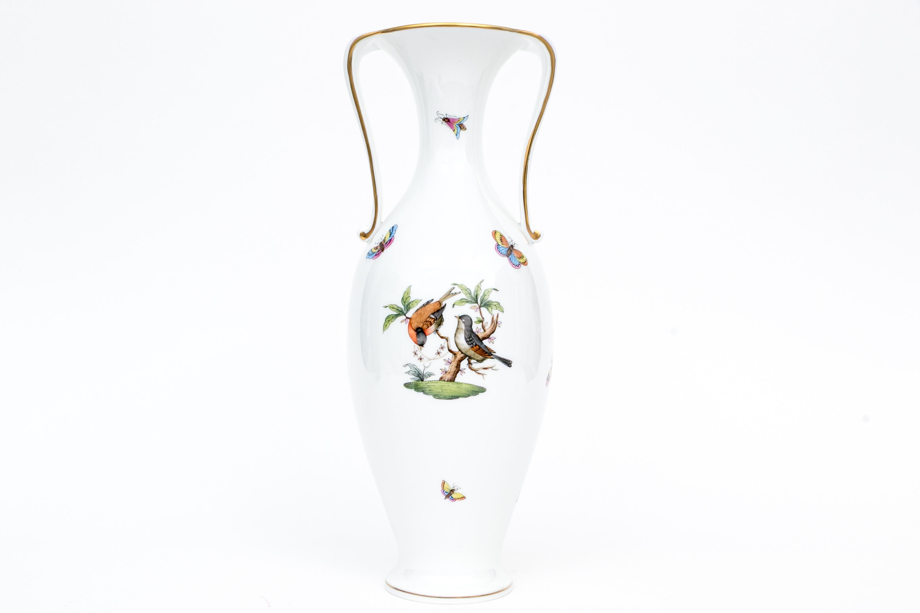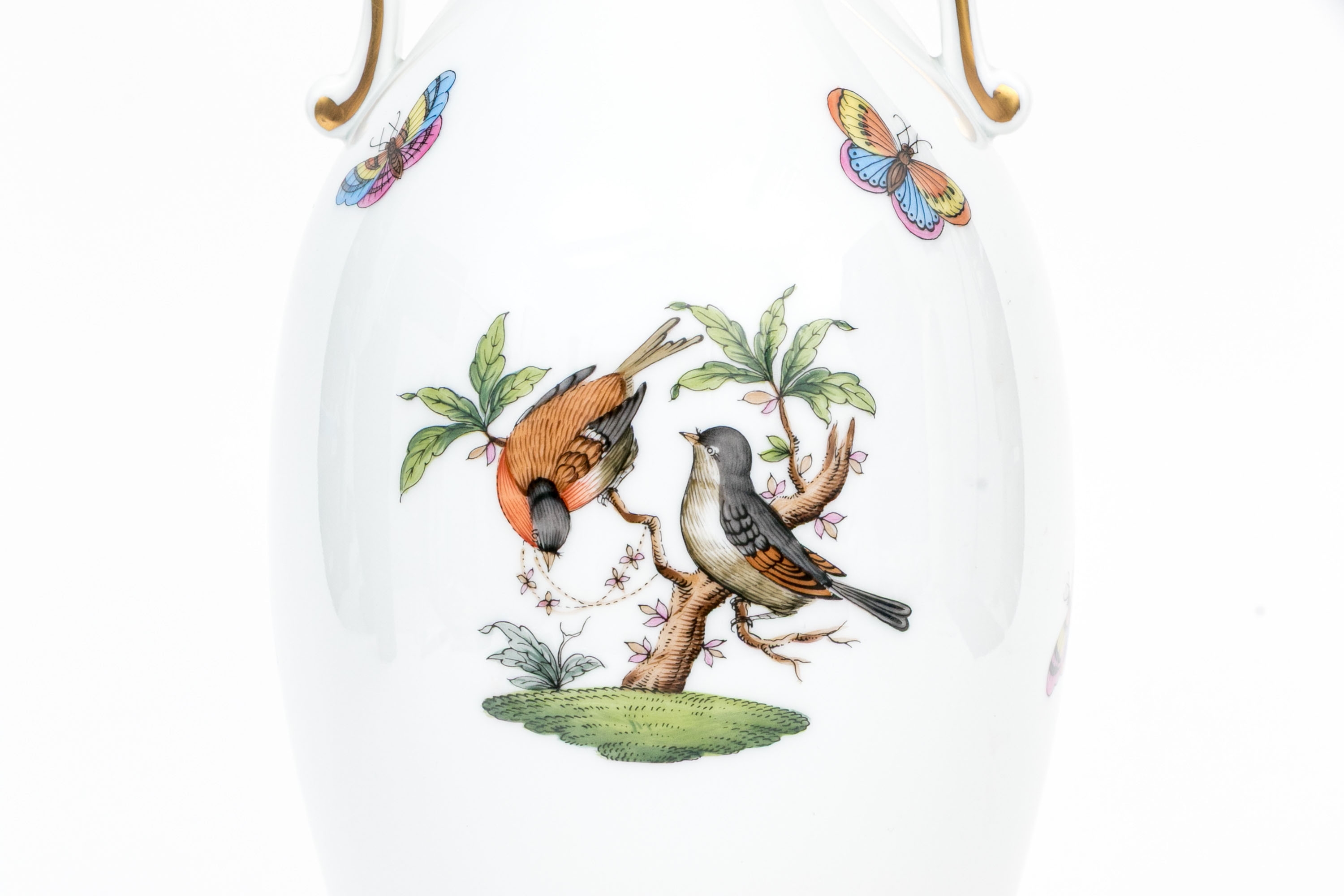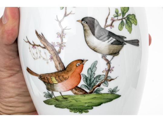 Herend Hungary hand-painted porcelain vase, beautifully executed in the classic Rothschild Bird (RO) pattern.