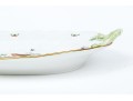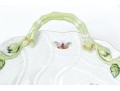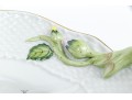 Condition: Excellent condition overall. The dish shows no chips, cracks, or restorations. The gilding remains bright and intact, and the hand-painted decoration is vivid and unmarred. The handles and applied floral elements are complete and undamaged. The glaze retains a beautiful sheen. Underside is clean and clearly marked with the Herend hallmark and pattern code. Light shelf wear to the unglazed base rim, consistent with gentle use and age.
