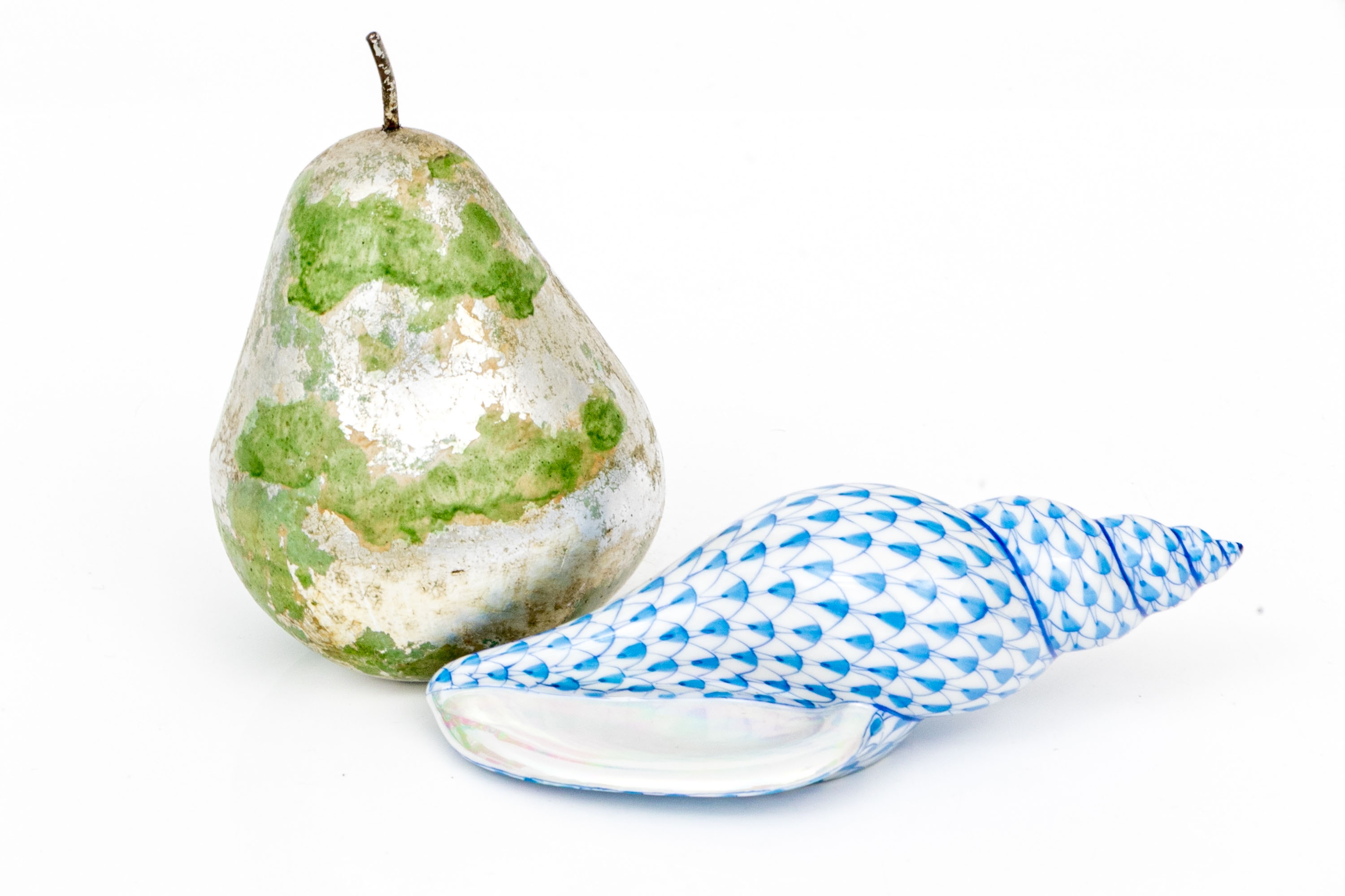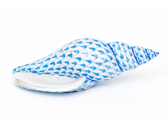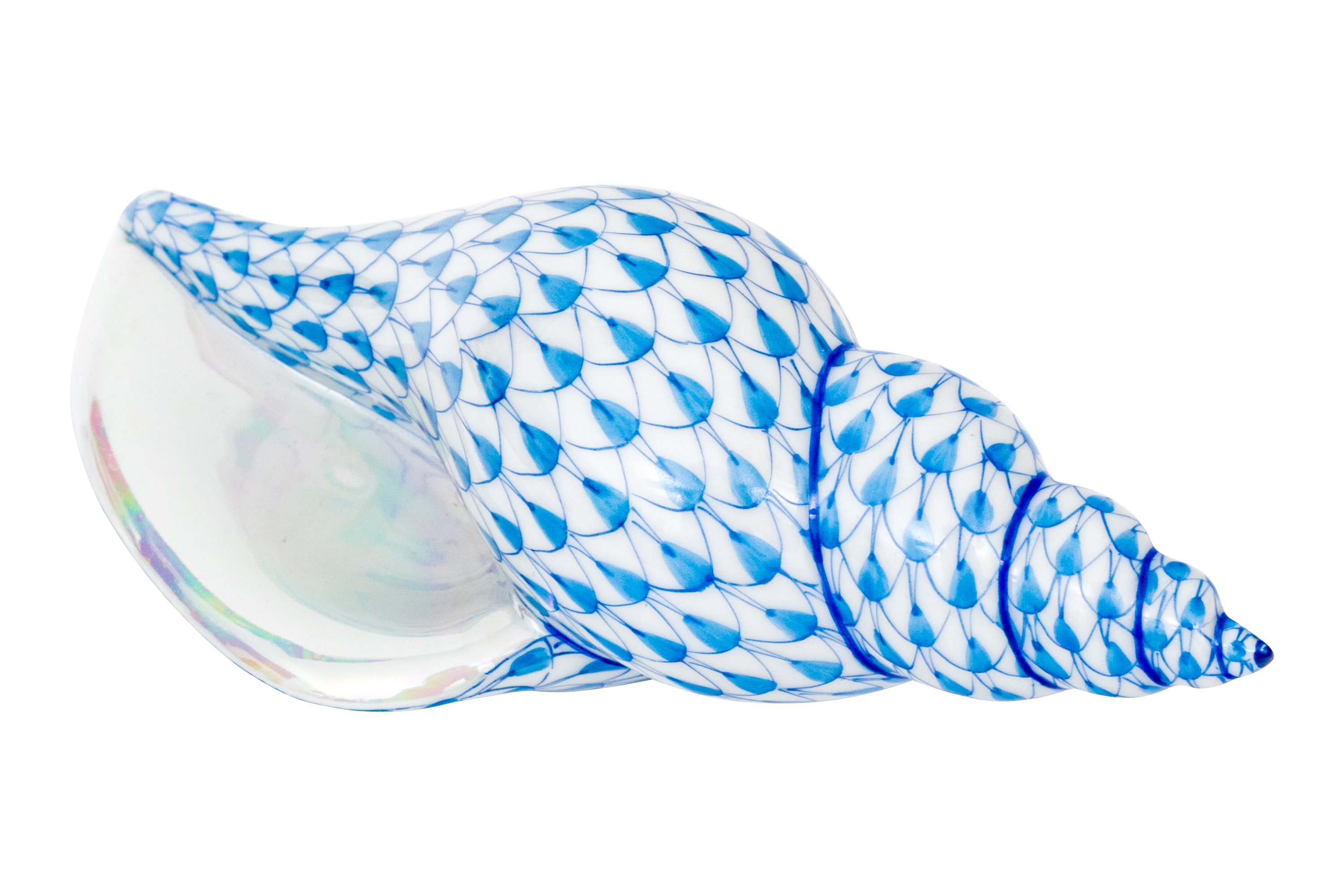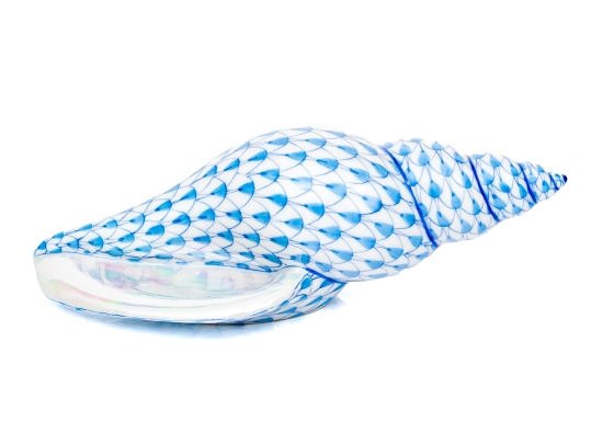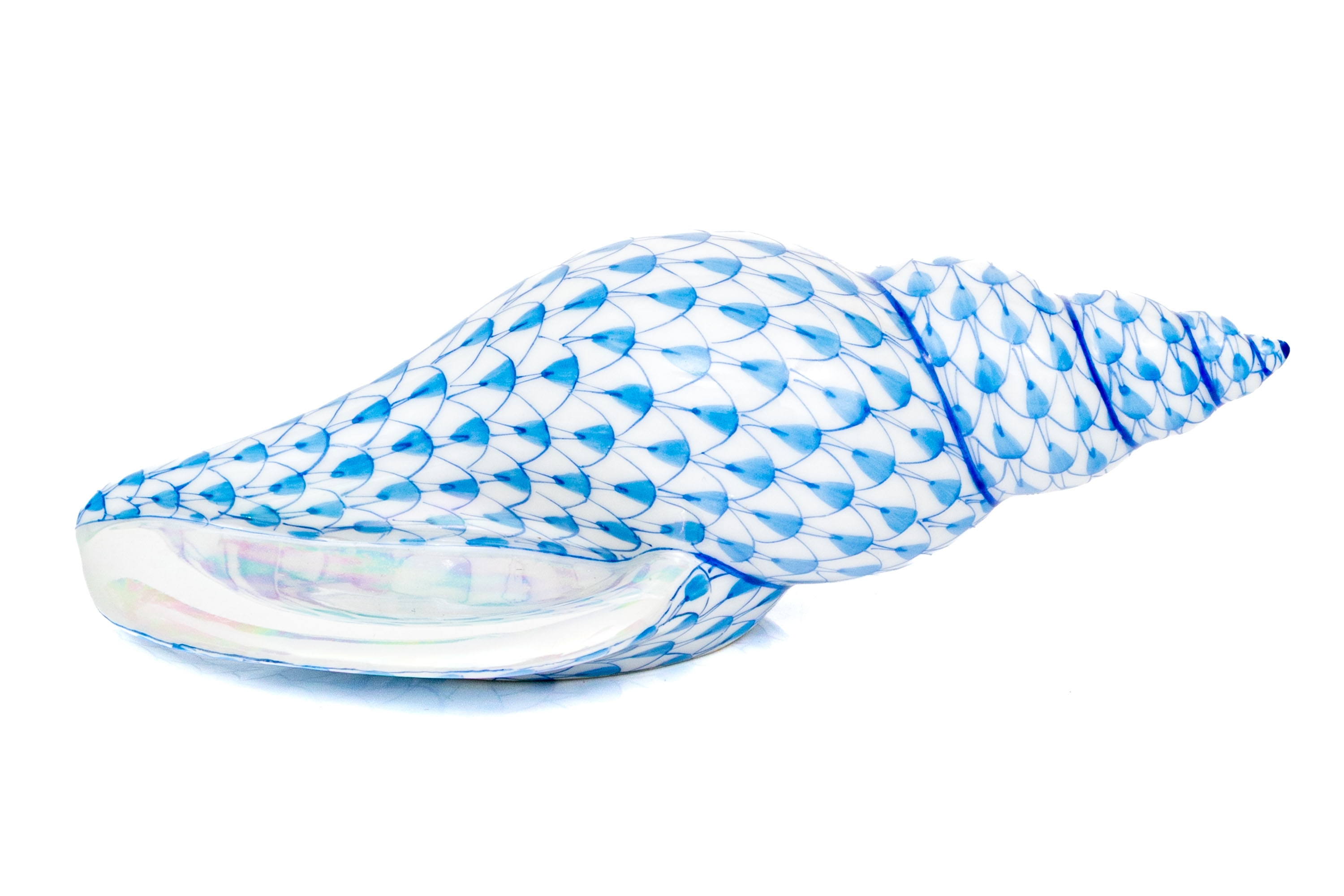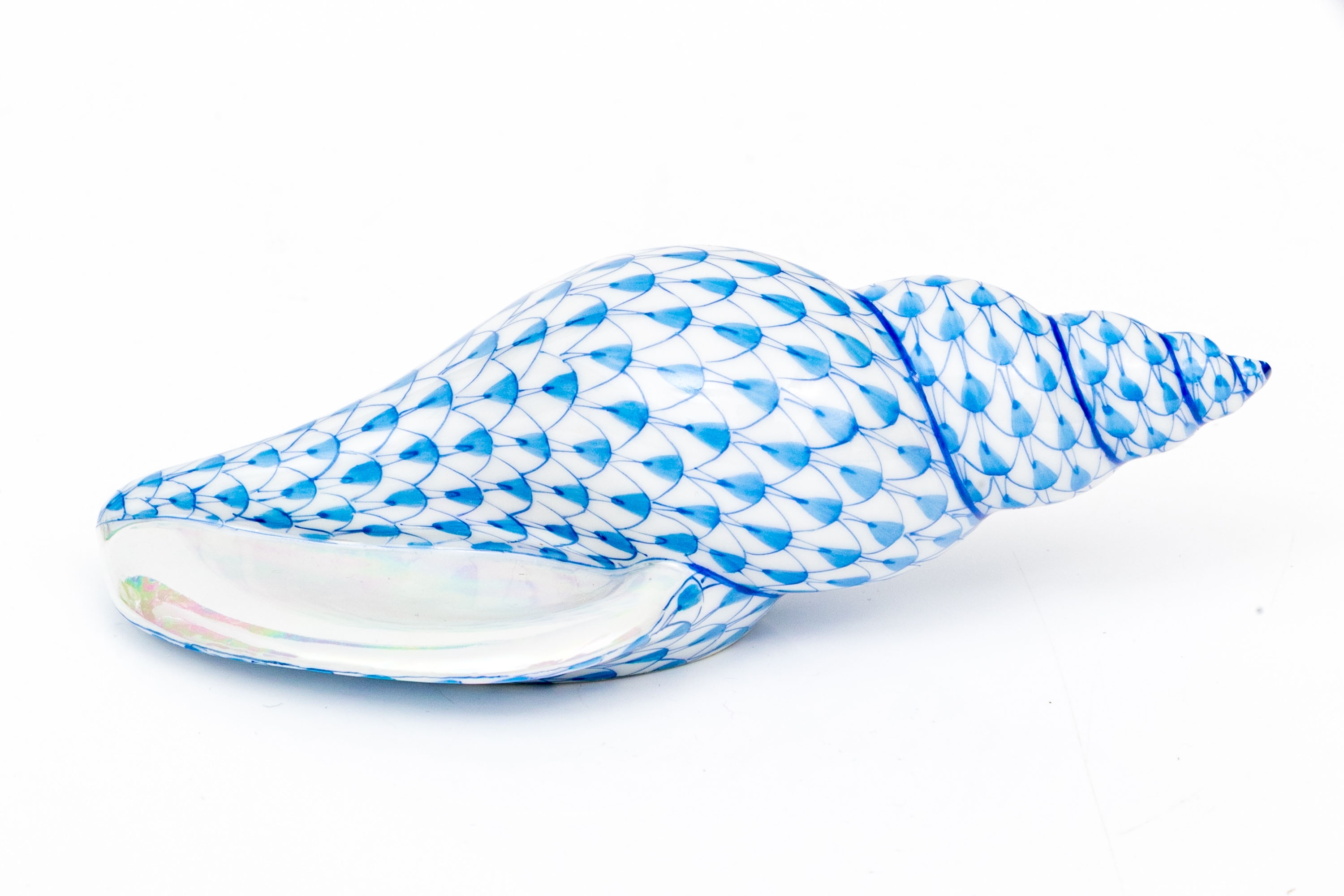 Herend Hungary Hand-Painted Porcelain Conch Shell, Blue Fishnet (VHB), First Edition