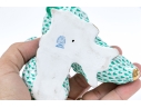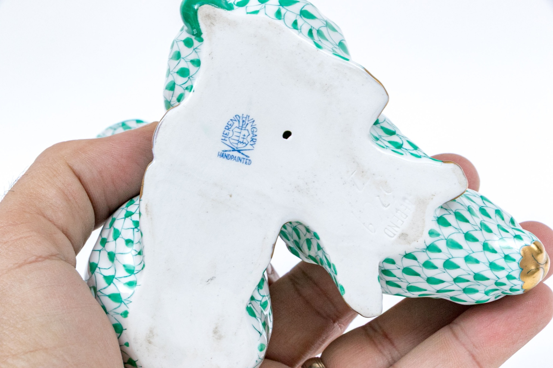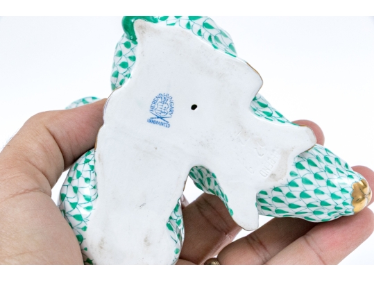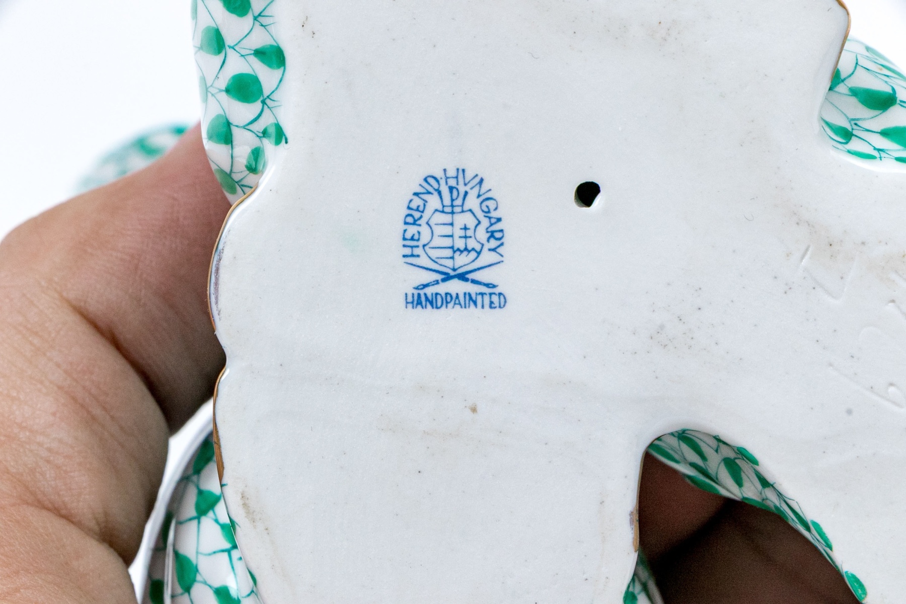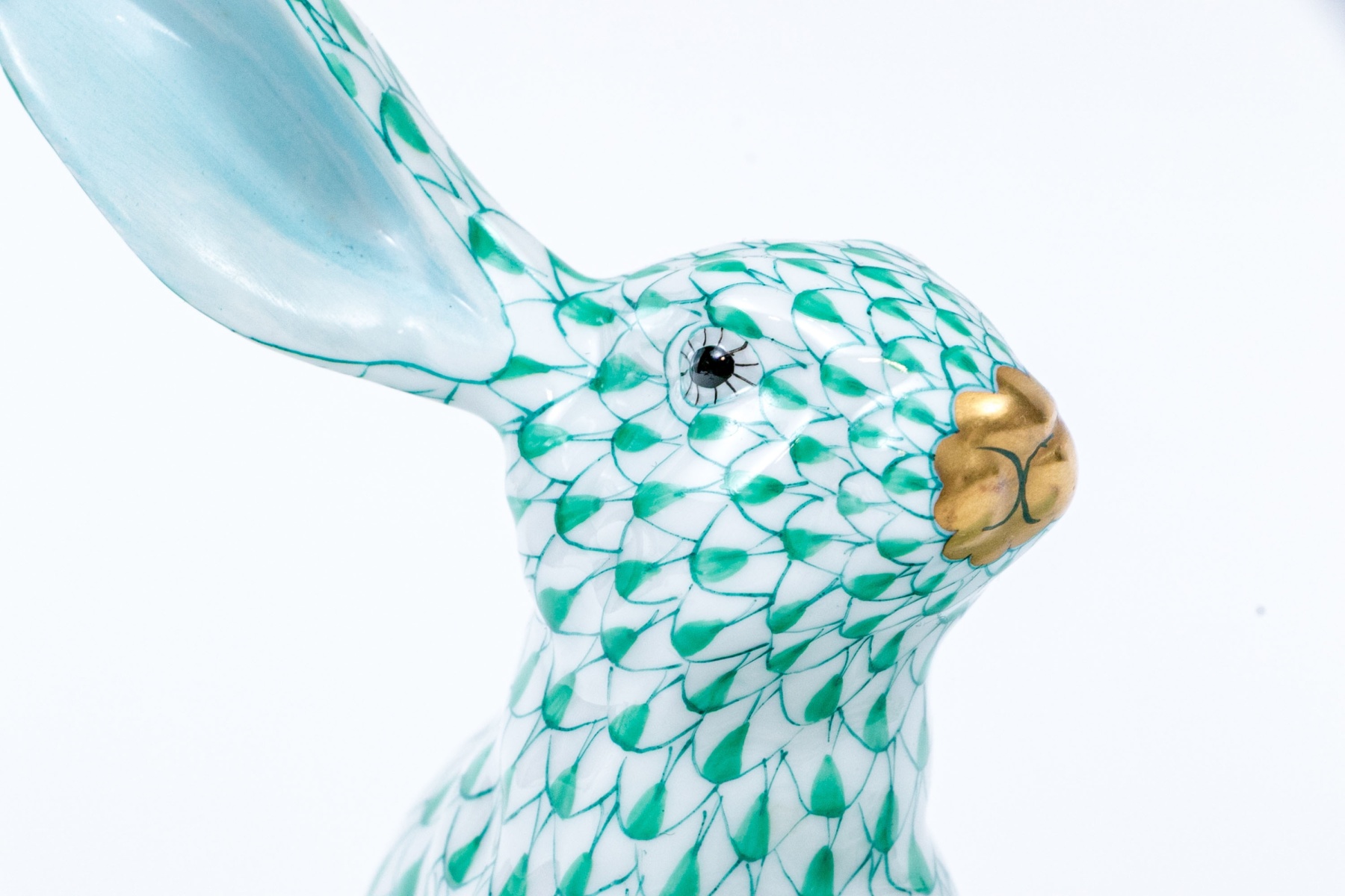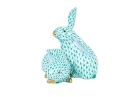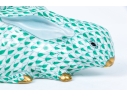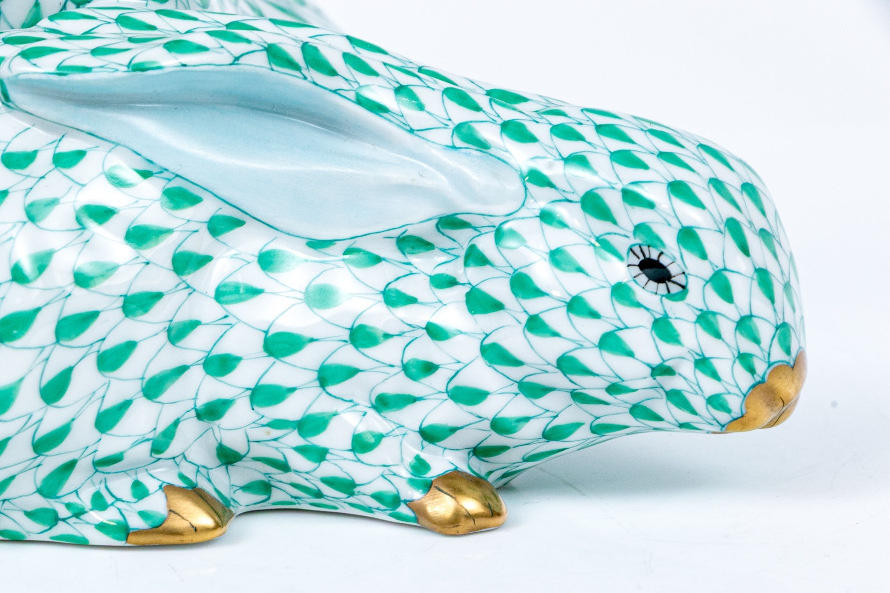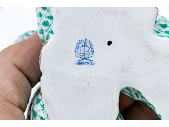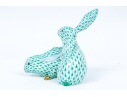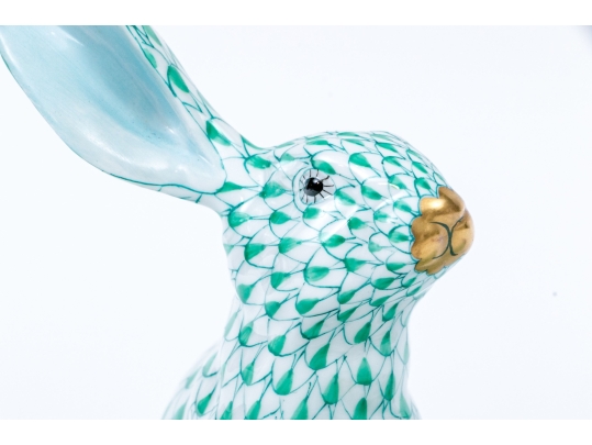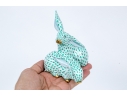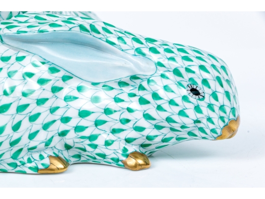 Herend Hungary Hand-Painted Porcelain Rabbit Figural Group, Green Fishnet Pattern
