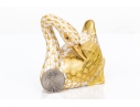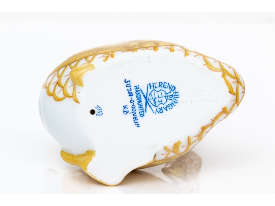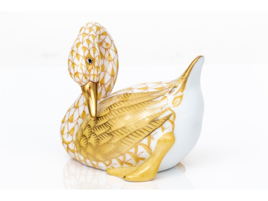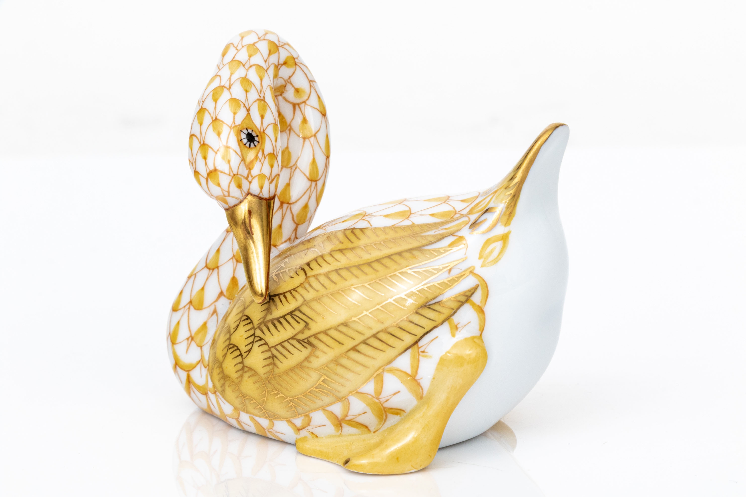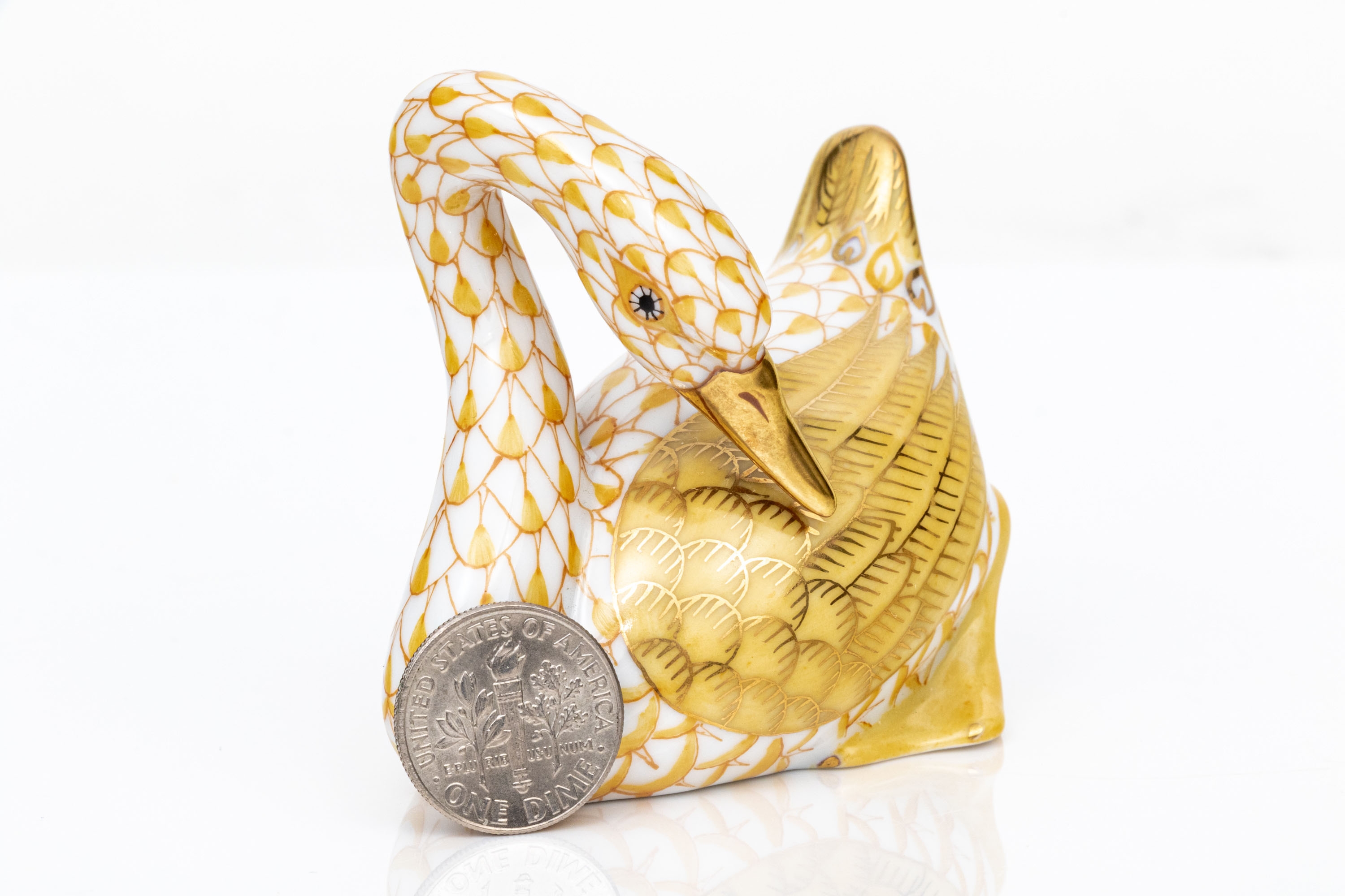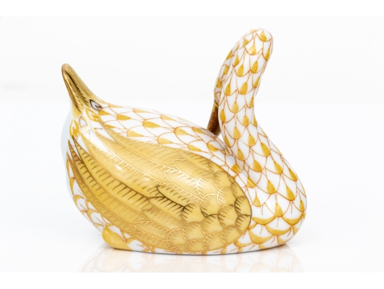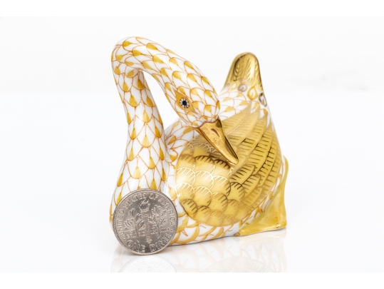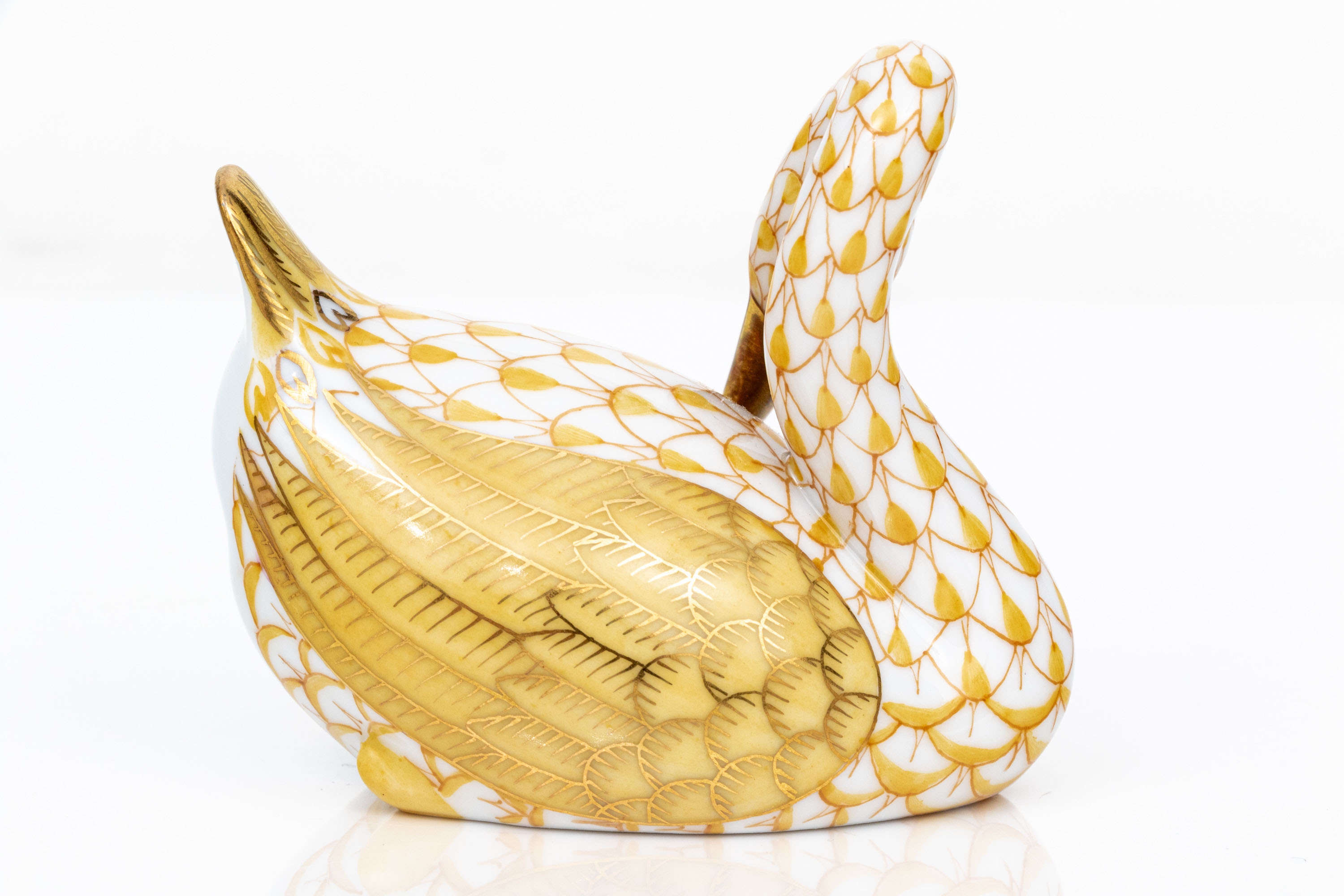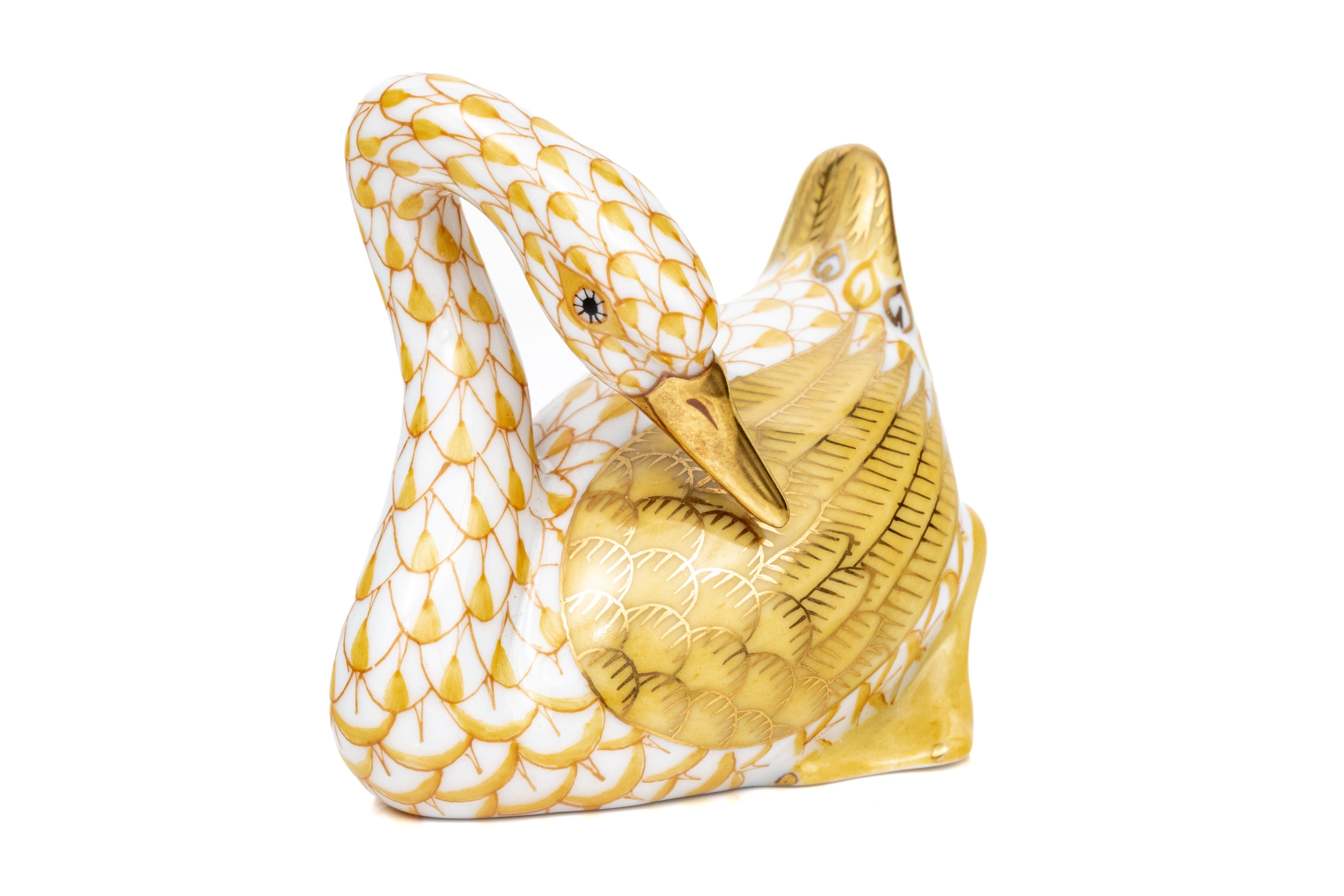 Herend Hungry Recumbant Swan Figure, Butterscotch Fishnet Pattern