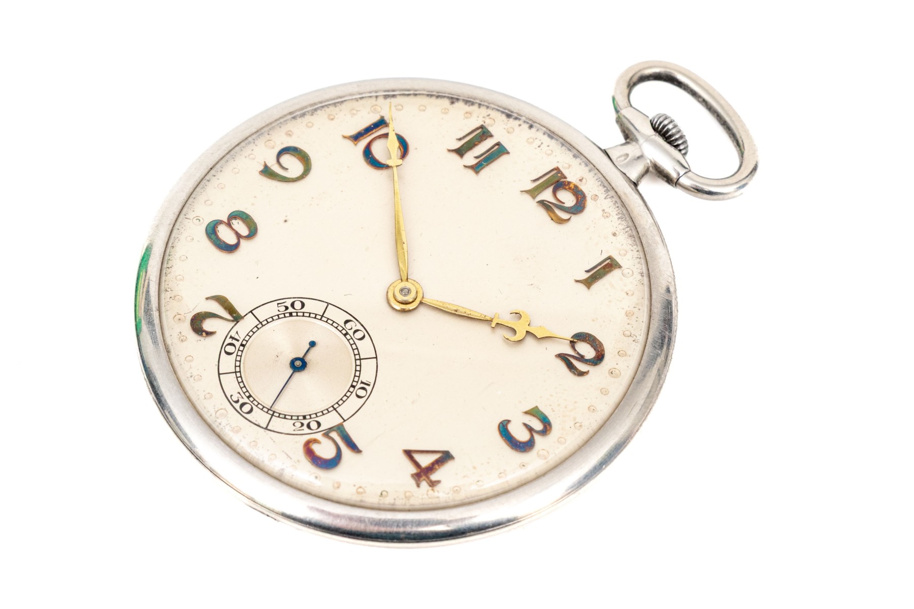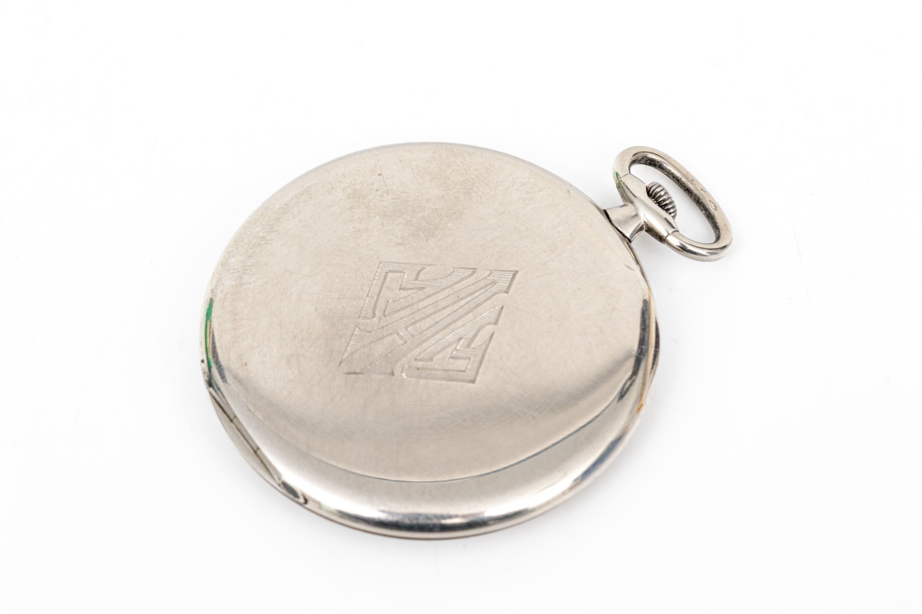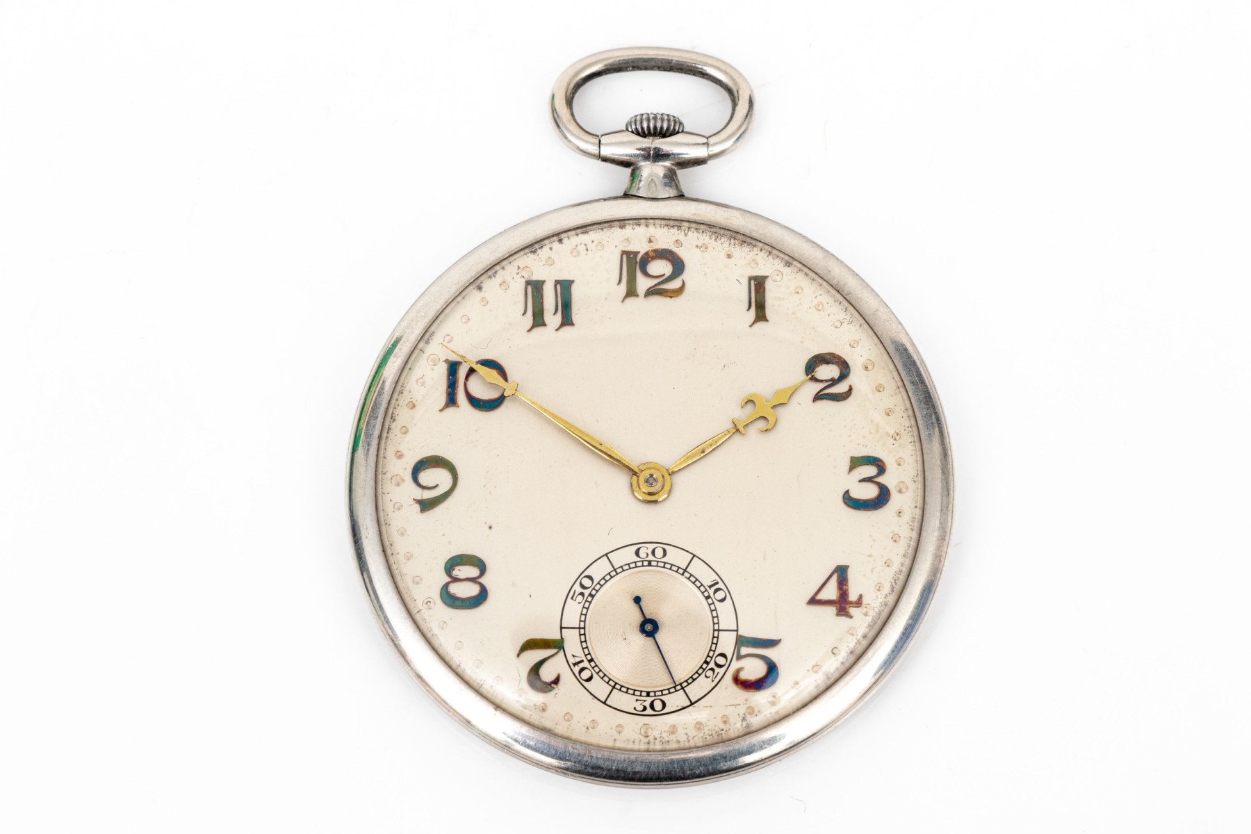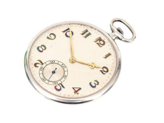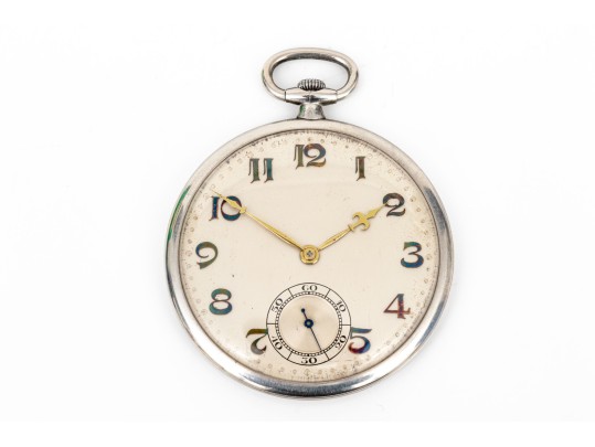 Jules Jurgensen magnificent antique platinum pocketwatch, original box and papers. This amazing pocket watch is an open style, with a silvered dial with arabic numerals, subdial at 6pm; monogrammed on the reverse, and made with a hand wound mechanical movement. This wonderful piece is accompanied by the original box and papers, made in 1925