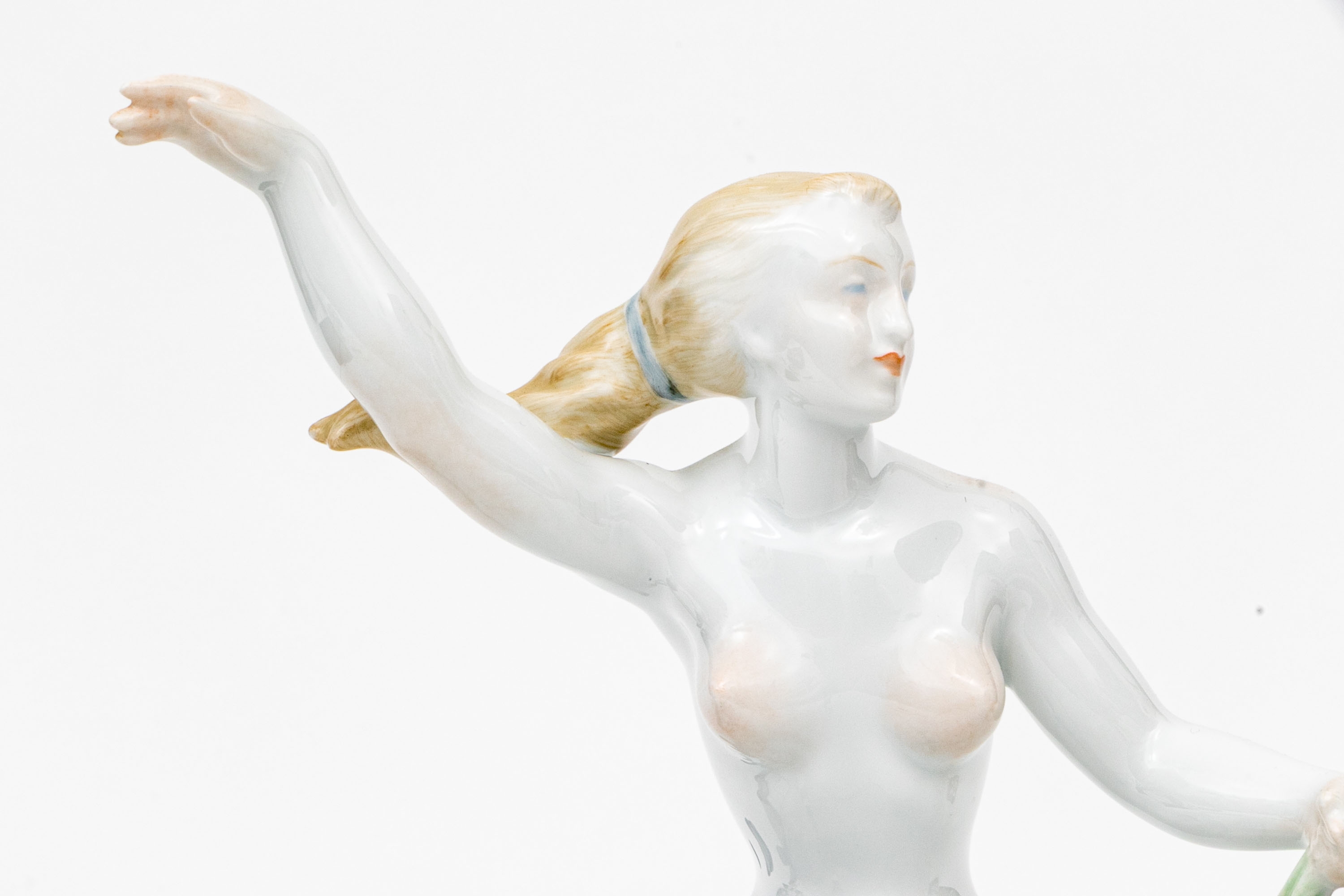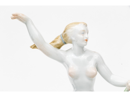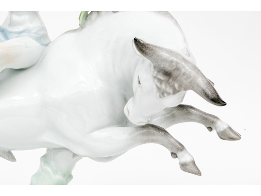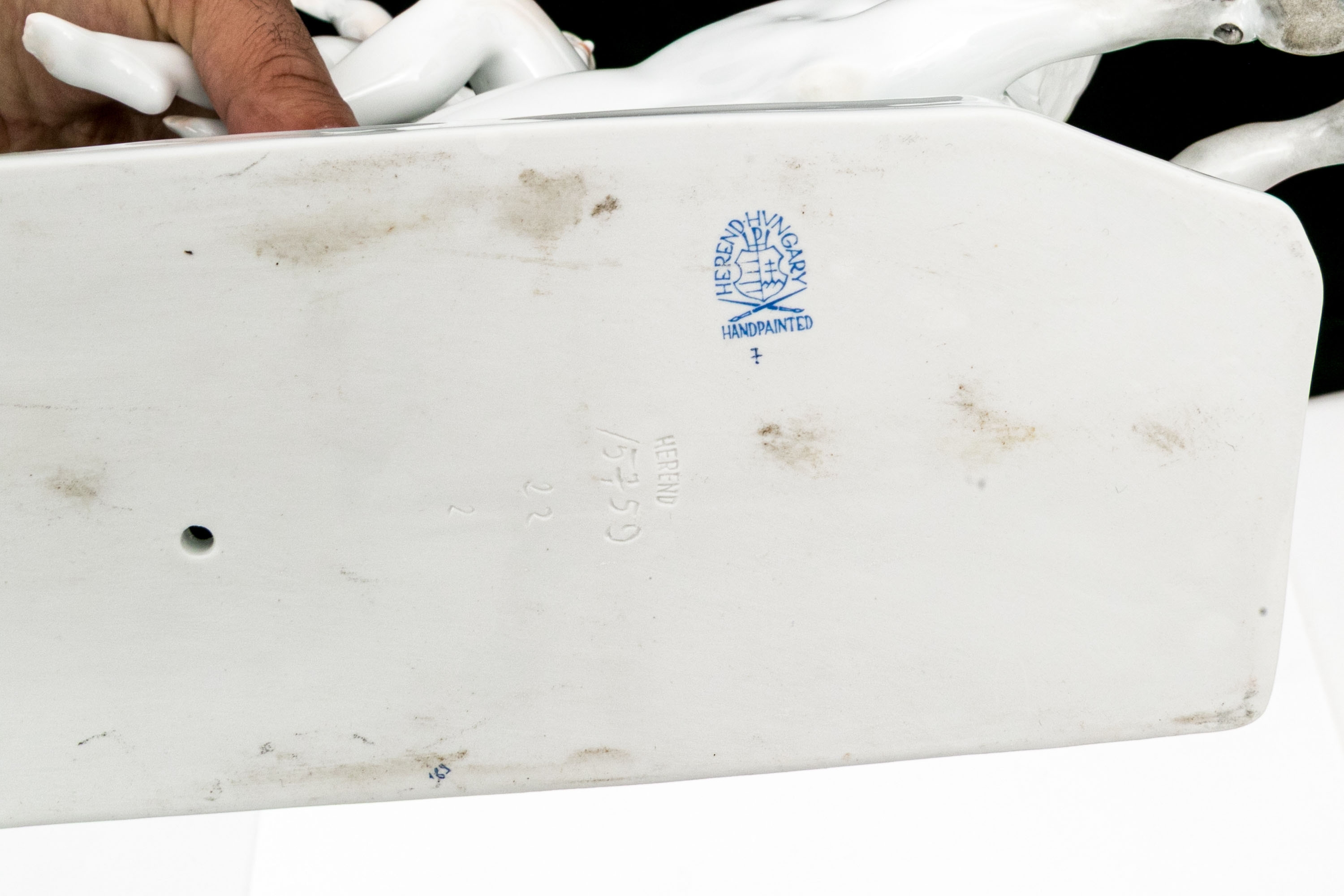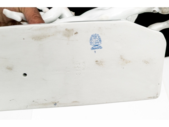 Collector's Note: This iconic Herend model, first introduced in the mid-20th century, is among the manufactory’s most impressive sculptural works. It demonstrates Herend’s mastery of dynamic composition and luminous glazing. The iridescent finish and fluid anatomical modeling reflect the influence of both Art Nouveau and Classical Revival aesthetics.