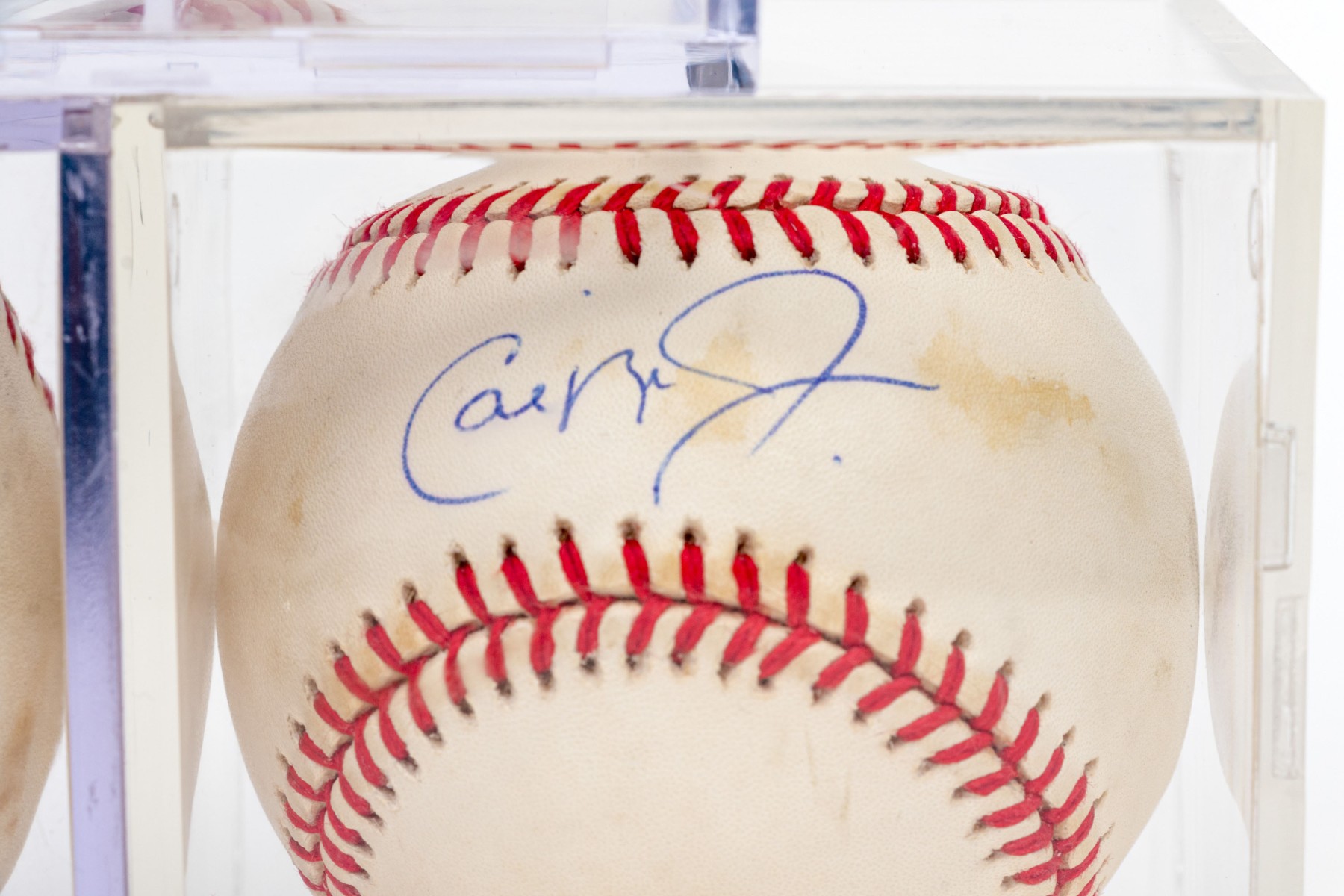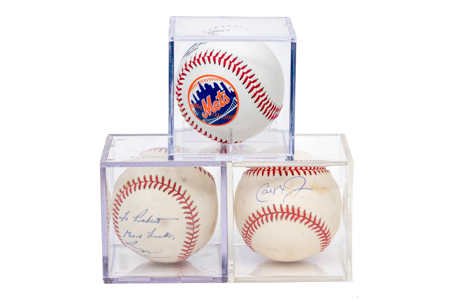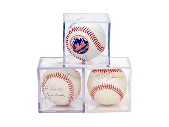 Collection Of Three Autographed MLB Baseballs In Lucite Cases