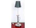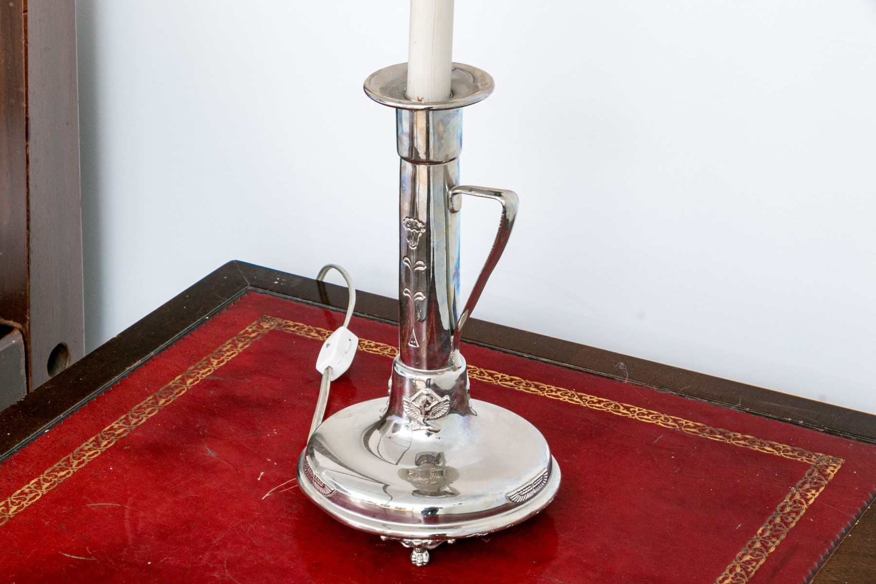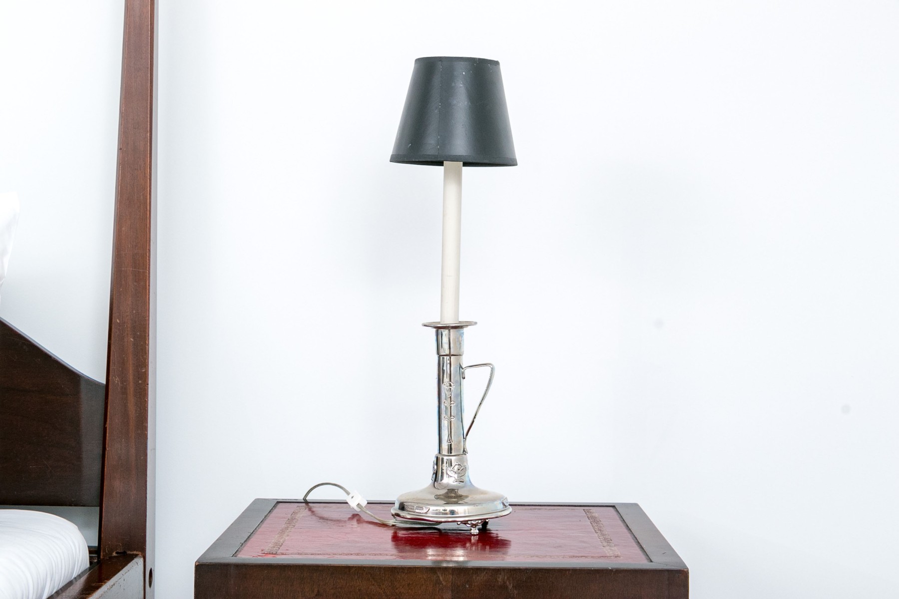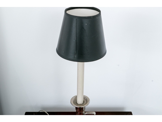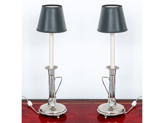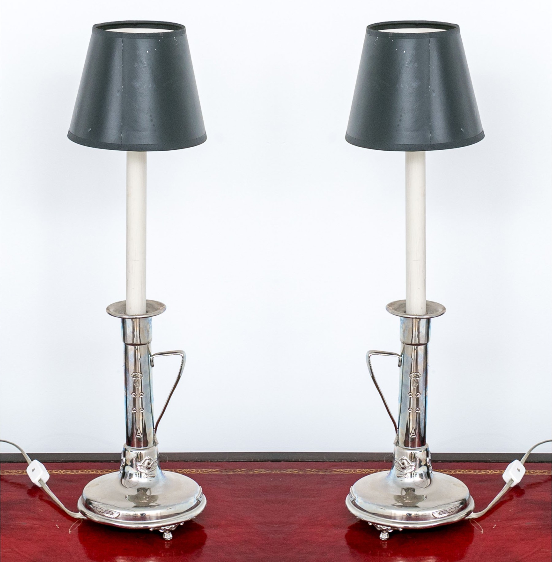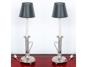 These candlesticks that were mounted as electrified lamps have faux candlesticks and a small shade. Perfect for a small space and excellent as night table lamps!