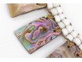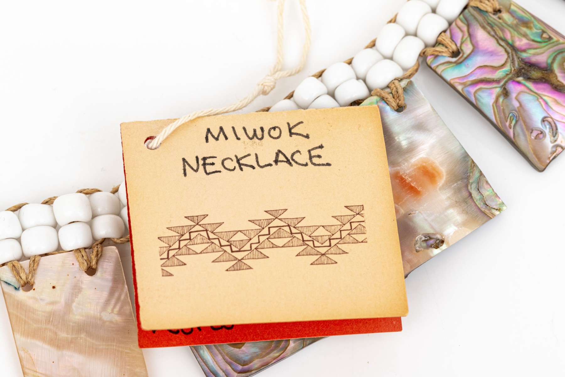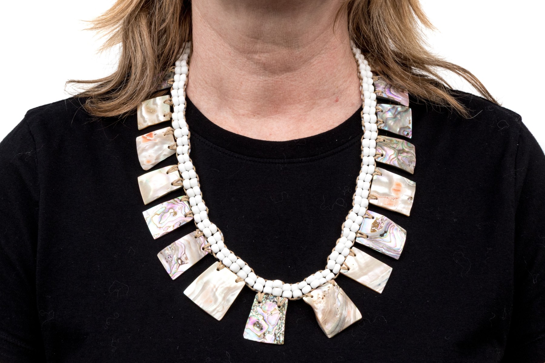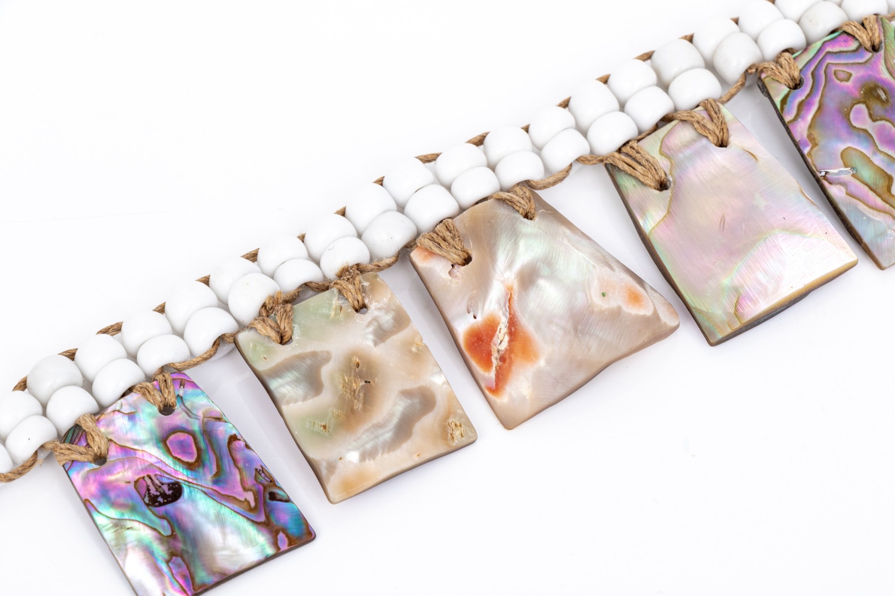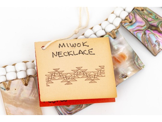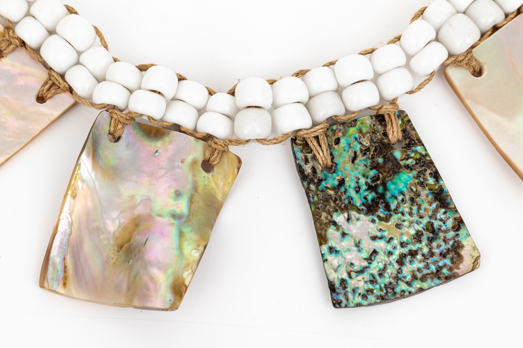 Miwok beautiful abalone tile and white glass bead necklace, on linen twine, adjustable length