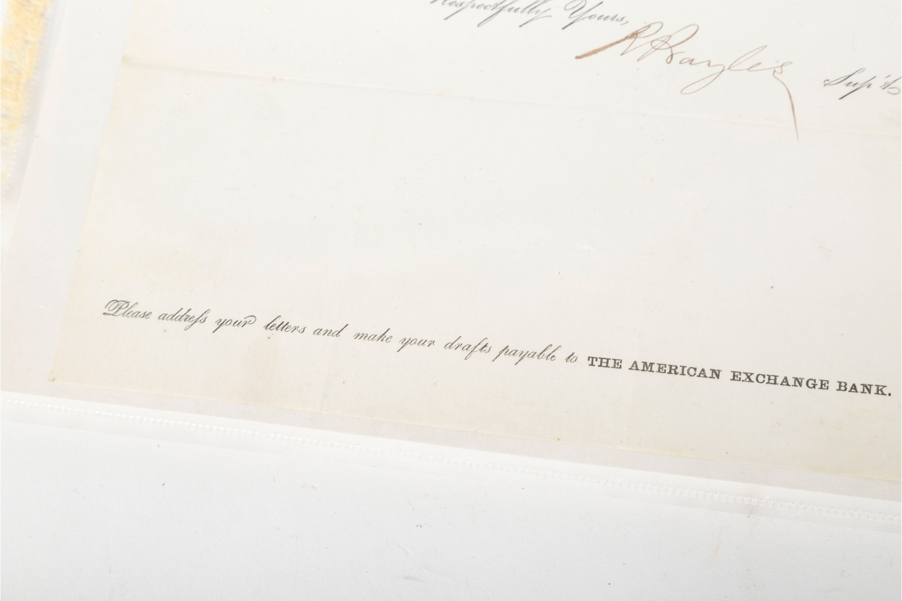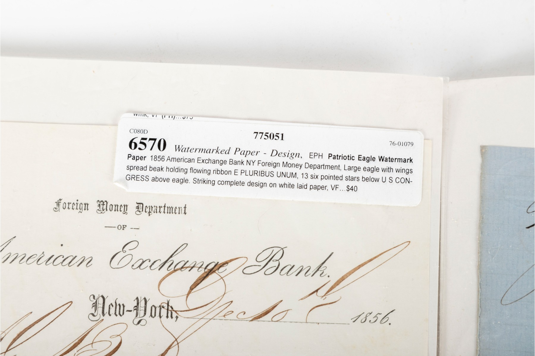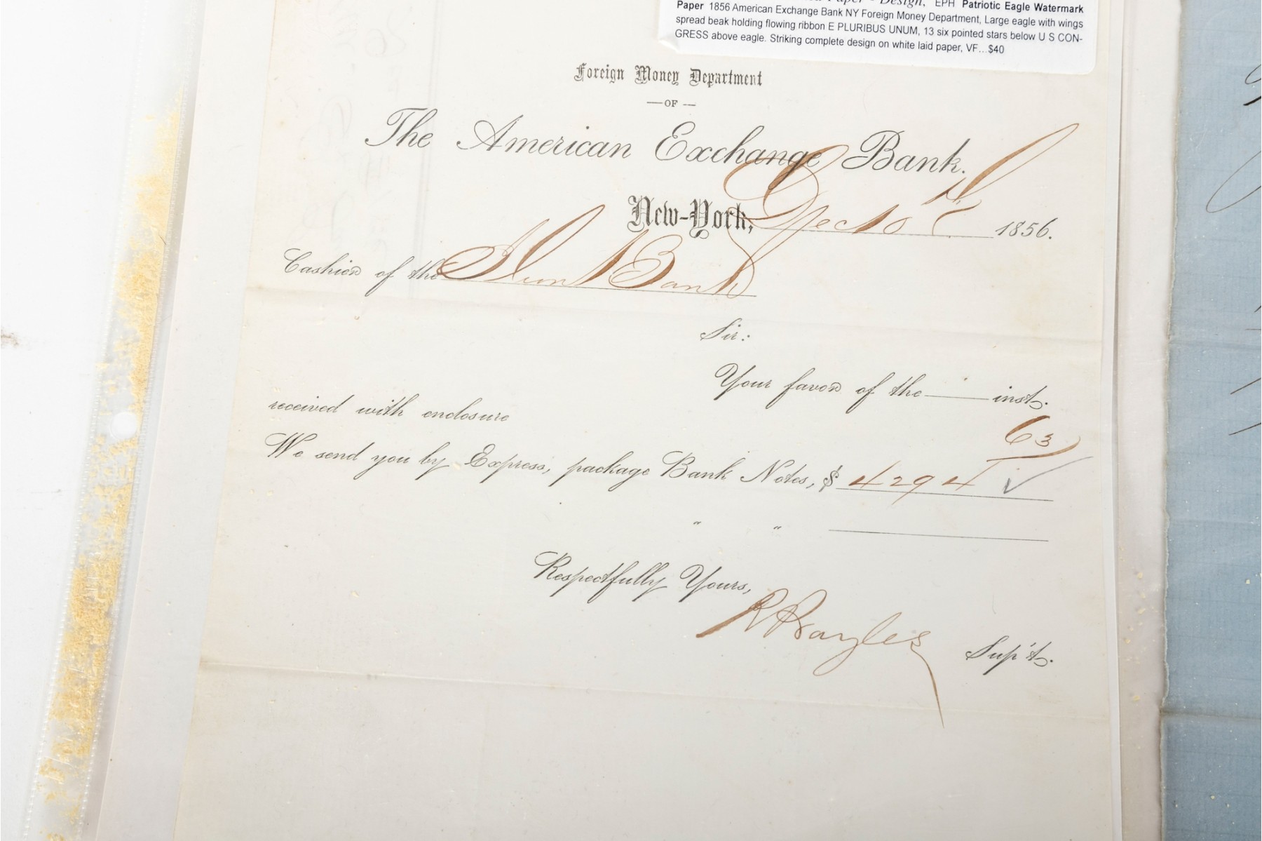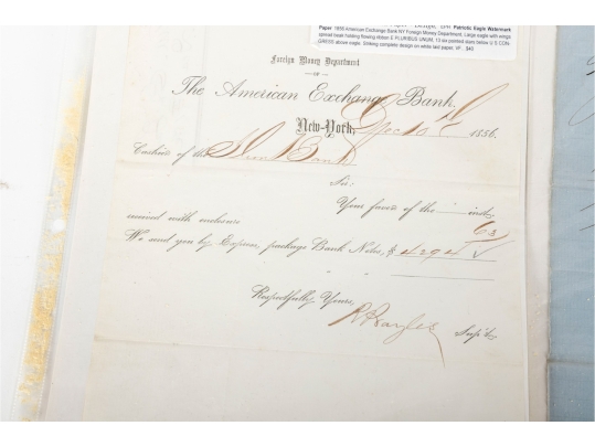 - 1856 American Exchange Bank / Foreign Money Department Document