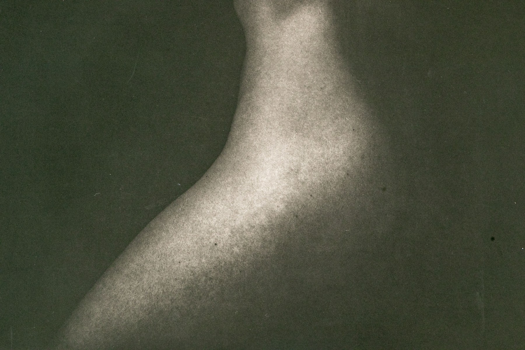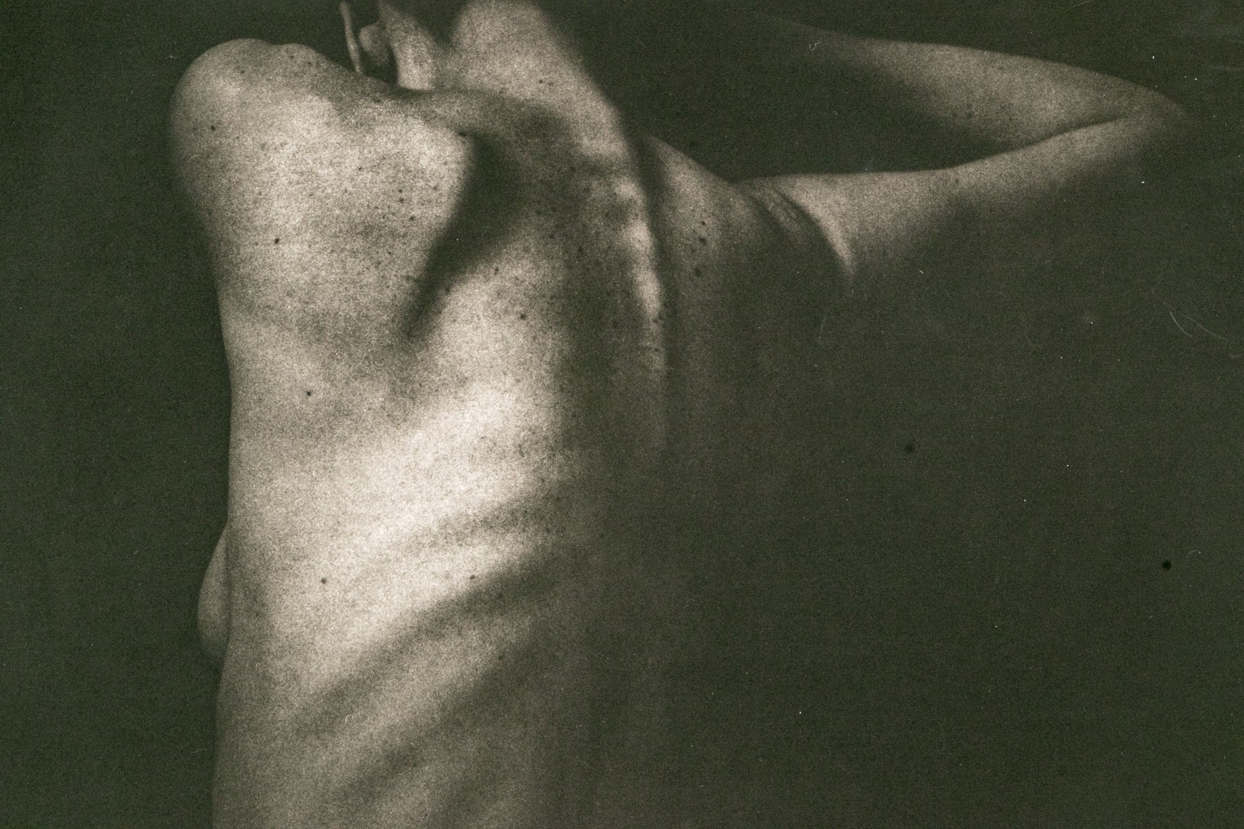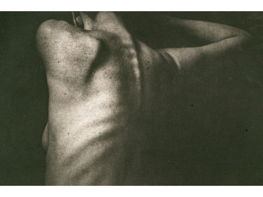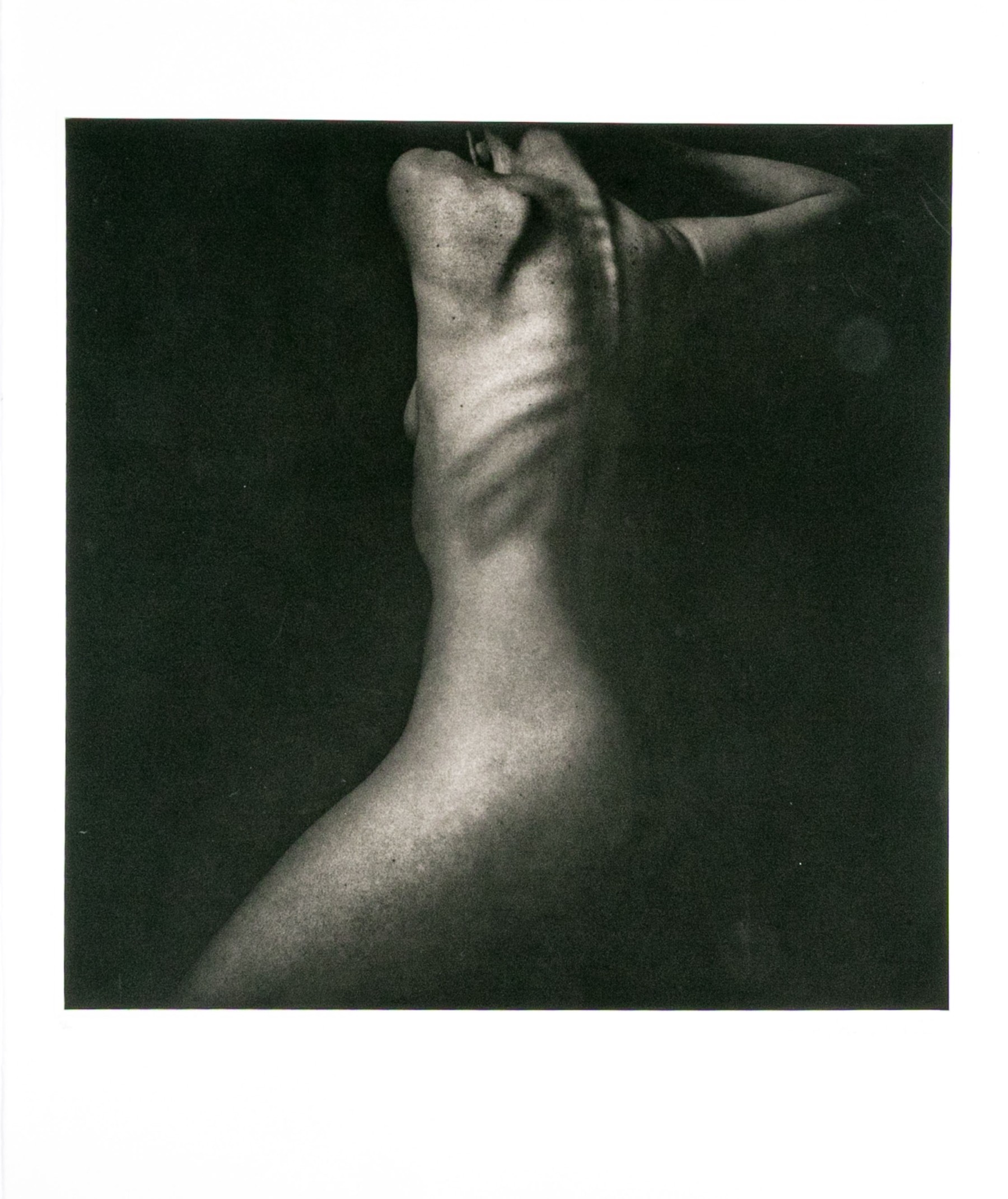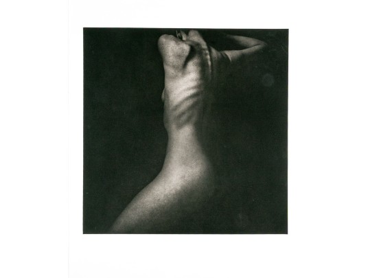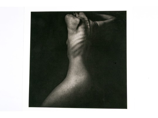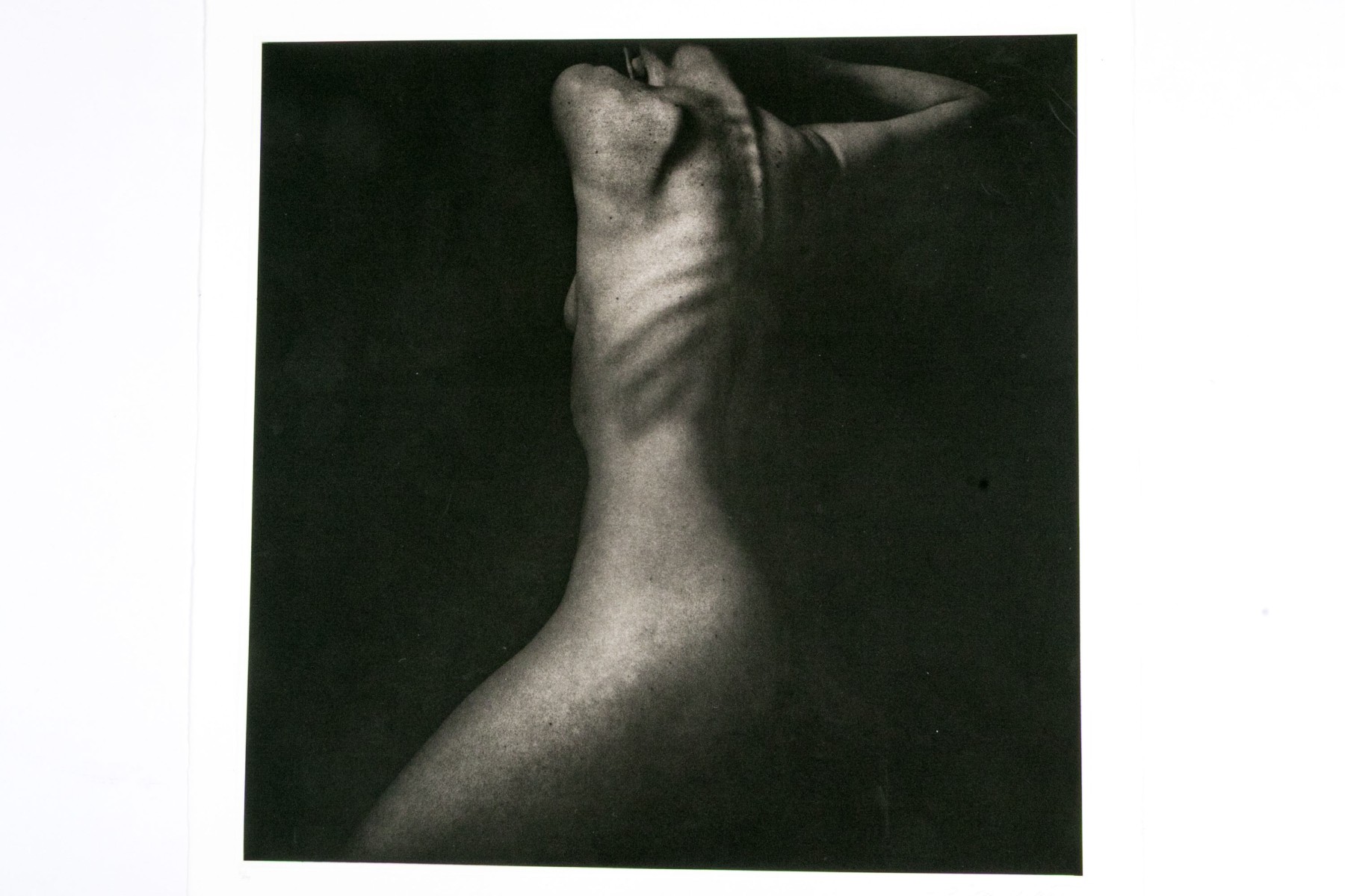 Nana Watanabe (Japanese, 20th C.) "Back Of A Woman #2, 1996" photogravure depicting a female nude facing away from the viewer posed twisting with arms raised against a dark background. Pencil signed lower right, numbered 11/24 lower left. Unframed.