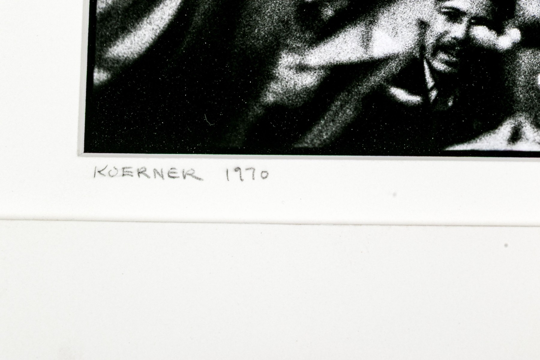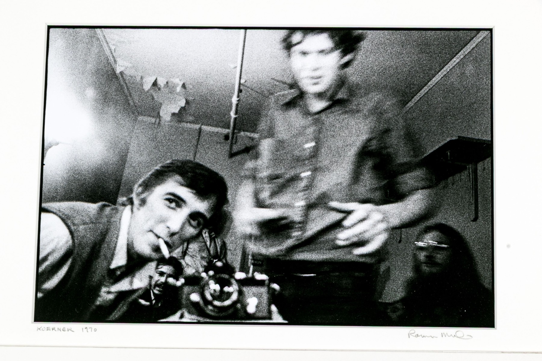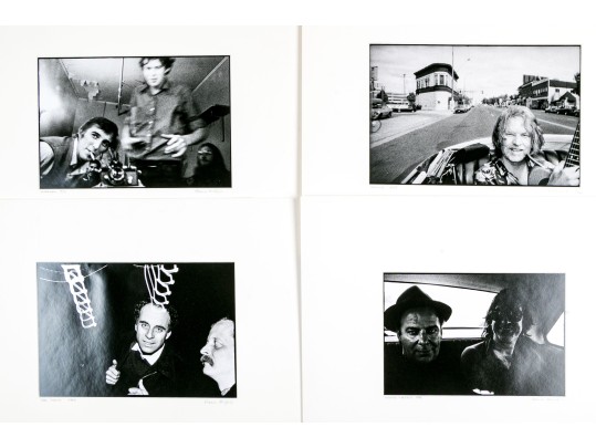 A wonderful group of four Gelatin silver prints by Ramon J. Muxter (American, 1945-2007) depicting men in social and urban environments. All pencil signed and titled on the mats. Unframed.