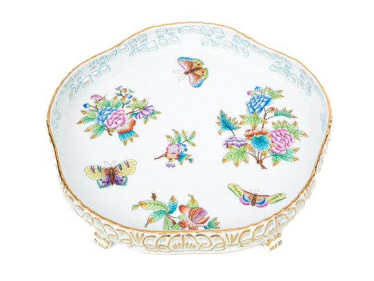 Rare 10 1/2" Herend Hand-Painted Porcelain Reticulated Footed Tray, Queen Victoria (VBO) Pattern #462273. Black Rock Galleries provides high end estate liquidation services through online estate auctions and a 50,000 sq ft designer showroom. estate liquidator, estate sale, online auction, antiques, fine art, liquidation, clean outs, auction, consignment, interior design, fine jewelry, collectibles, appraisals, estate appraisals, estate services, decor, furniture, furniture consignment, antique center, consignment shop. We offer appraisal services and specialize in fine art, jewelry, antiques and decorative arts. Sell with us. Black Rock Galleries is the tri-state's largest estate liquidator serving New England and the greater New York City area. We are the trusted source for expert appraisals, auction services, estate sales, and consignments. Black Rock Galleries is the east coast's largest and most trusted estate liquidator, with locations in Connecticut, greater Boston, MA and Raleigh, NC, Fairfield, Southport, Apex, TX. We are the best source for expert appraisals, auction services, estate sales and consignments. We have served thousands of families and estates with compassion, professionalism and expertise. BRG works with attorneys, executors, realtors and families to bring the greatest return on personal and estate property in the current market. Our unique combination of services make us the easy choice to get the job done in a timely and stress-free manner. We are with you from the initial consultation to the final clean out. Our house-built online auction software platform offers clients a dynamic approach to liquidating their personal property. This venue is most successful in bringing the best return with the least amount of disruption for our clients. See our services page for a complete description of this offering. Rare 10 1/2" Herend Hand-Painted Porcelain Reticulated Footed Tray, Queen Victoria (VBO) Pattern #462273
