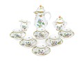 Condition: Excellent condition (showroom) throughout. The porcelain is bright and clean, with no chips, cracks, or repairs. The paintwork is vibrant, and the gilding retains its original luster, showing only minor age-appropriate wear to some edges. This set was displayed rather than used.