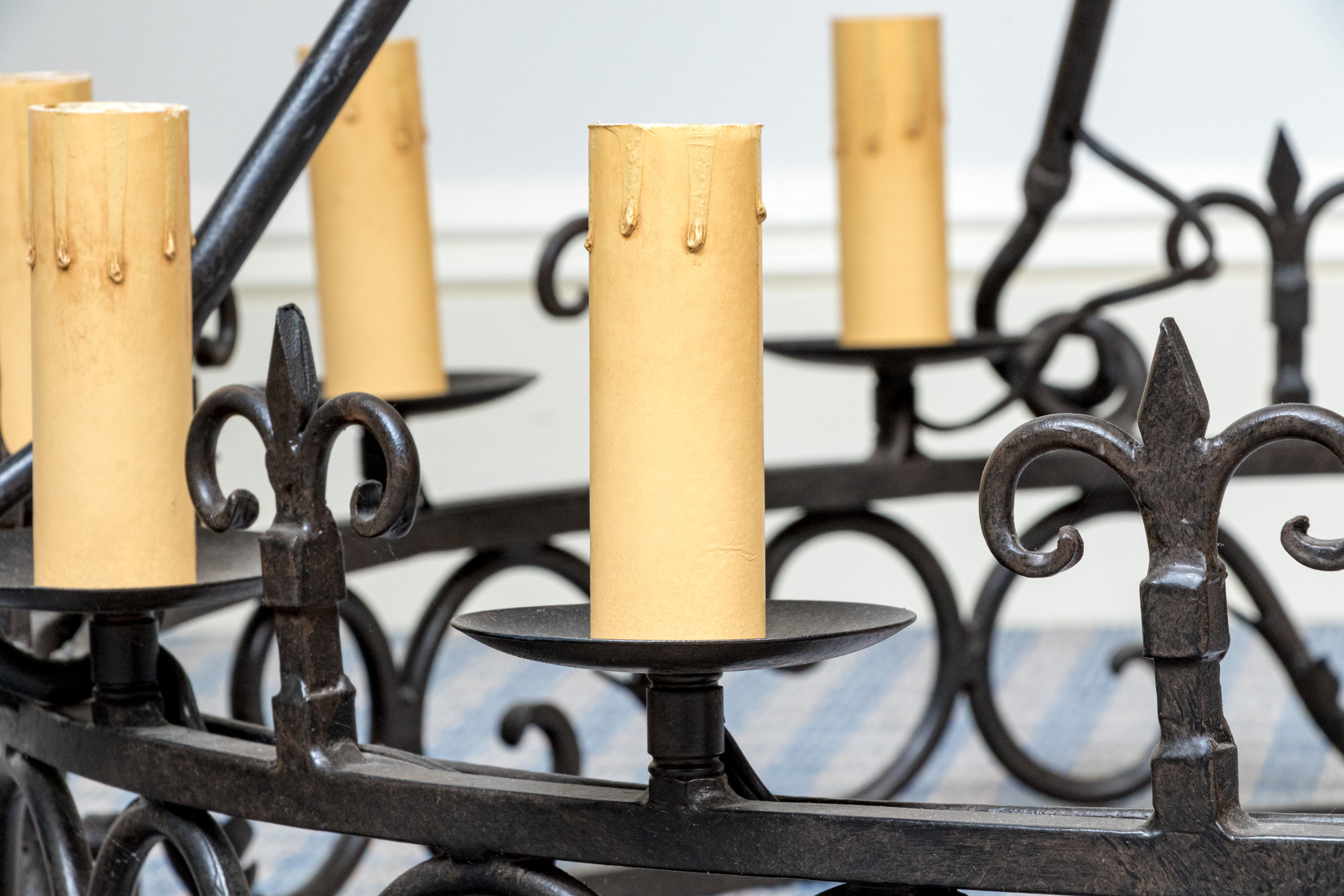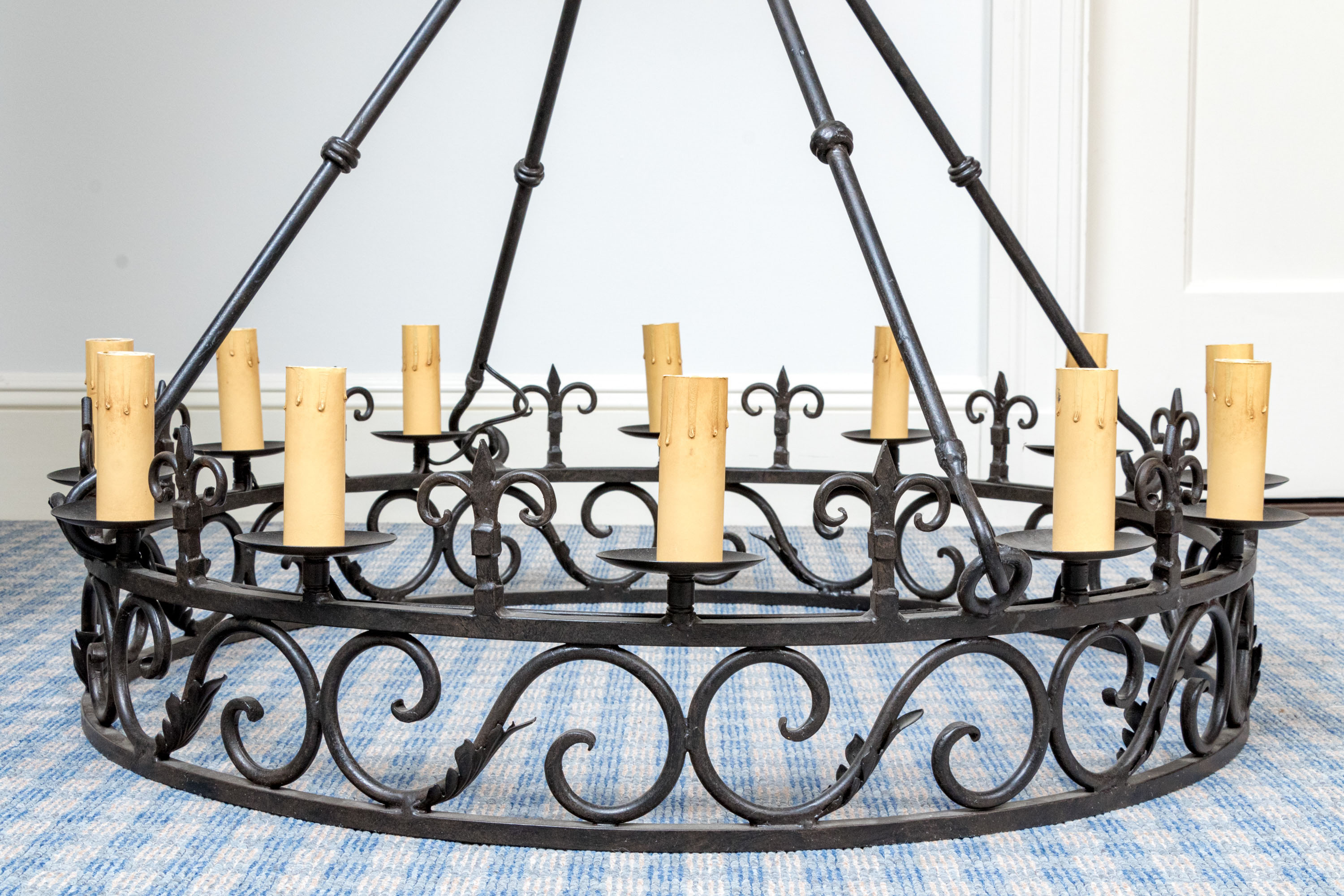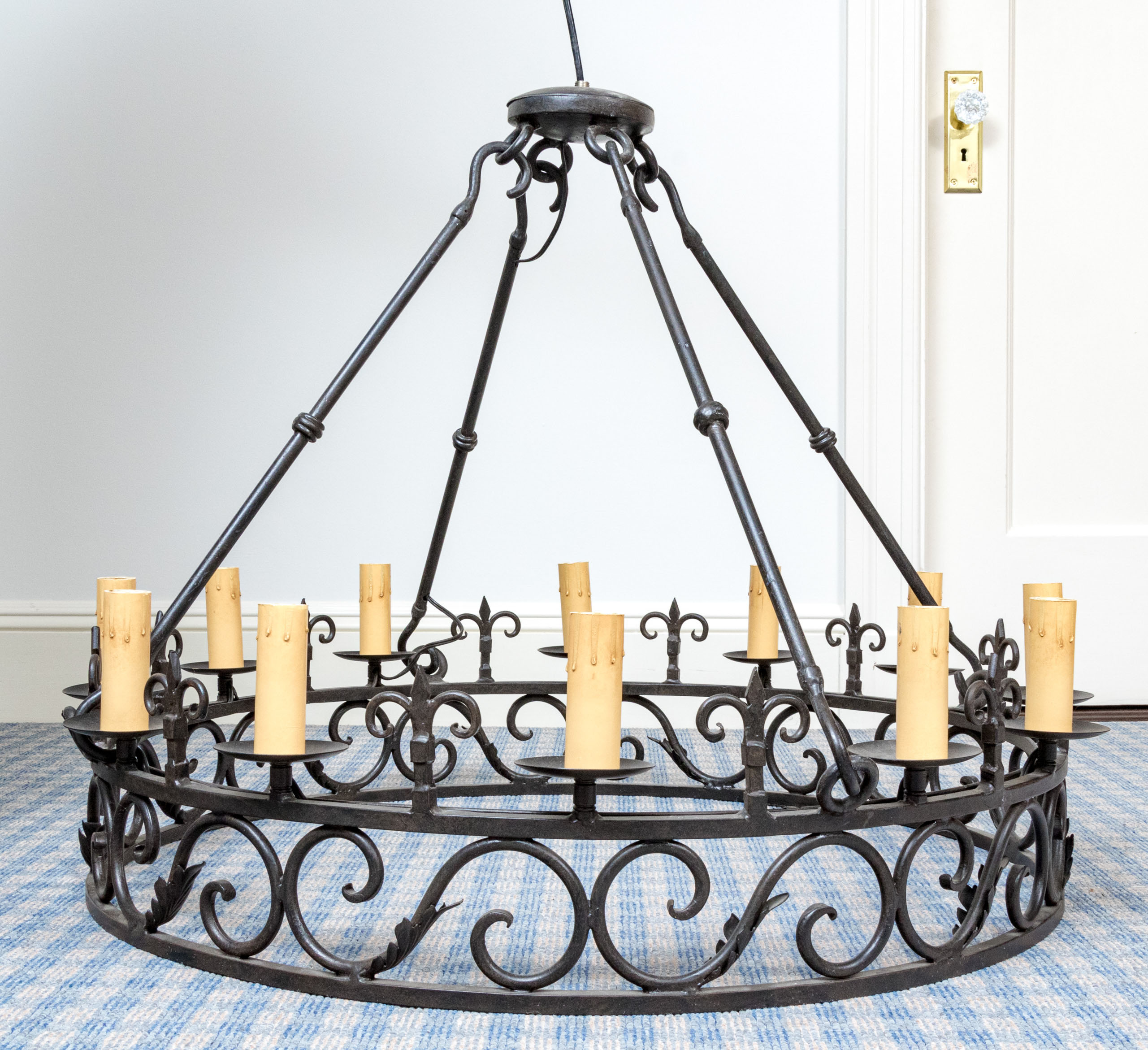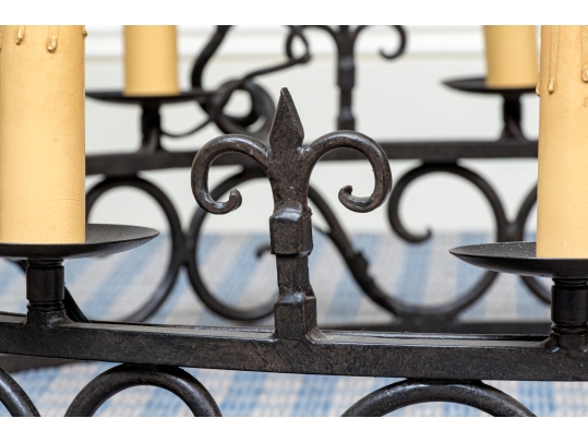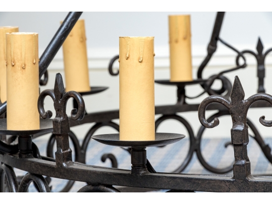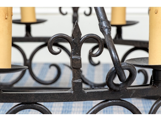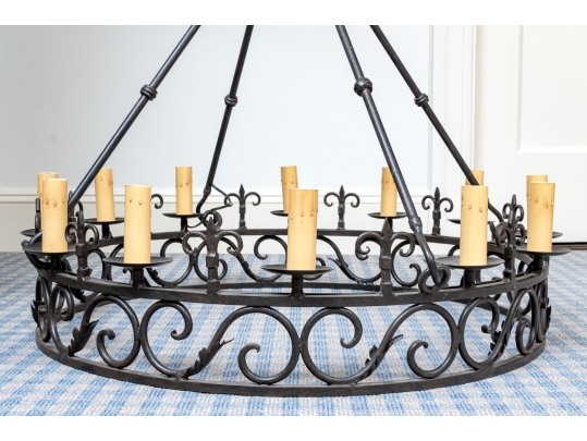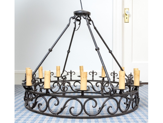 A fabulous Baroque style wrought iron light fixture with 12 faux candlestick standards. An absolutely fabulous piece! Retails for $2250.