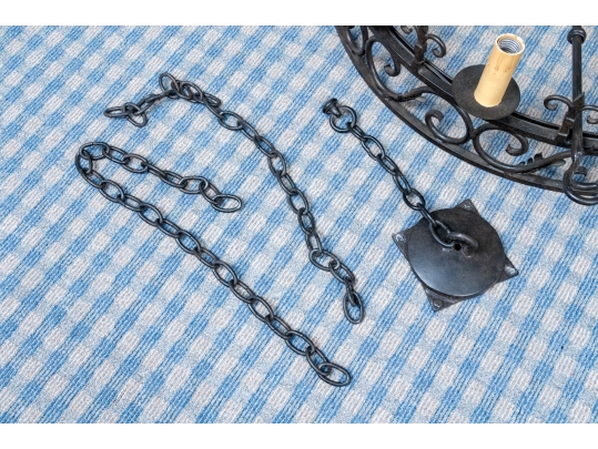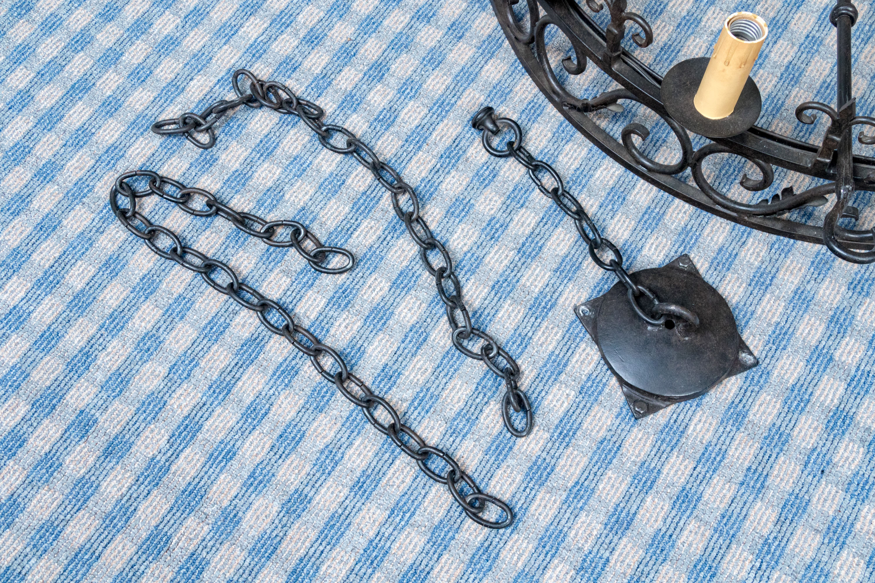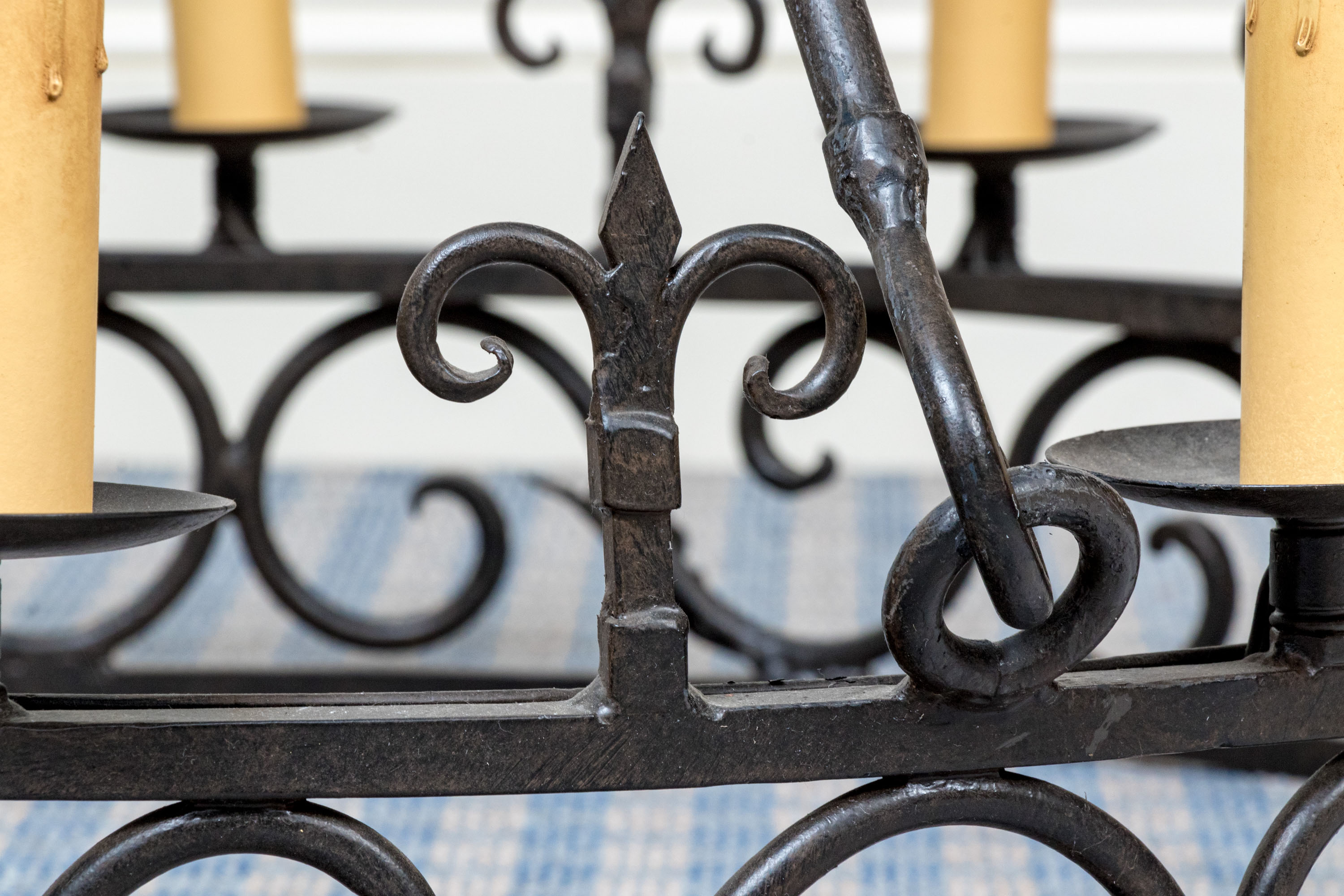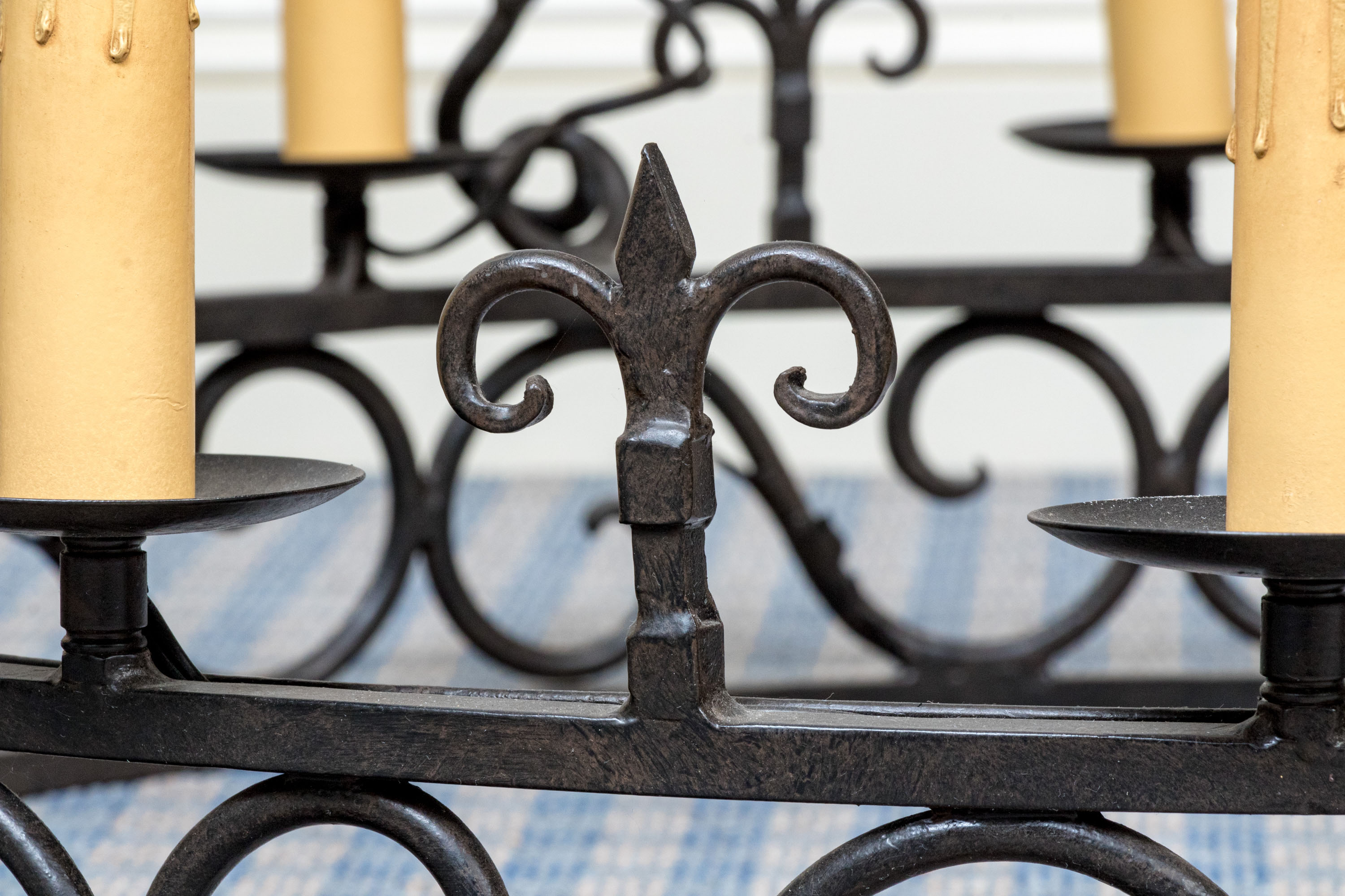A fabulous Baroque style wrought iron light fixture with 12 faux candlestick standards. An absolutely fabulous piece! Retails for $2250.