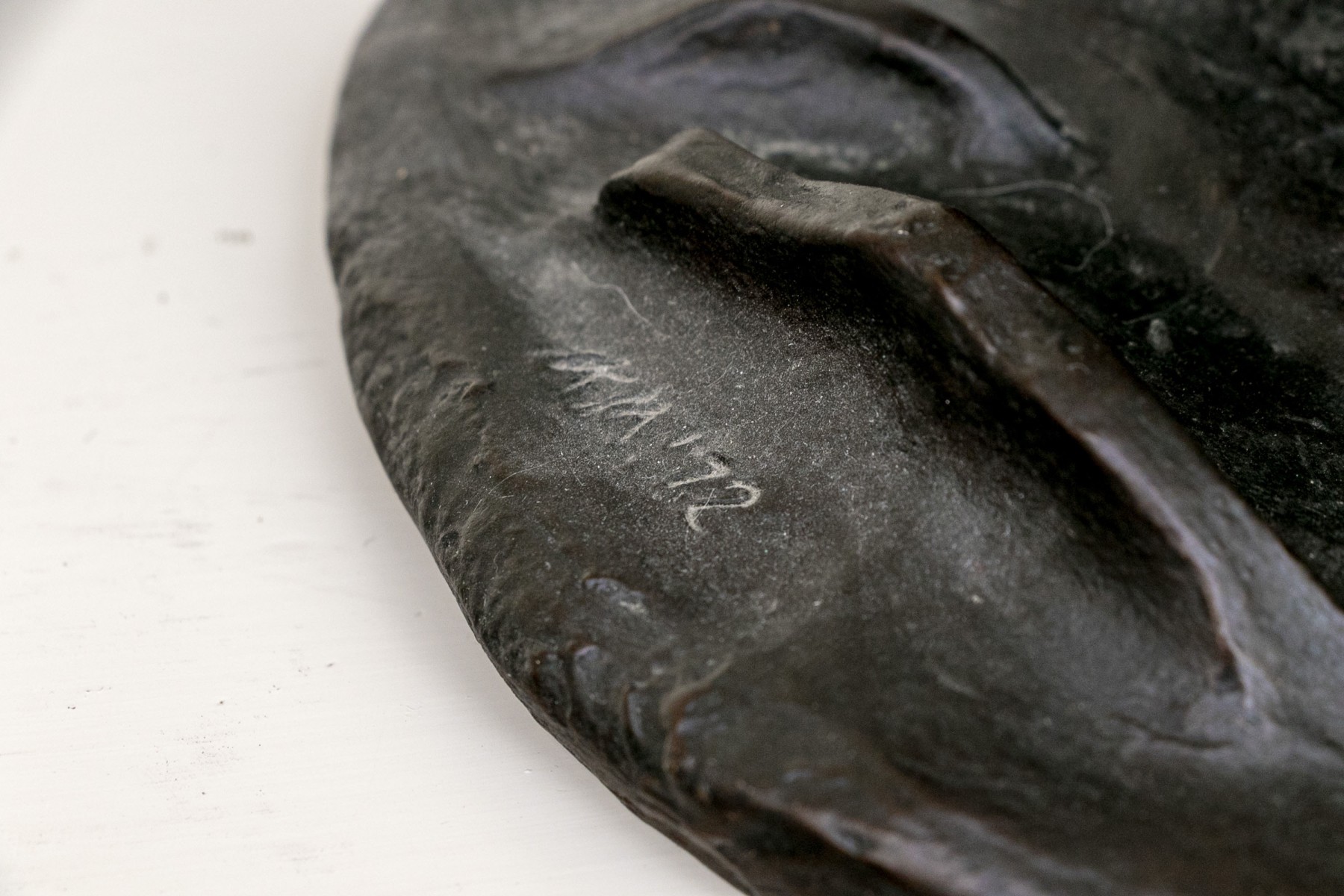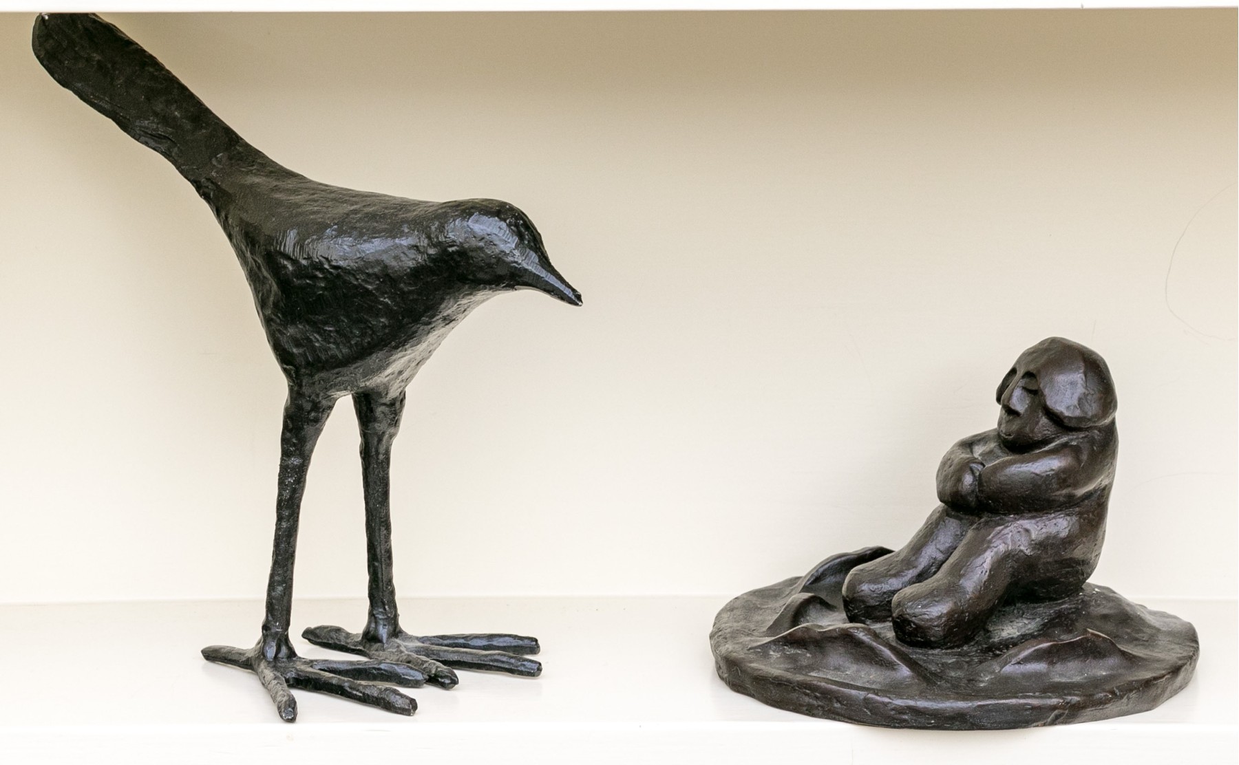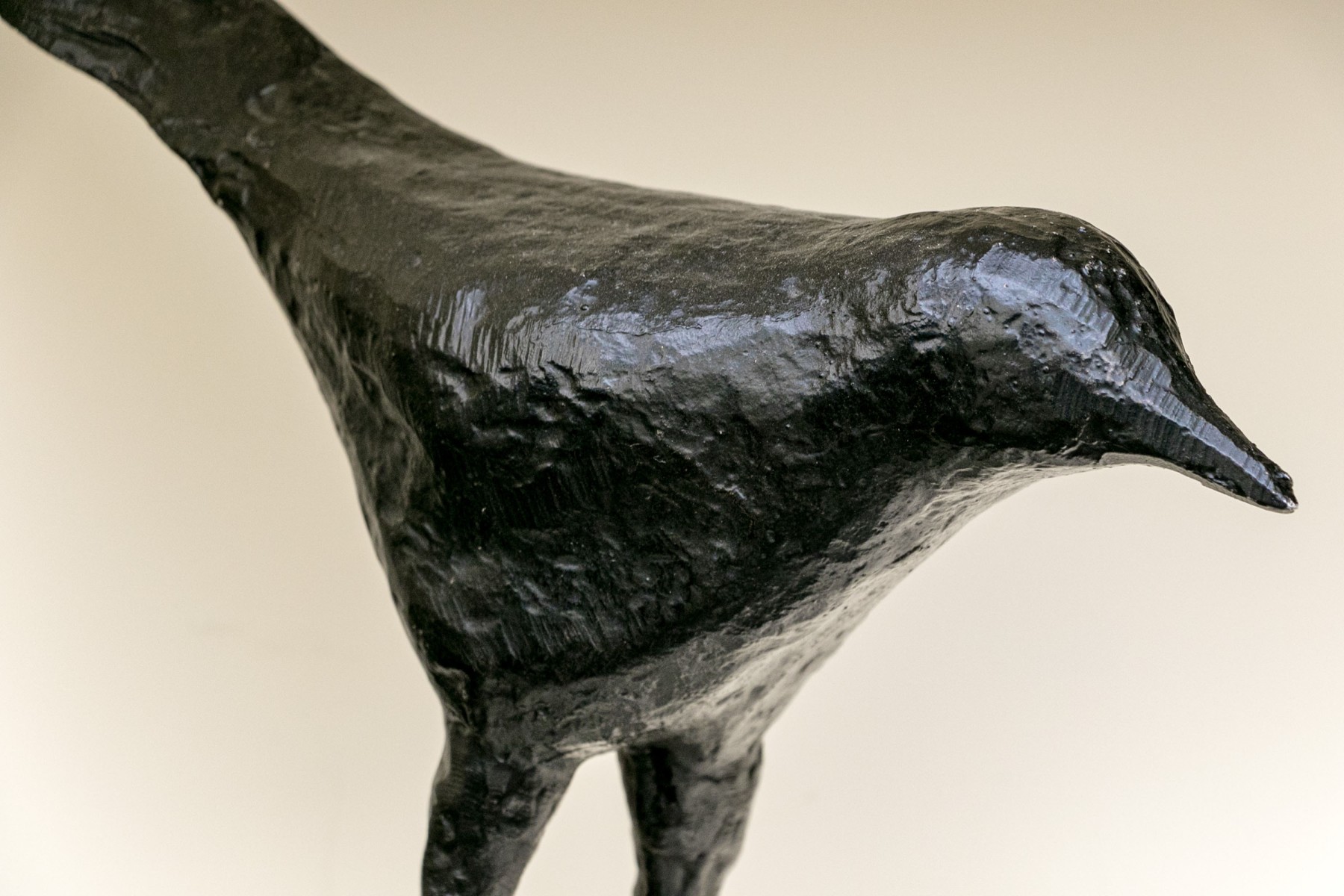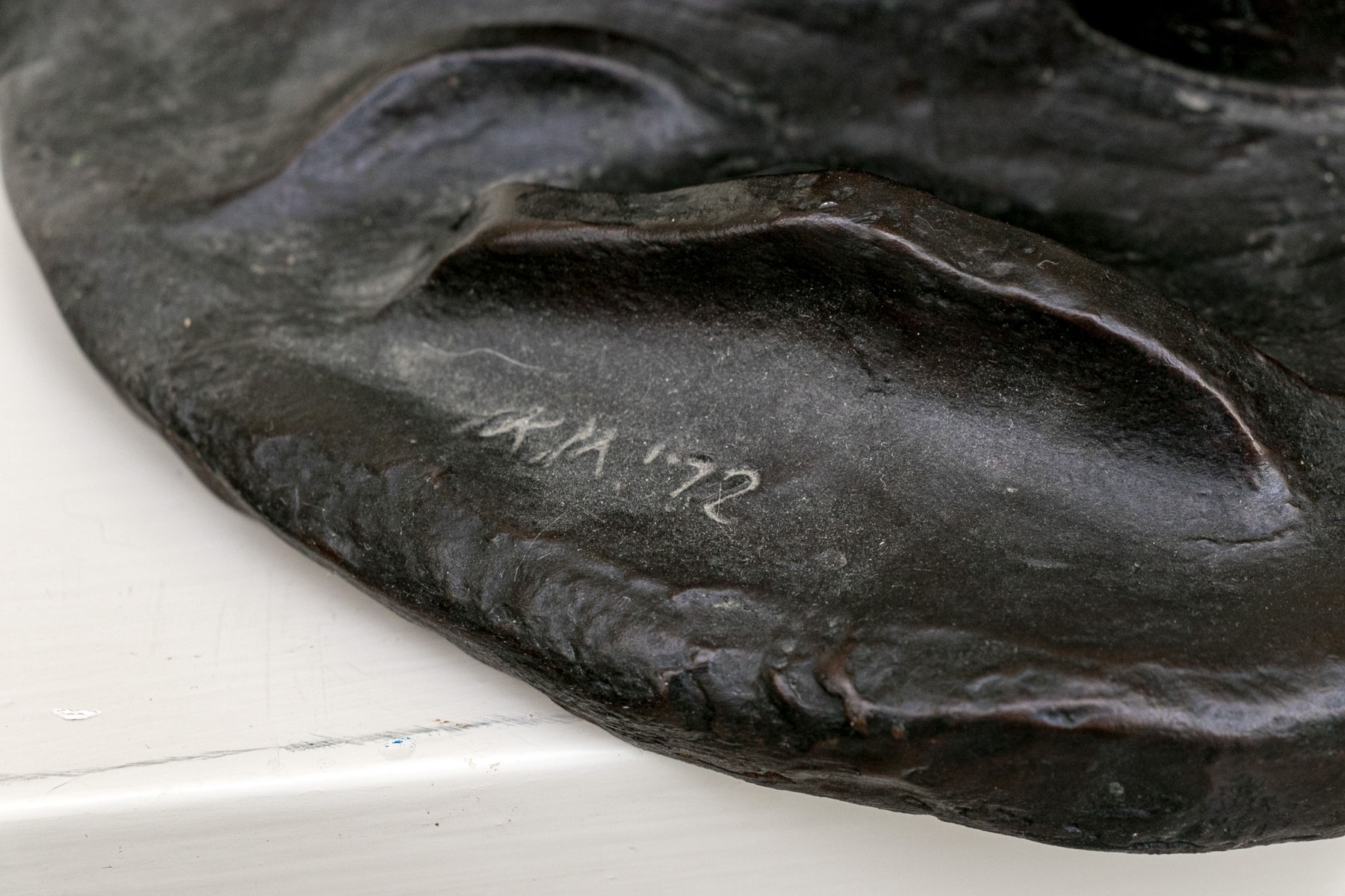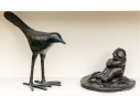 Bronze figural sculpture signed Kim and dated ’72, together with a bronzed finished crow.