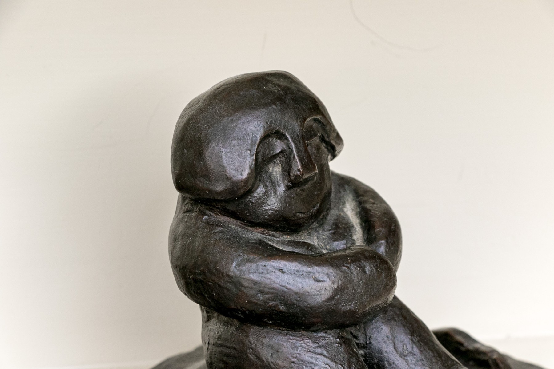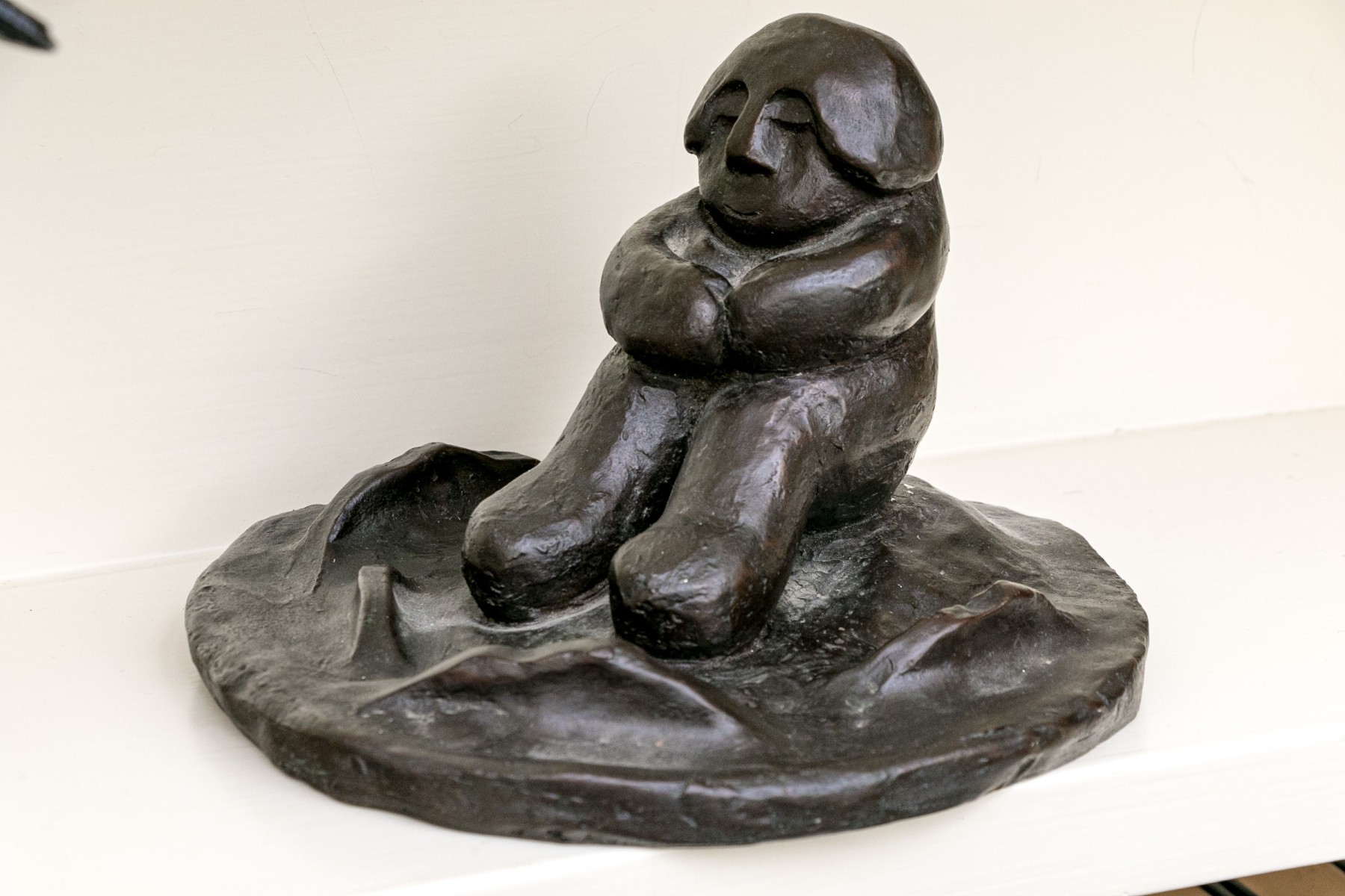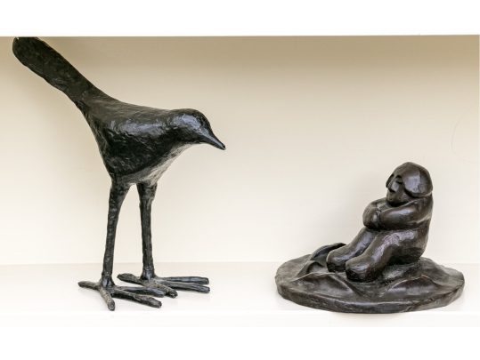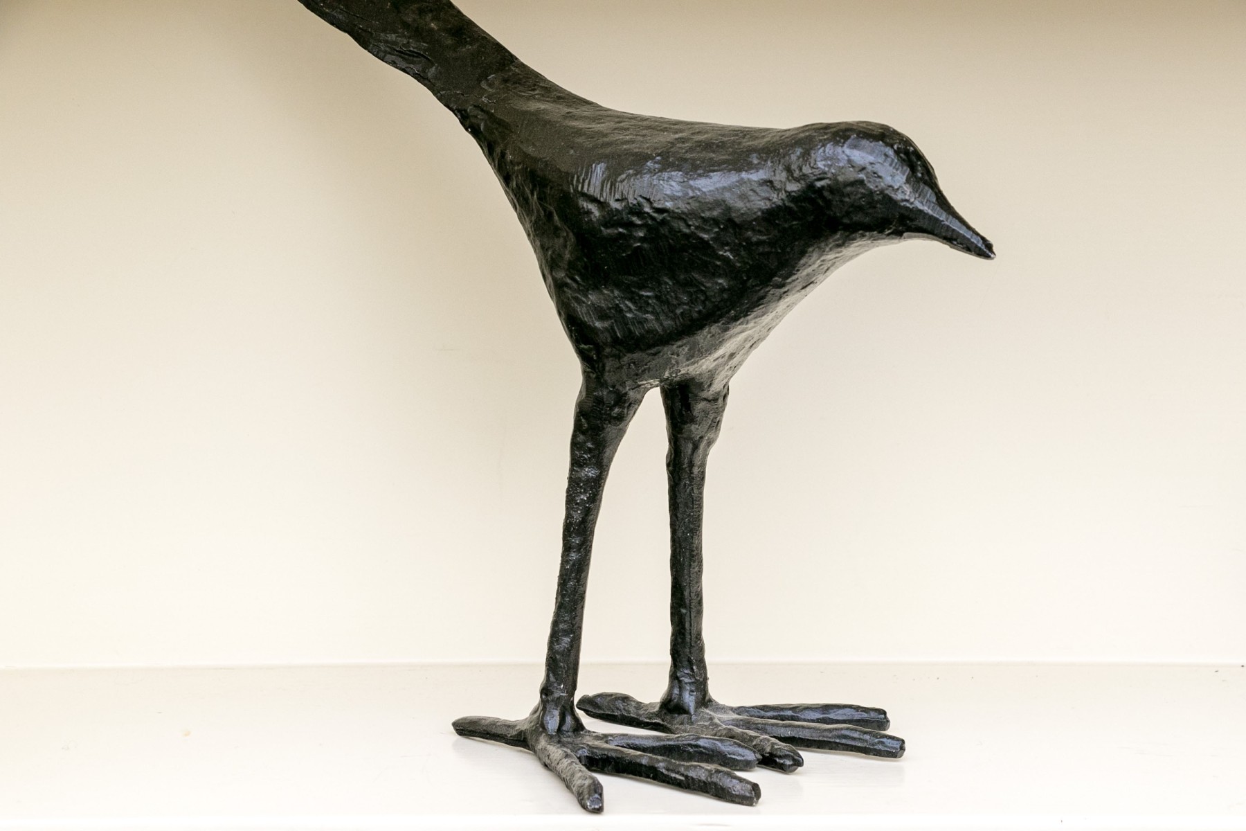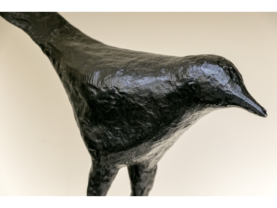 Bronze figural sculpture signed Kim and dated ’72, together with a bronzed finished crow.