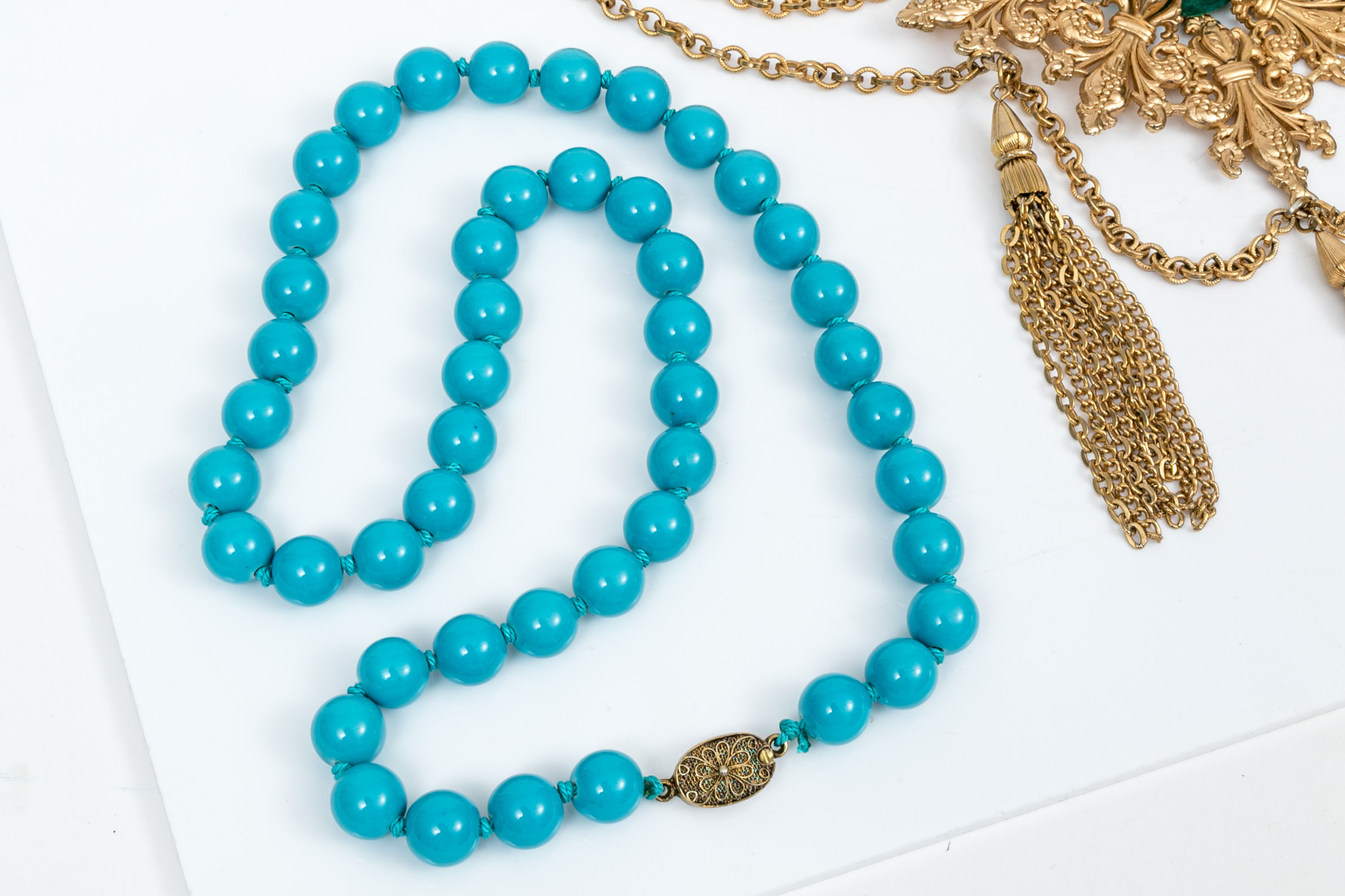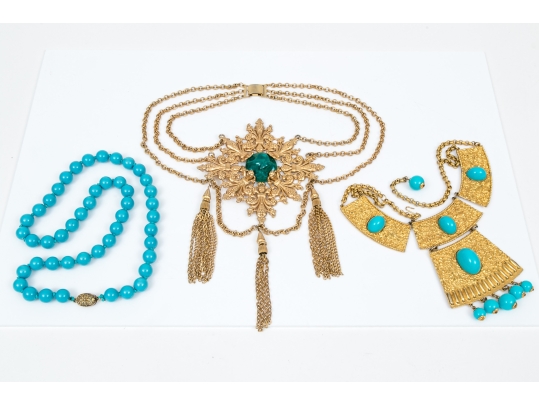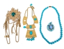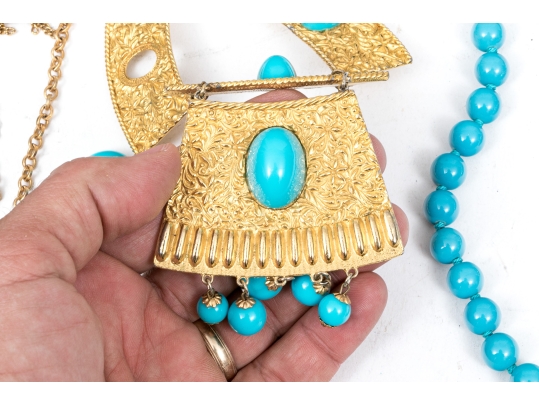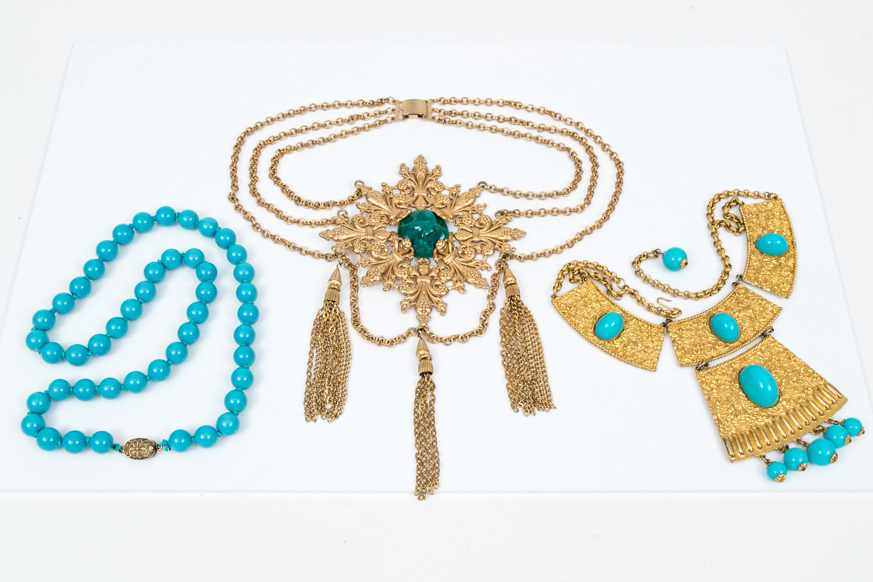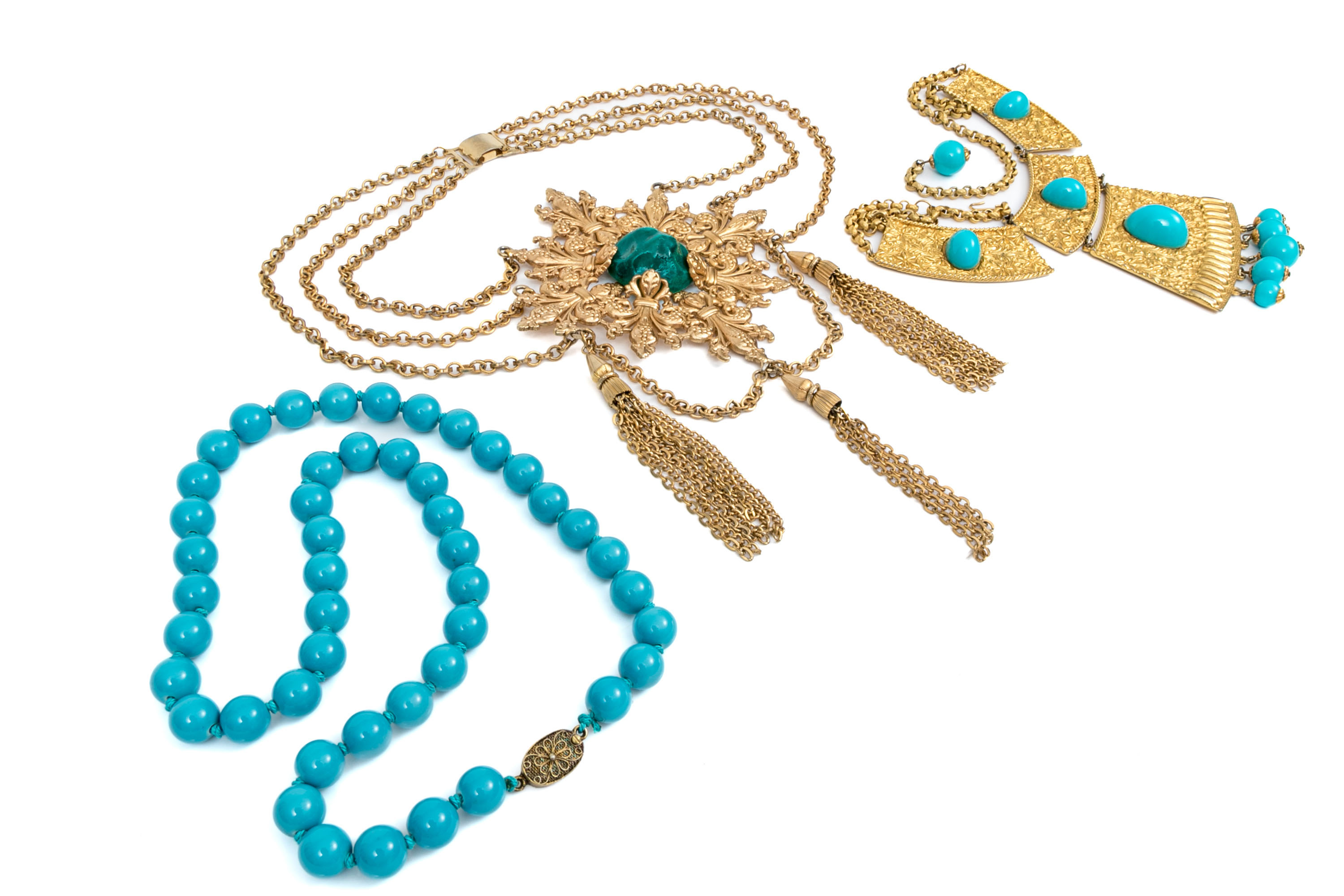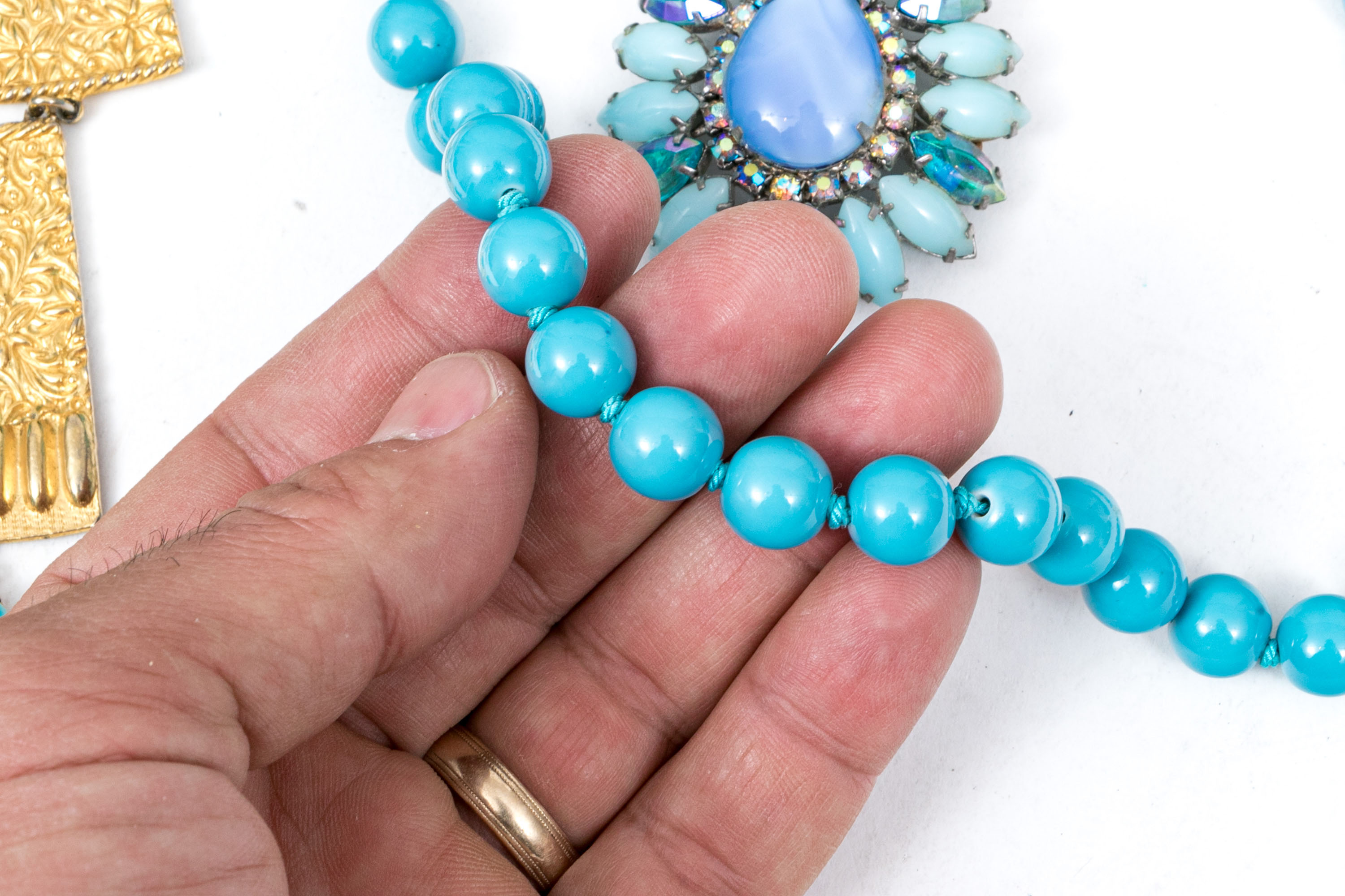 Lot of blue and green toned costume jewelry, including a staggering Napier necklace