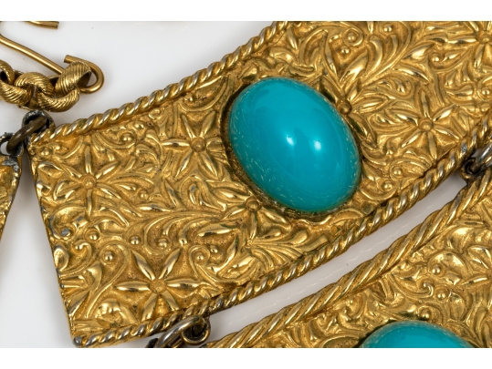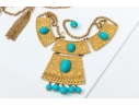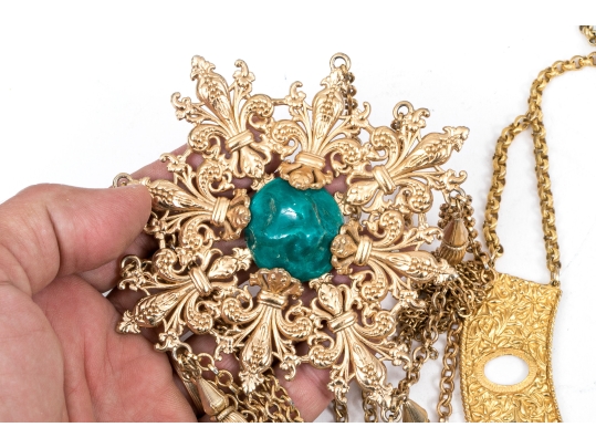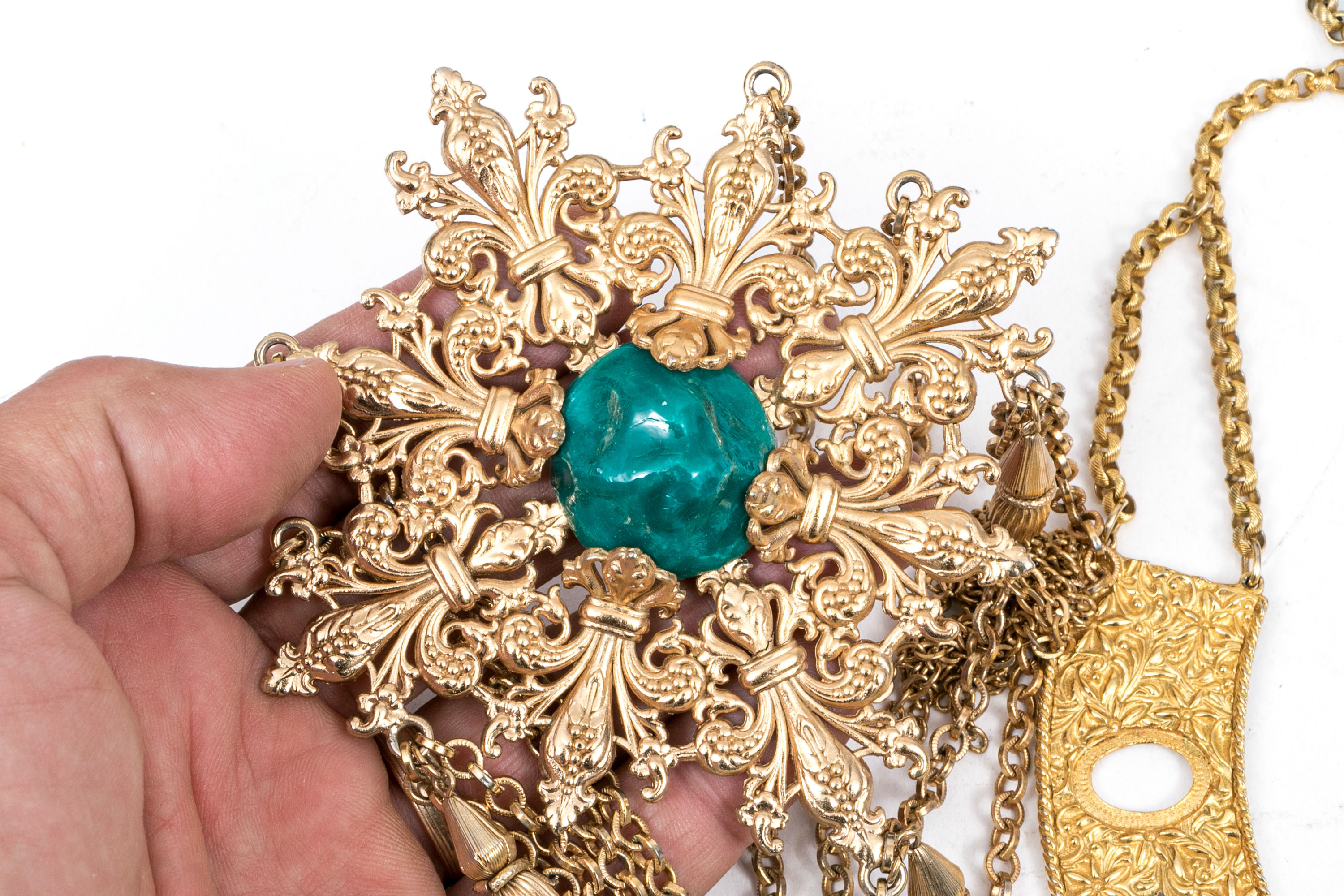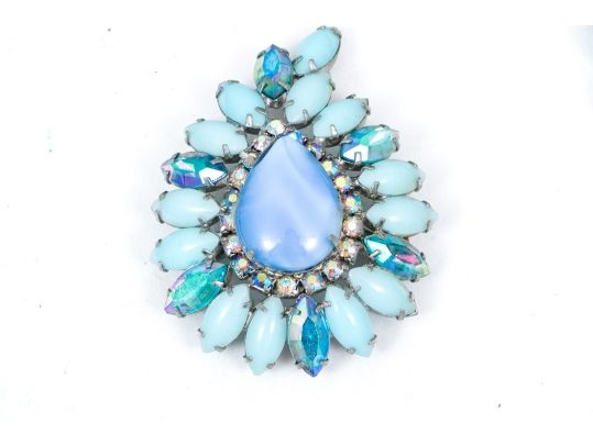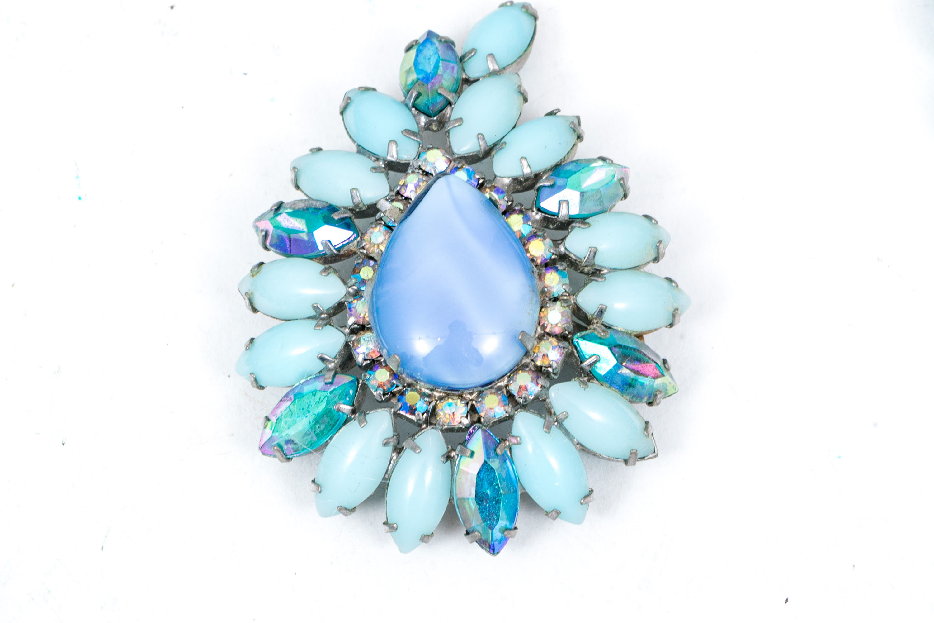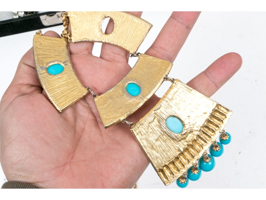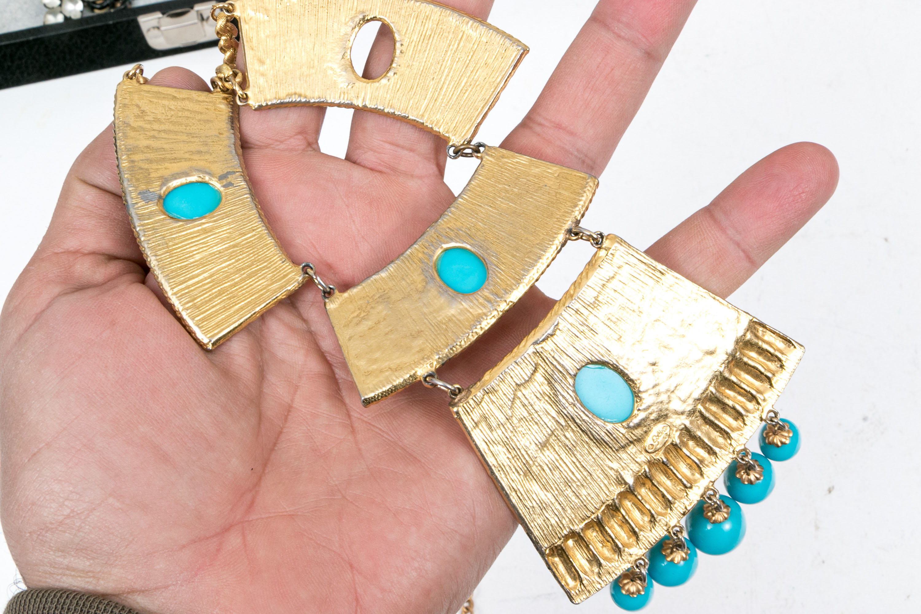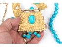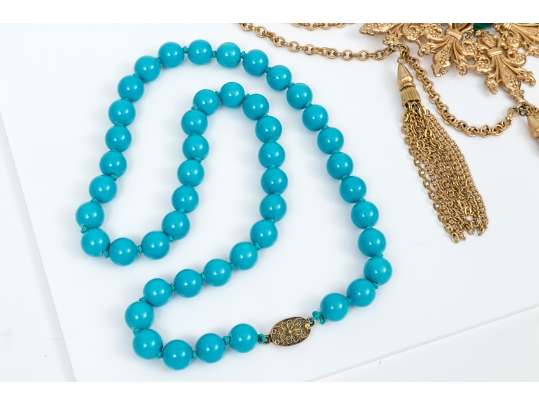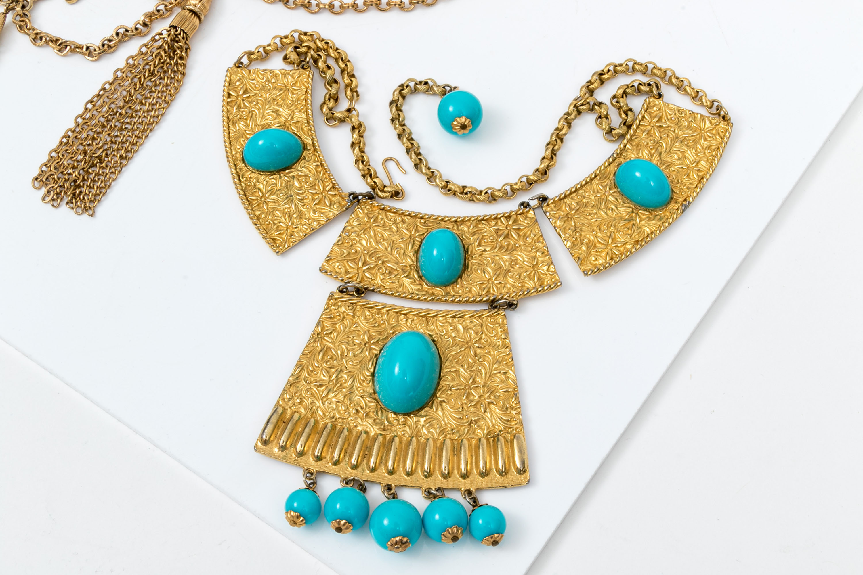 Lot of blue and green toned costume jewelry, including a staggering Napier necklace
