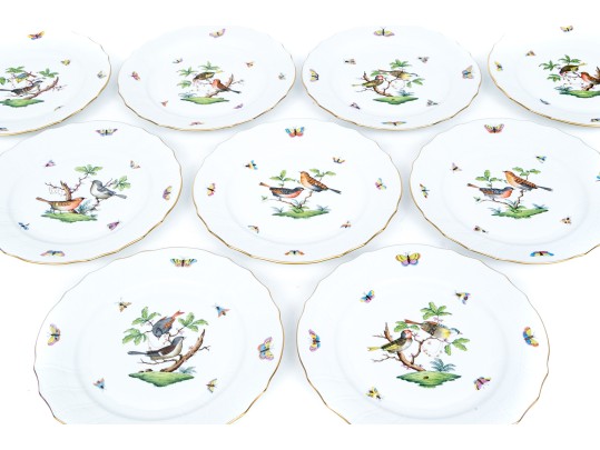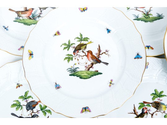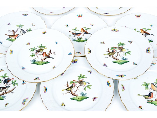Set Of Ten Herend Hungary Hand-Painted Porcelain 10 1/4" Dinner Plates, Rothschild Bird (RO) Pattern #462881. Black Rock Galleries provides high end estate liquidation services through online estate auctions and a 50,000 sq ft designer showroom. estate liquidator, estate sale, online auction, antiques, fine art, liquidation, clean outs, auction, consignment, interior design, fine jewelry, collectibles, appraisals, estate appraisals, estate services, decor, furniture, furniture consignment, antique center, consignment shop. We offer appraisal services and specialize in fine art, jewelry, antiques and decorative arts. Sell with us. Black Rock Galleries is the tri-state's largest estate liquidator serving New England and the greater New York City area. We are the trusted source for expert appraisals, auction services, estate sales, and consignments. Black Rock Galleries is the east coast's largest and most trusted estate liquidator, with locations in Connecticut, greater Boston, MA and Raleigh, NC, Fairfield, Southport, Apex, TX. We are the best source for expert appraisals, auction services, estate sales and consignments. We have served thousands of families and estates with compassion, professionalism and expertise. BRG works with attorneys, executors, realtors and families to bring the greatest return on personal and estate property in the current market. Our unique combination of services make us the easy choice to get the job done in a timely and stress-free manner. We are with you from the initial consultation to the final clean out. Our house-built online auction software platform offers clients a dynamic approach to liquidating their personal property. This venue is most successful in bringing the best return with the least amount of disruption for our clients. See our services page for a complete description of this offering. Set Of Ten Herend Hungary Hand-Painted Porcelain 10 1/4" Dinner Plates, Rothschild Bird (RO) Pattern #462881