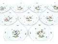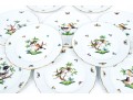 Condition: Excellent overall condition. All ten plates are free of chips, cracks, and restorations. The hand-painted decoration remains vivid, and the gilded rims are intact and lustrous, showing only minimal signs of careful use. Glaze surfaces are glossy and well-preserved throughout. No utensil marks.