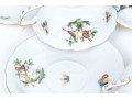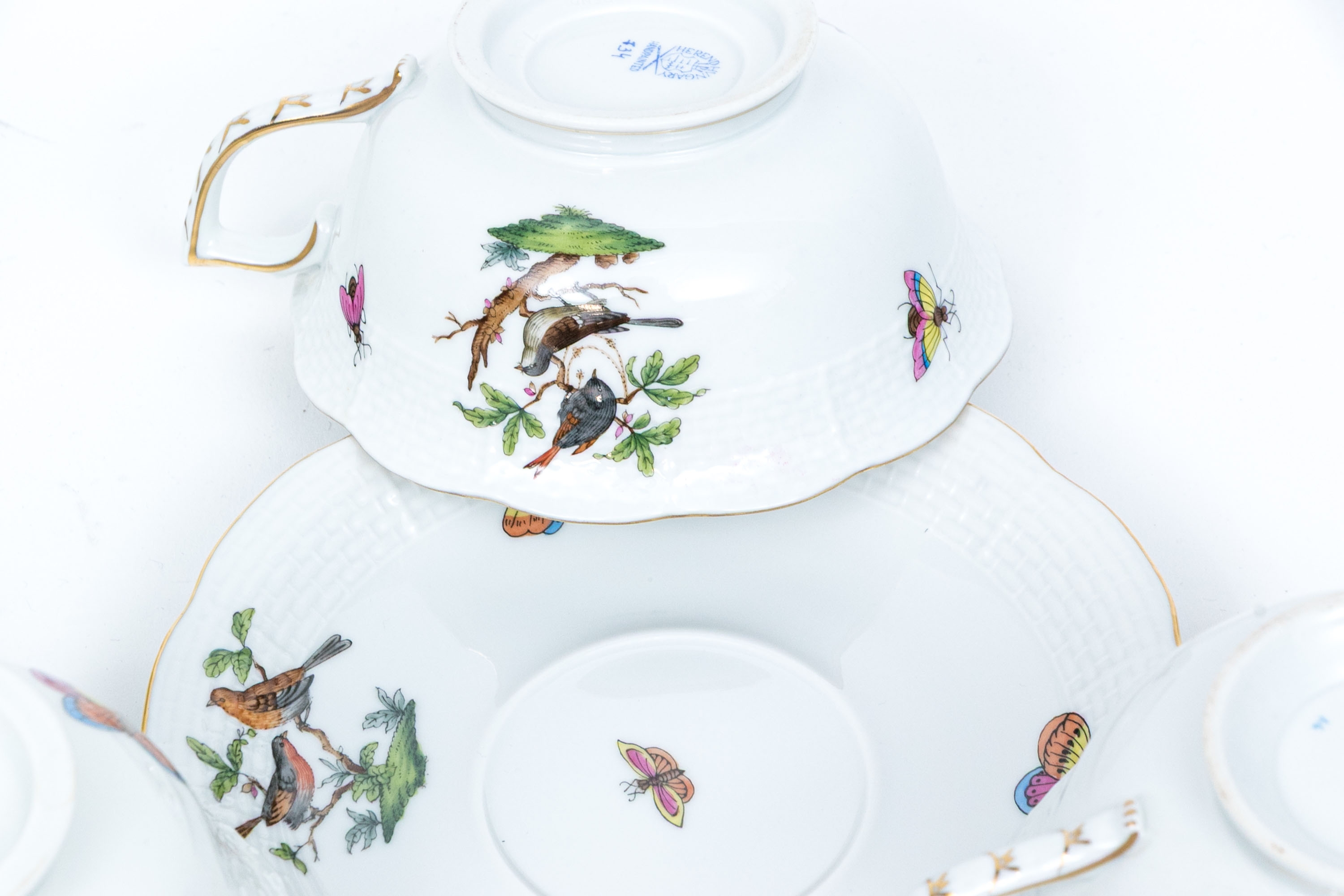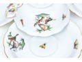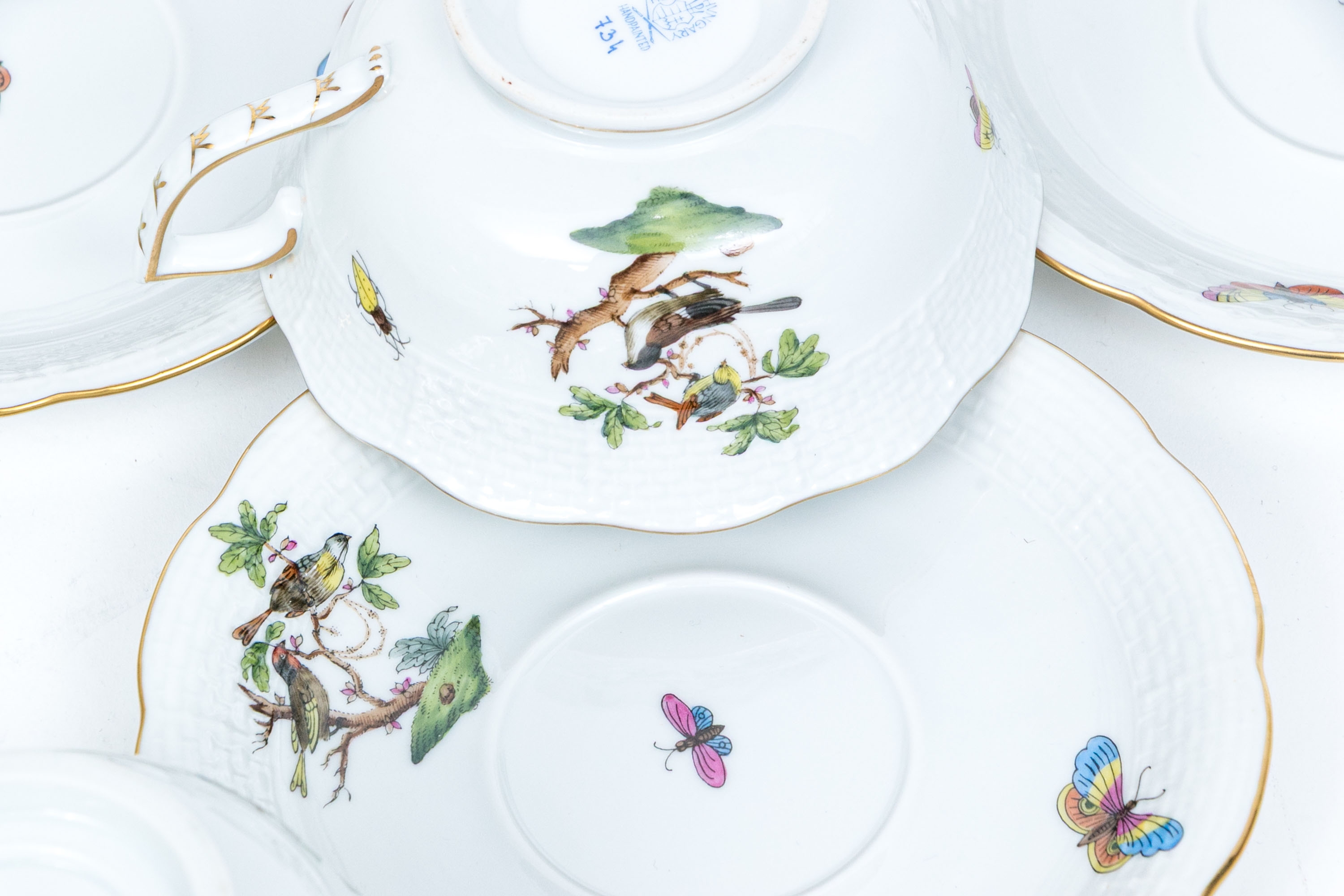 Undersides are clean and clearly marked with the Herend blue hallmark and hand-painted pattern numbers. Minor shelf wear is visible on some base rims, consistent with careful use and age.
