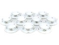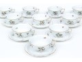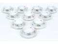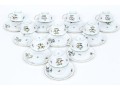 Nine cups and all ten saucers are in excellent condition, free of chips, cracks, or restorations. One cup exhibits a visible hairline crack (as shown), though it remains structurally sound and stable. The gilt detailing is bright and complete, and the hand-painted designs remain crisp, vivid, and unfaded.