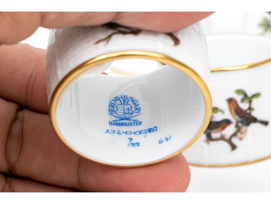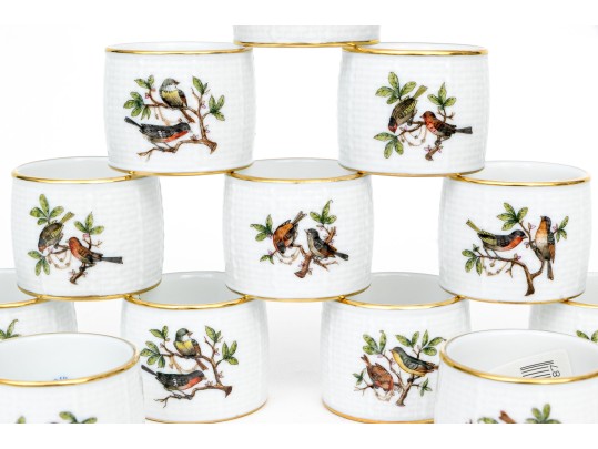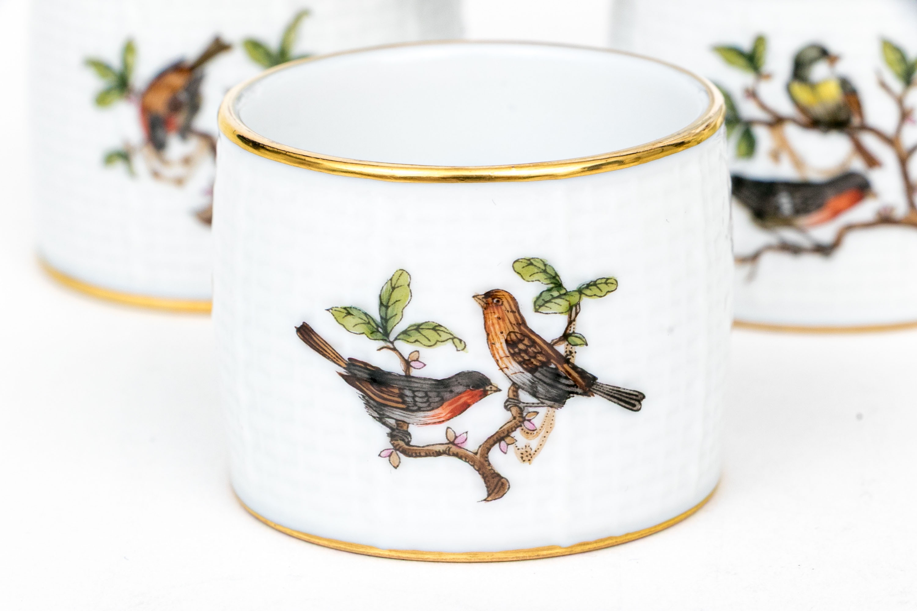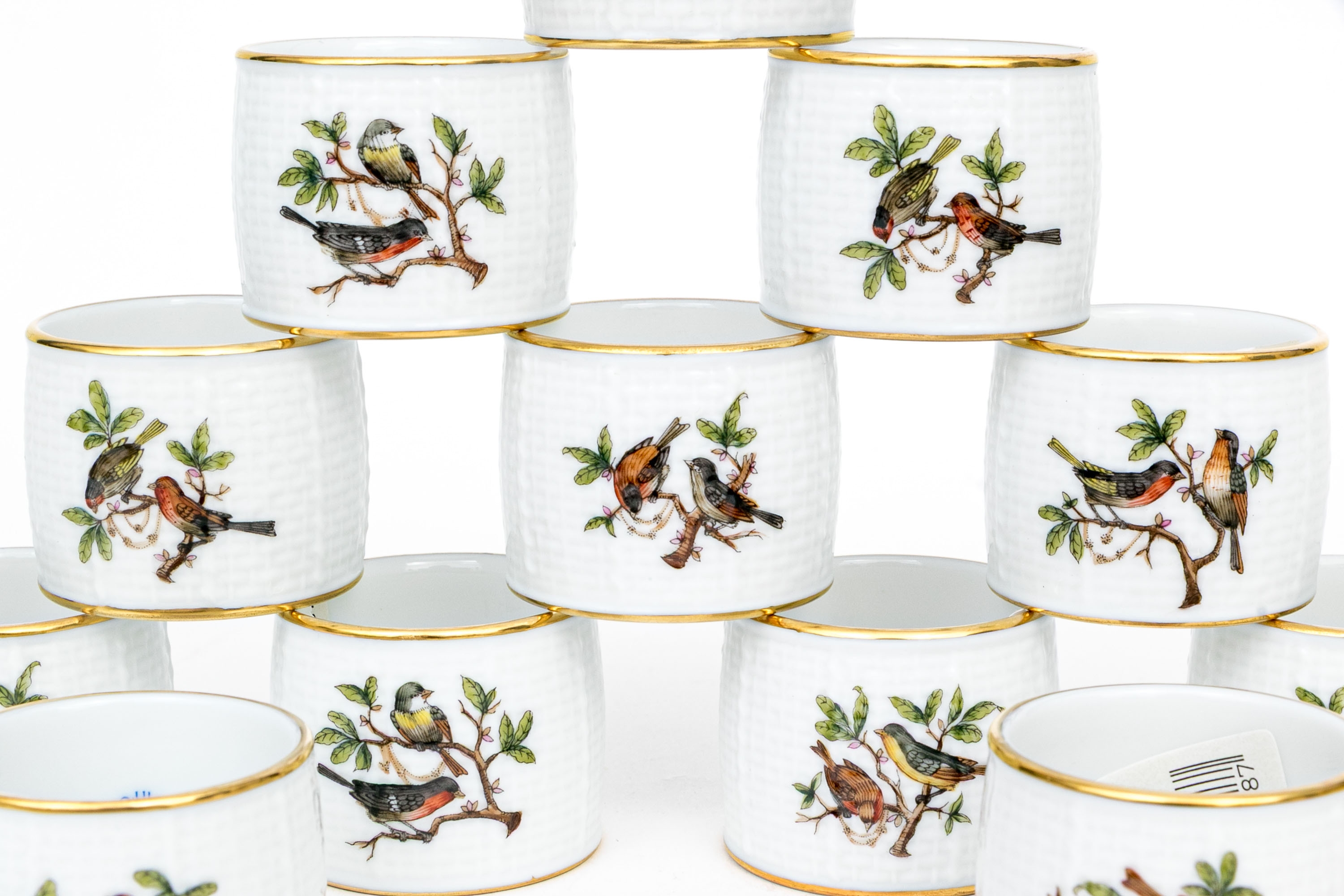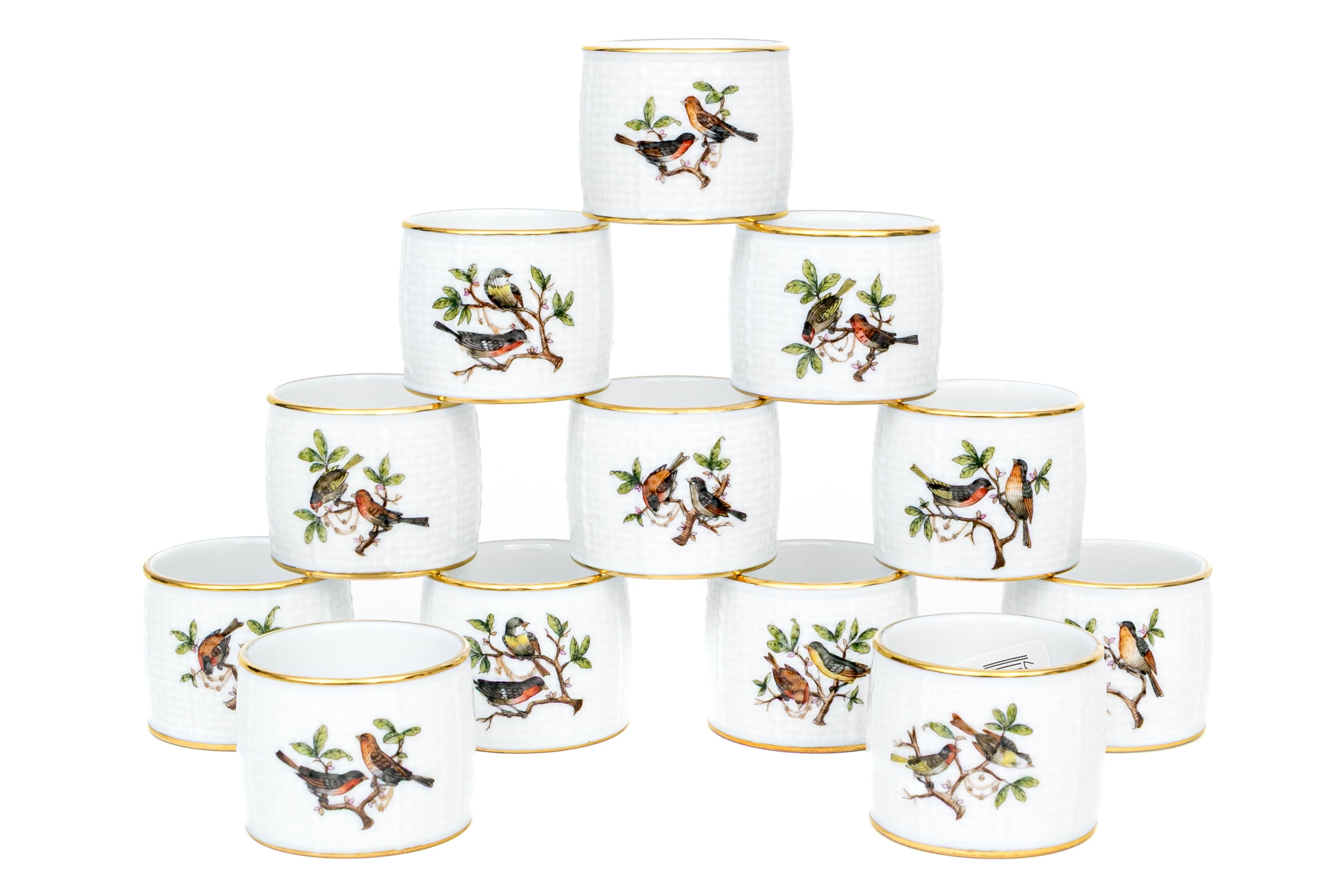 Set of twelve Herend Hungary hand-painted porcelain napkin rings in the classic Rothschild Bird (RO) pattern.