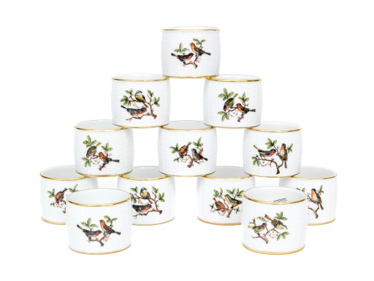 Set Of Twelve Herend Hand-Painted Porcelain Napkin RIngs, Rothschild Bird (RO) Pattern #462535. Black Rock Galleries provides high end estate liquidation services through online estate auctions and a 50,000 sq ft designer showroom. estate liquidator, estate sale, online auction, antiques, fine art, liquidation, clean outs, auction, consignment, interior design, fine jewelry, collectibles, appraisals, estate appraisals, estate services, decor, furniture, furniture consignment, antique center, consignment shop. We offer appraisal services and specialize in fine art, jewelry, antiques and decorative arts. Sell with us. Black Rock Galleries is the tri-state's largest estate liquidator serving New England and the greater New York City area. We are the trusted source for expert appraisals, auction services, estate sales, and consignments. Black Rock Galleries is the east coast's largest and most trusted estate liquidator, with locations in Connecticut, greater Boston, MA and Raleigh, NC, Fairfield, Southport, Apex, TX. We are the best source for expert appraisals, auction services, estate sales and consignments. We have served thousands of families and estates with compassion, professionalism and expertise. BRG works with attorneys, executors, realtors and families to bring the greatest return on personal and estate property in the current market. Our unique combination of services make us the easy choice to get the job done in a timely and stress-free manner. We are with you from the initial consultation to the final clean out. Our house-built online auction software platform offers clients a dynamic approach to liquidating their personal property. This venue is most successful in bringing the best return with the least amount of disruption for our clients. See our services page for a complete description of this offering. Set Of Twelve Herend Hand-Painted Porcelain Napkin RIngs, Rothschild Bird (RO) Pattern #462535