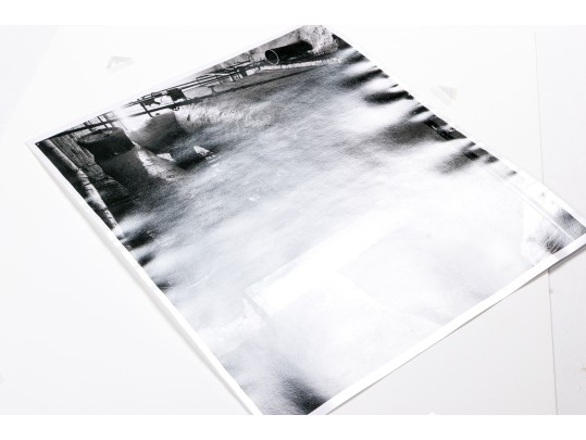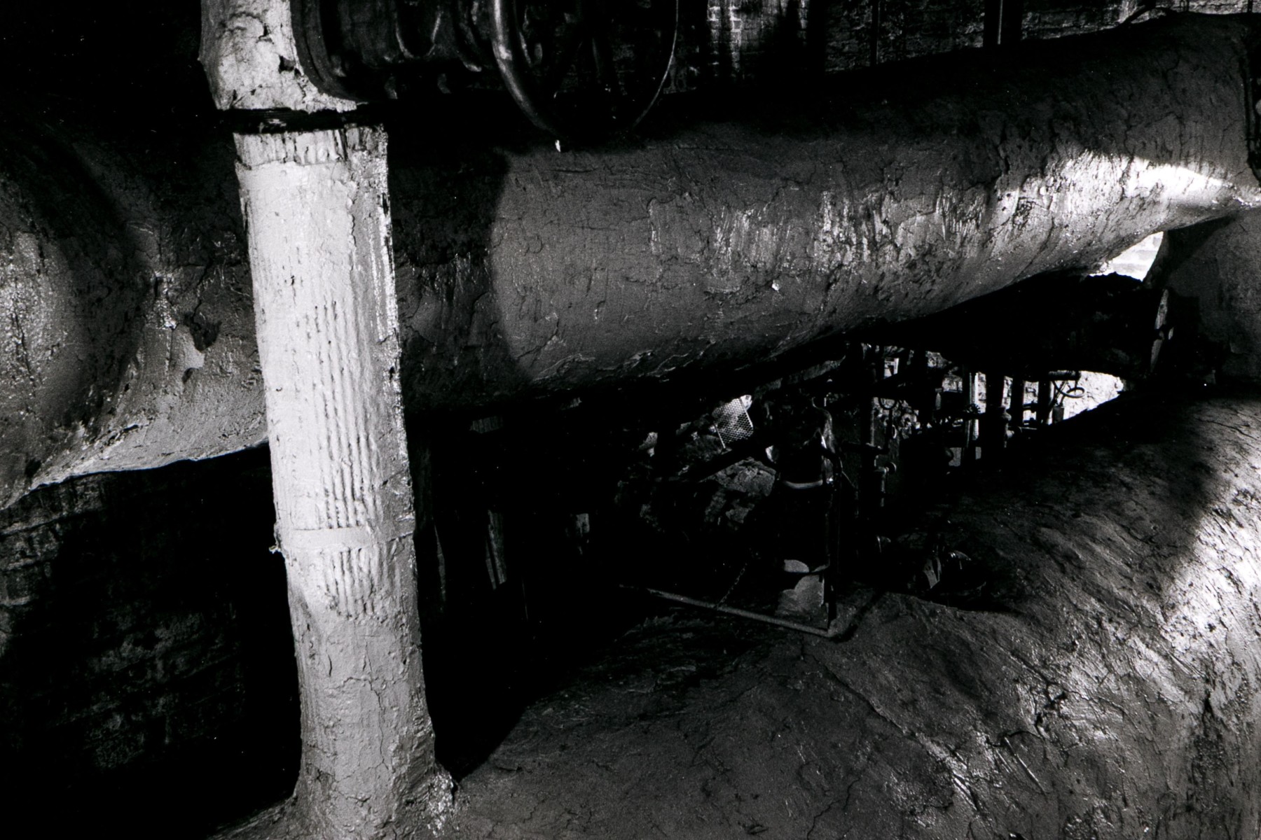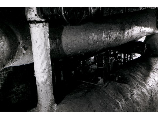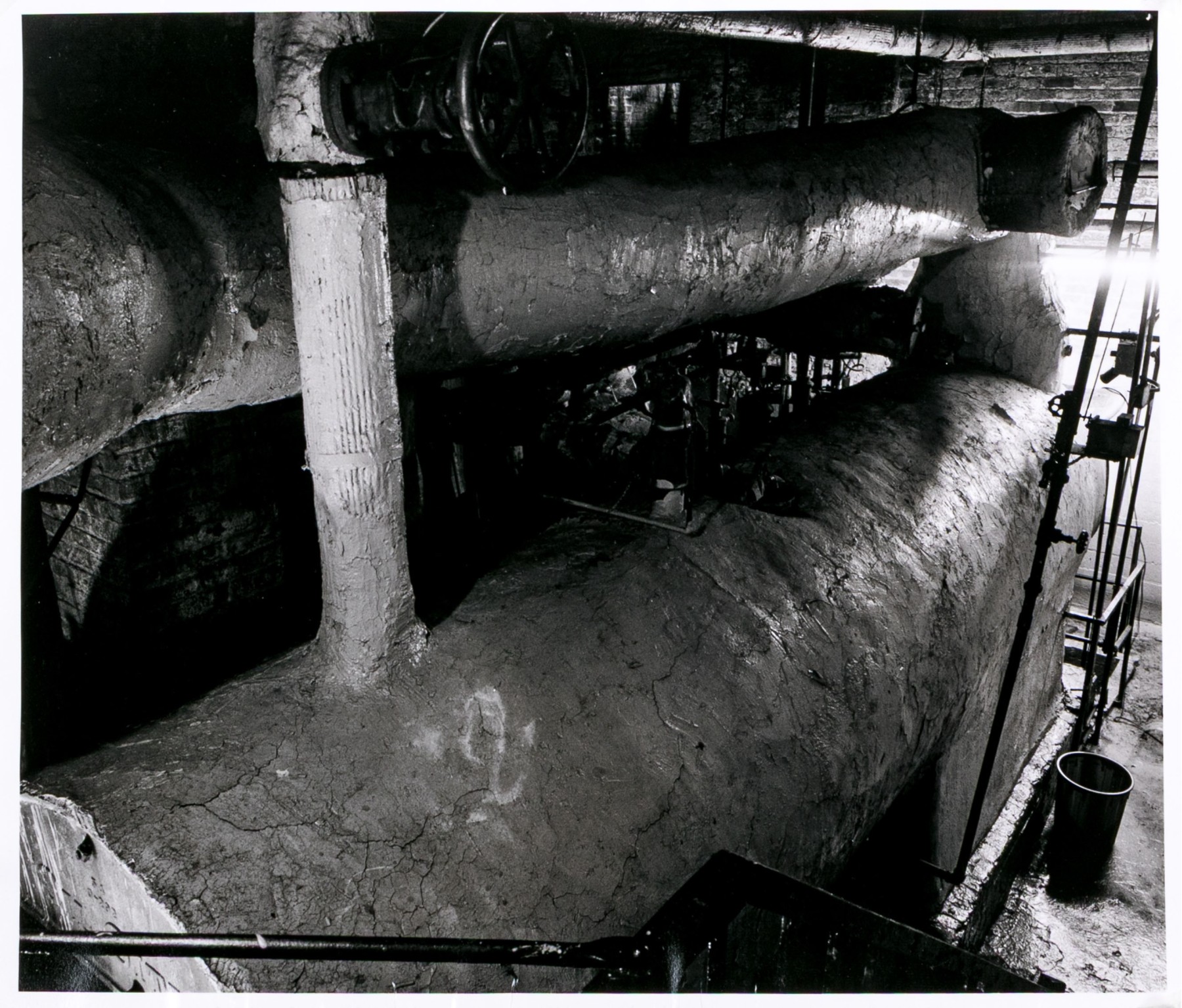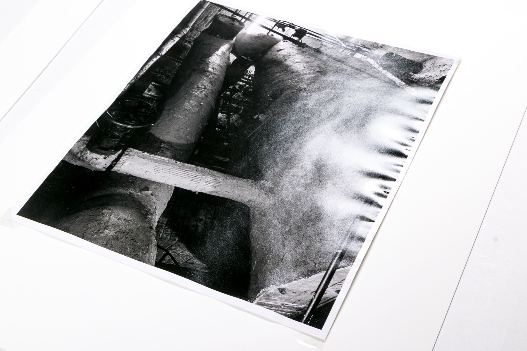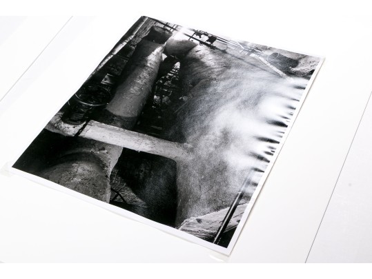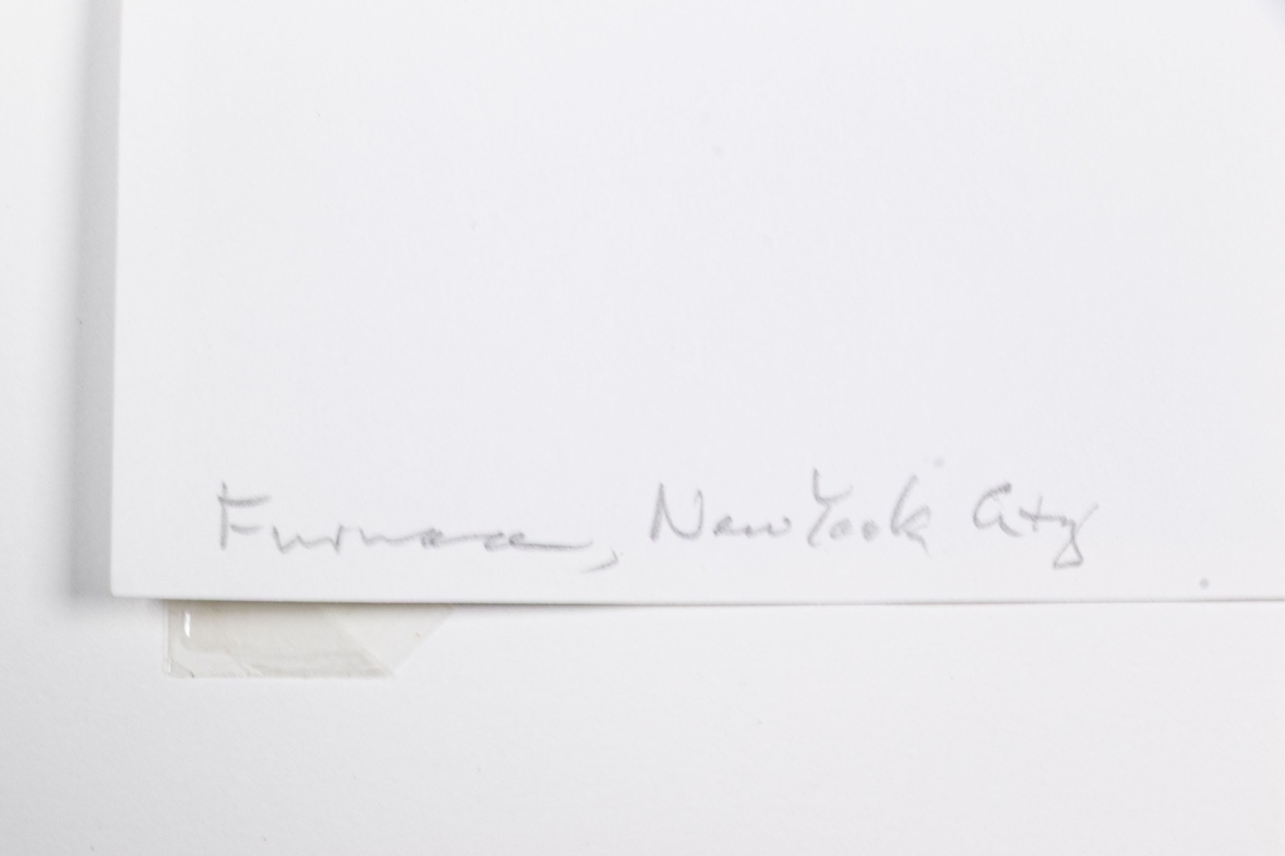 A wonderful gelatin silver print entitled "Furnace, New York City" depicting an industrial cene with pipes illuminated by a light to the back right. Titled, signed, and numbered 1/10 on the verso. Unframed.