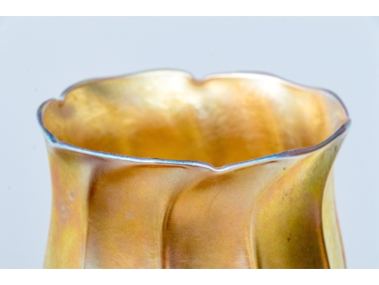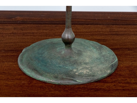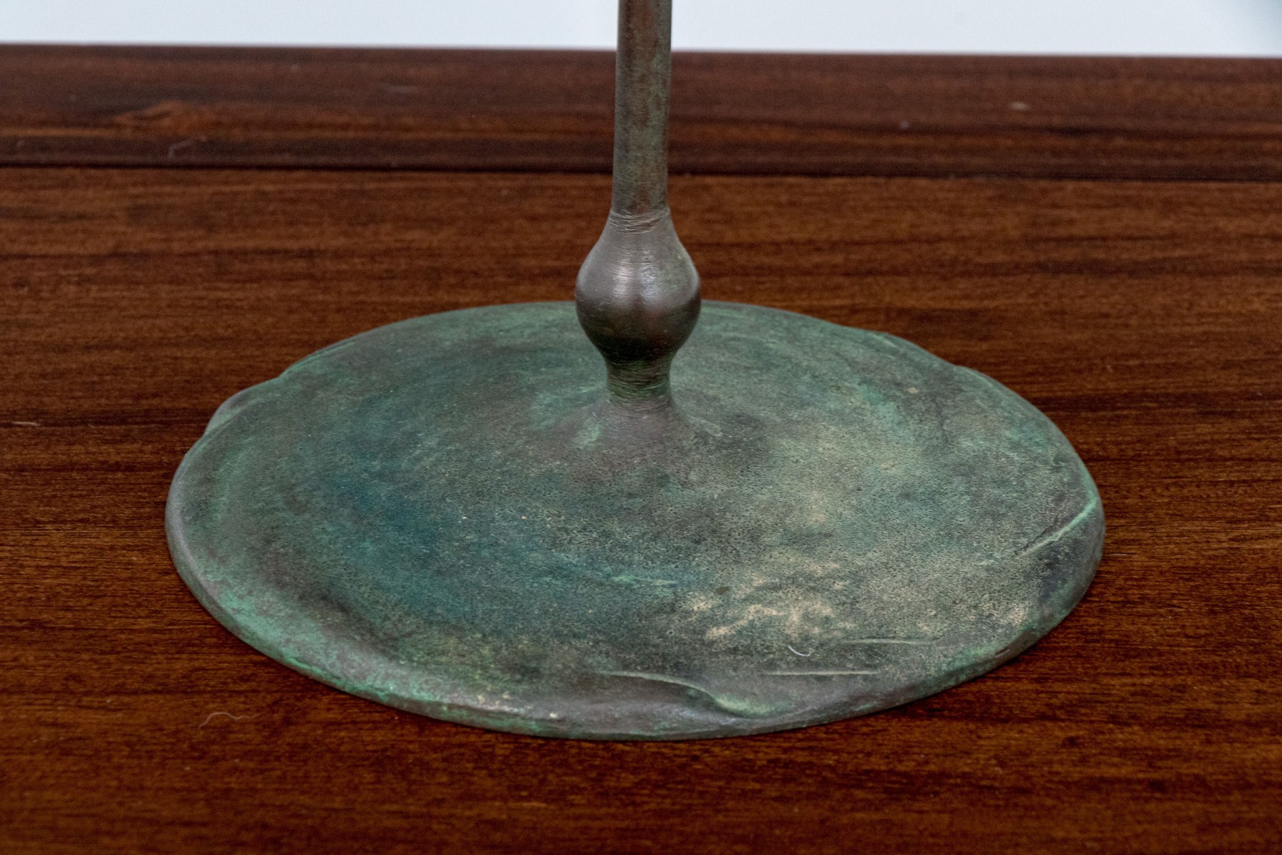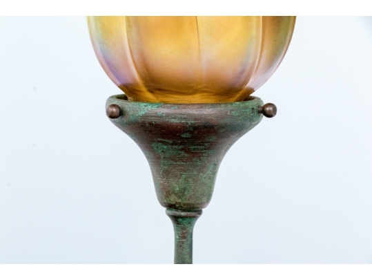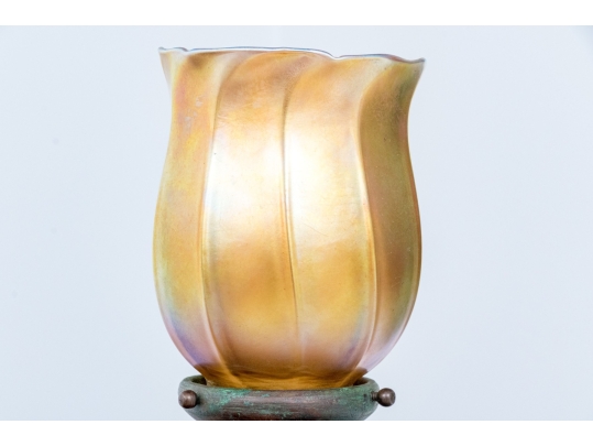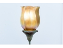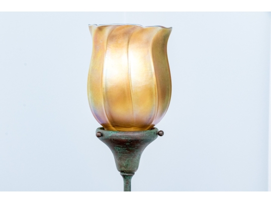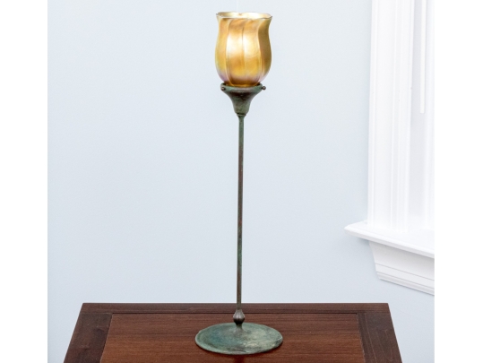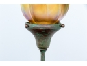 Vintage Tiffany Studios Style Bronze And Favrile Glass Candle Lamp