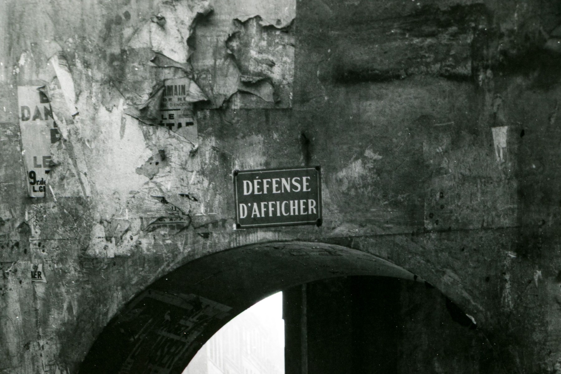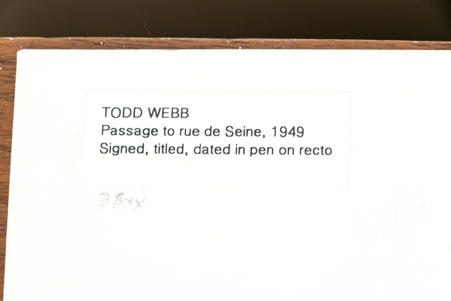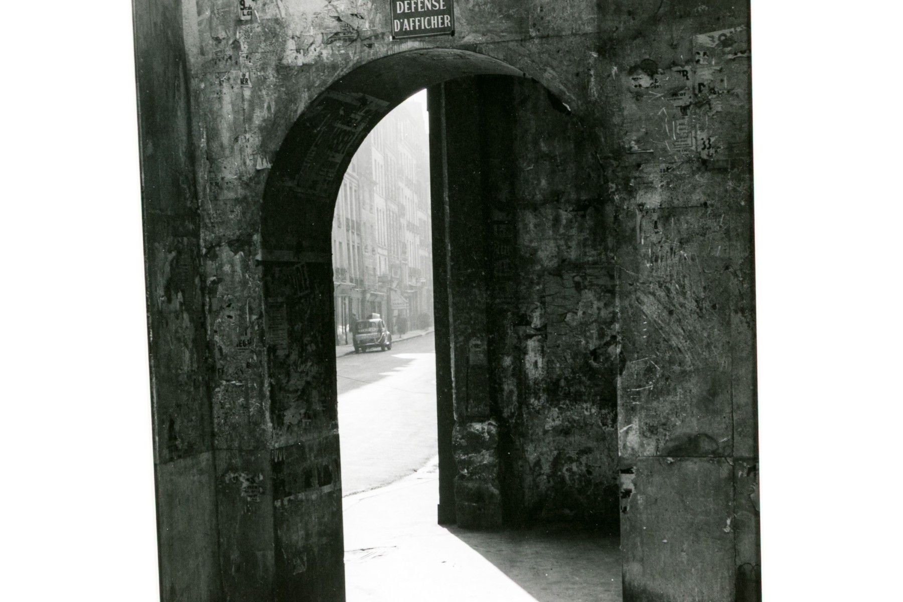 Todd Webb (American, 1905-2000) "Passage To Rue De Seine" photographic print depicting a view of light streaming in through an archway around a building corner leading to a view of an urban street in the background. Signed, titled, and numbered #15 lower left. Unframed.