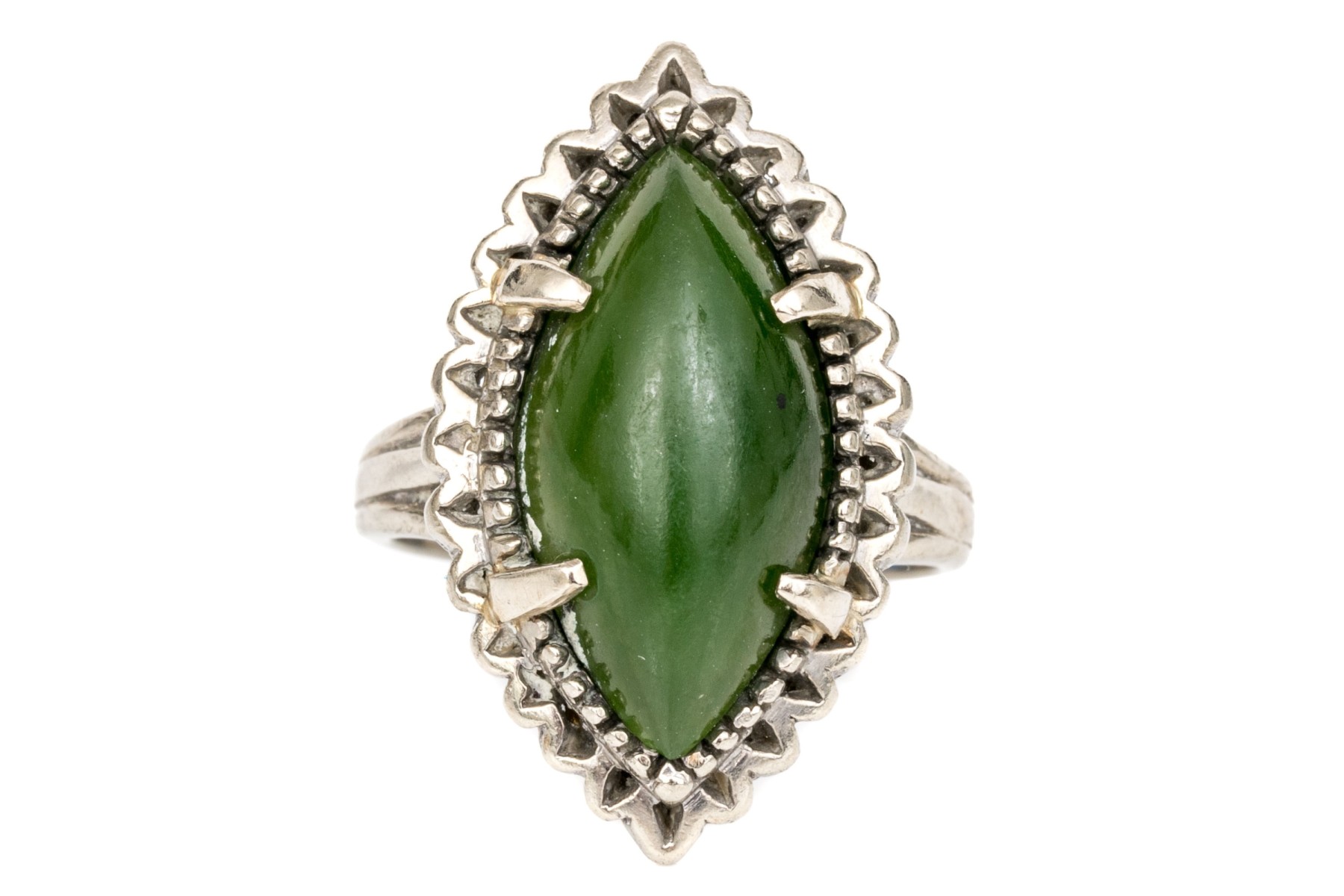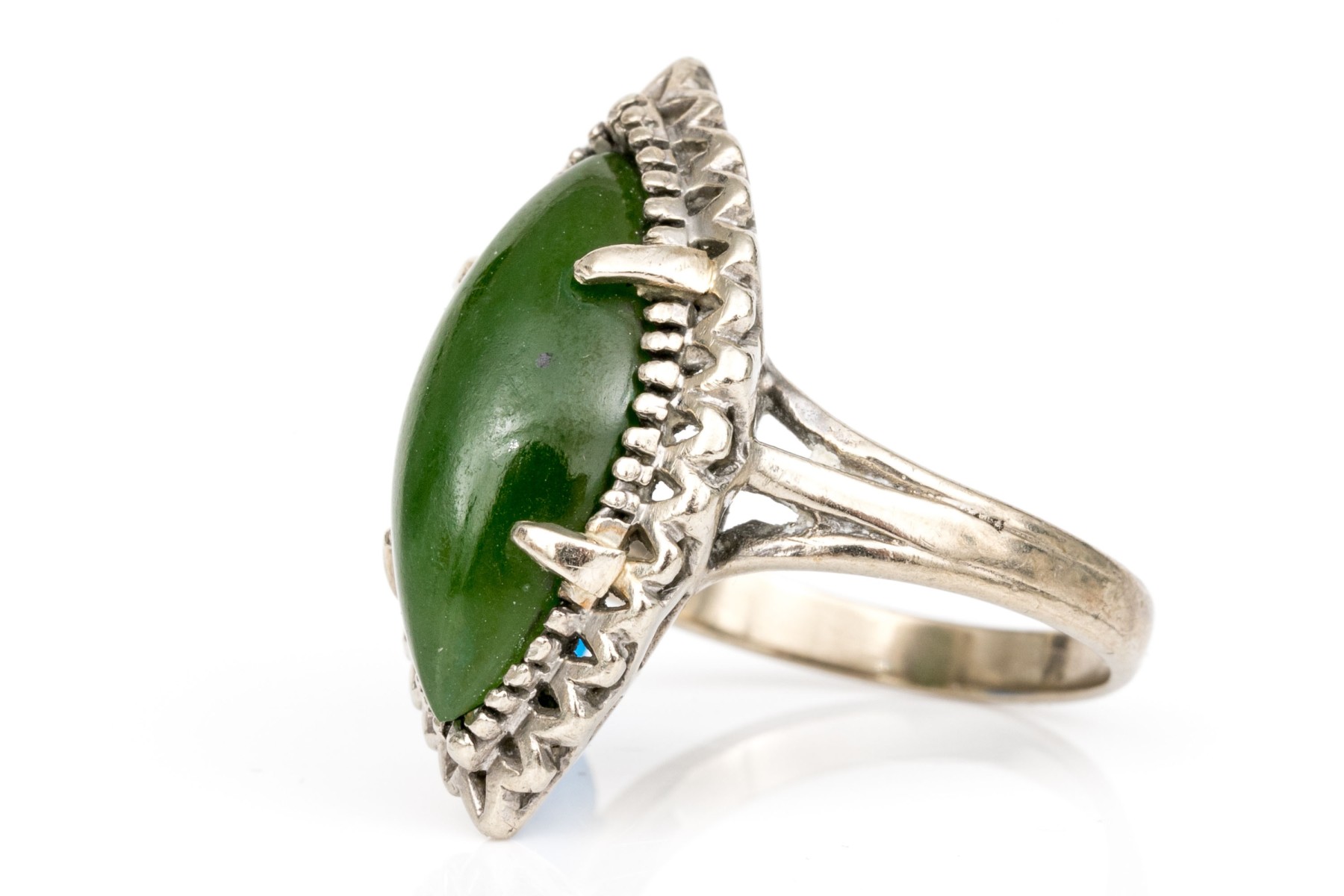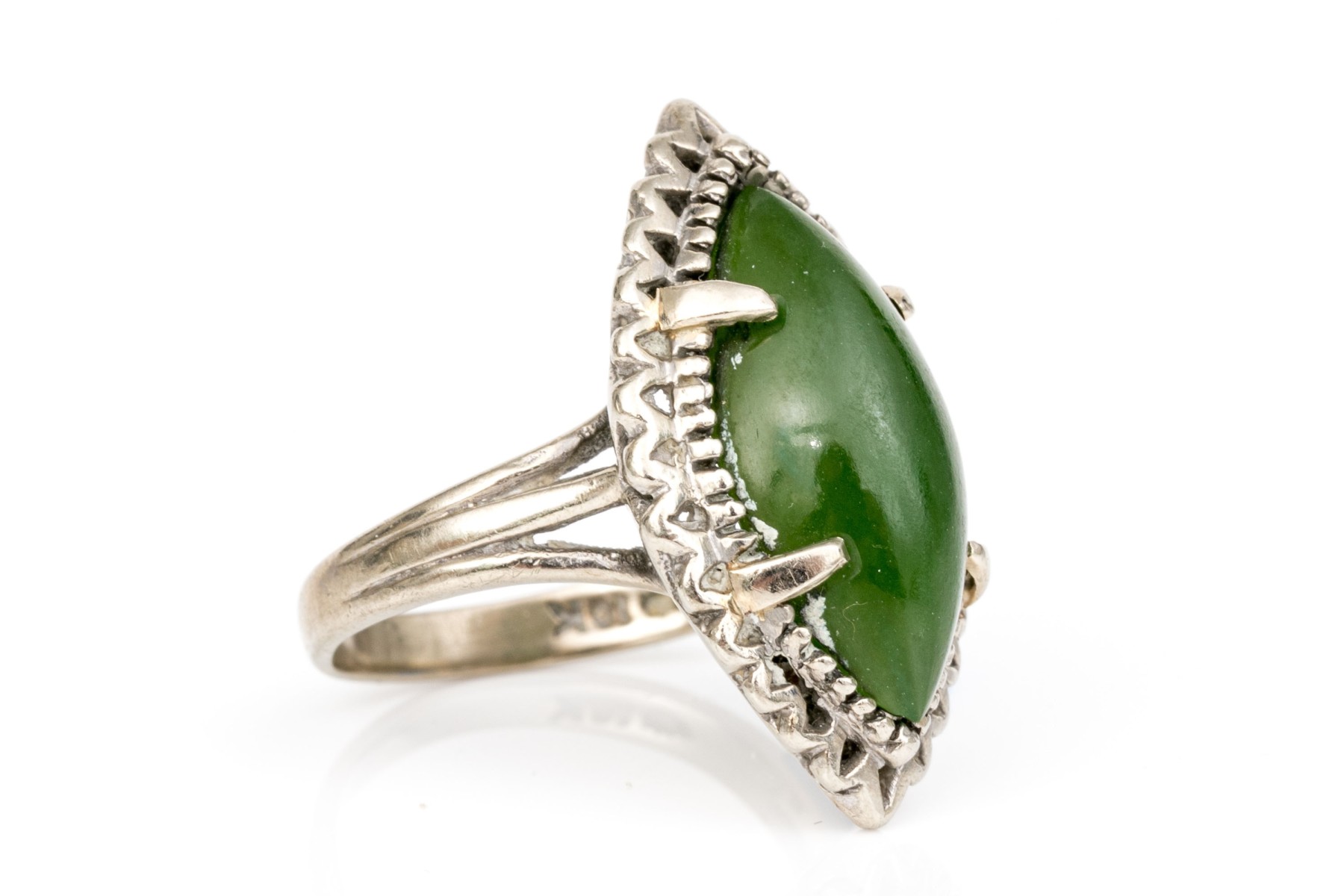 10k white gold marquise cabachon nephrite jade ring, size 6
