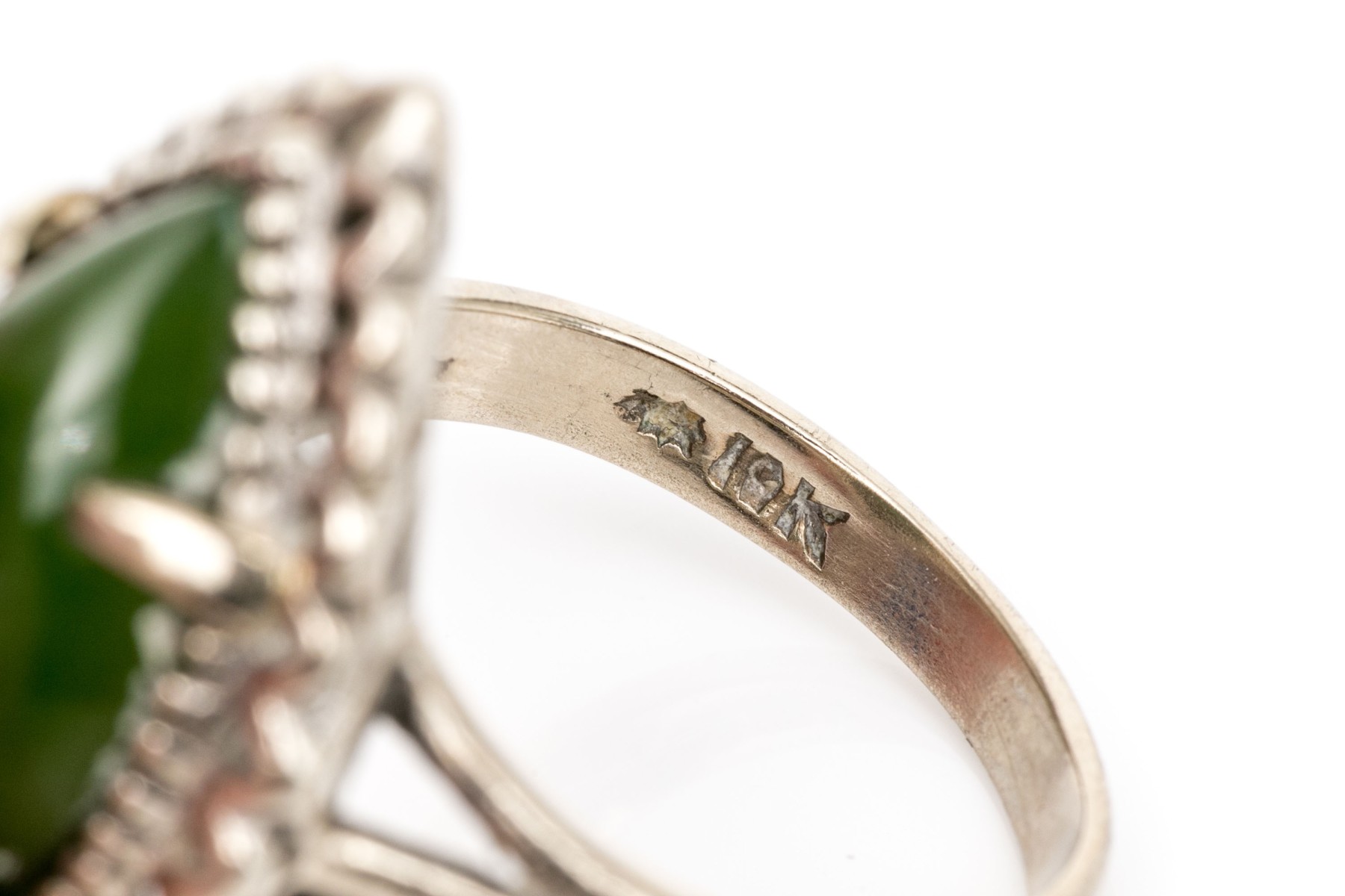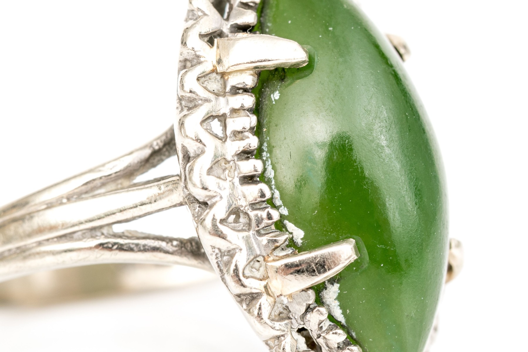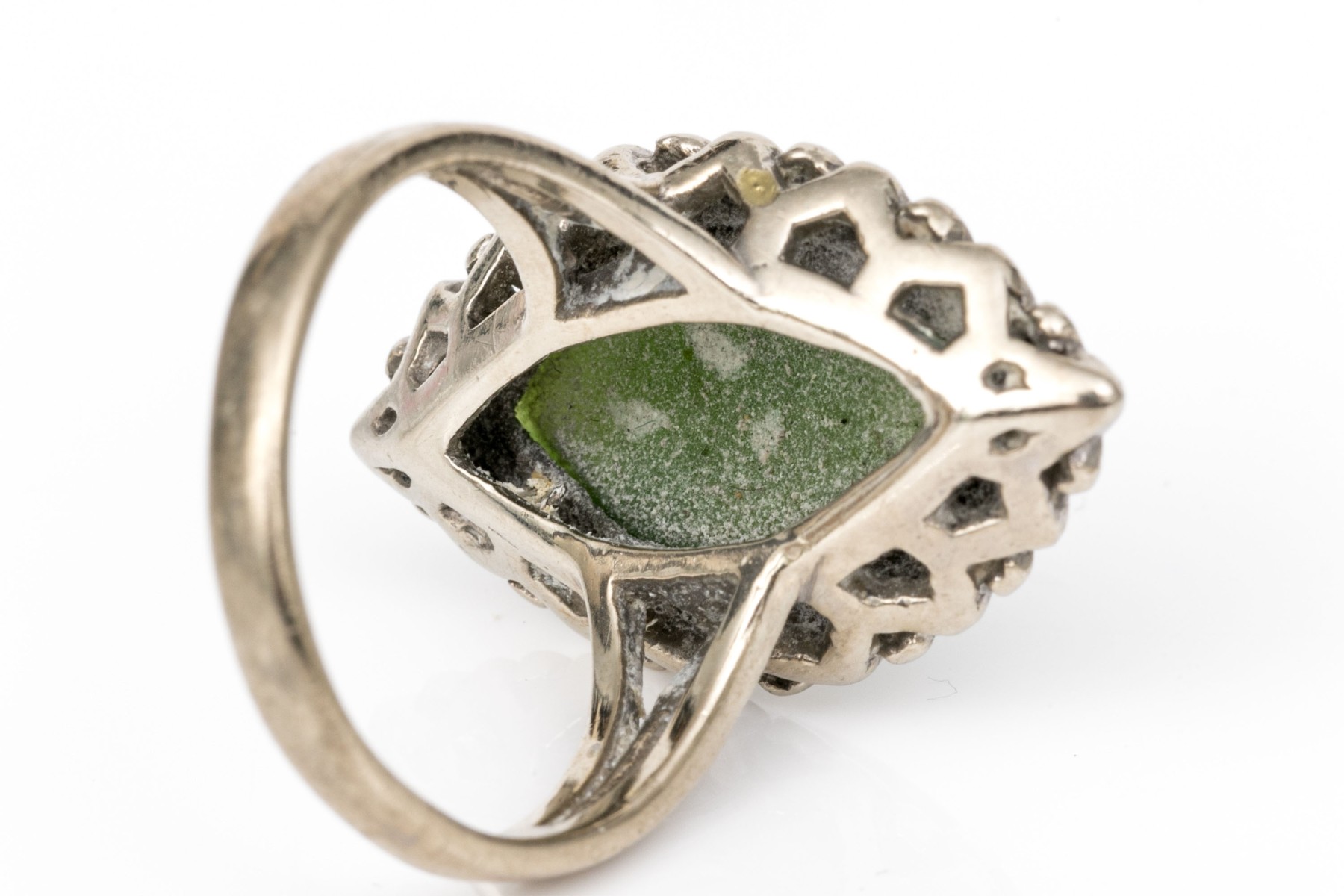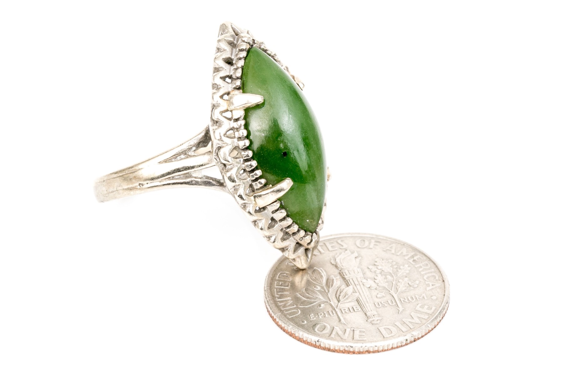 10k white gold marquise cabachon nephrite jade ring, size 6