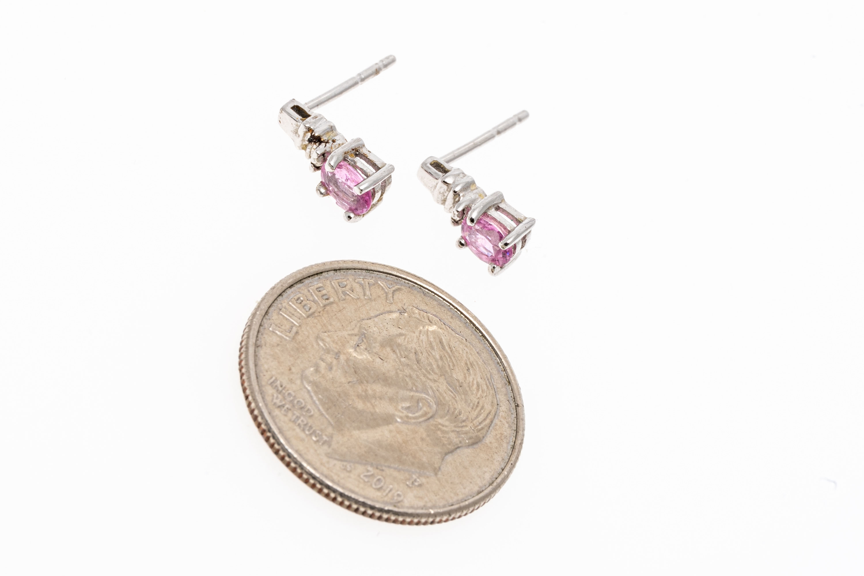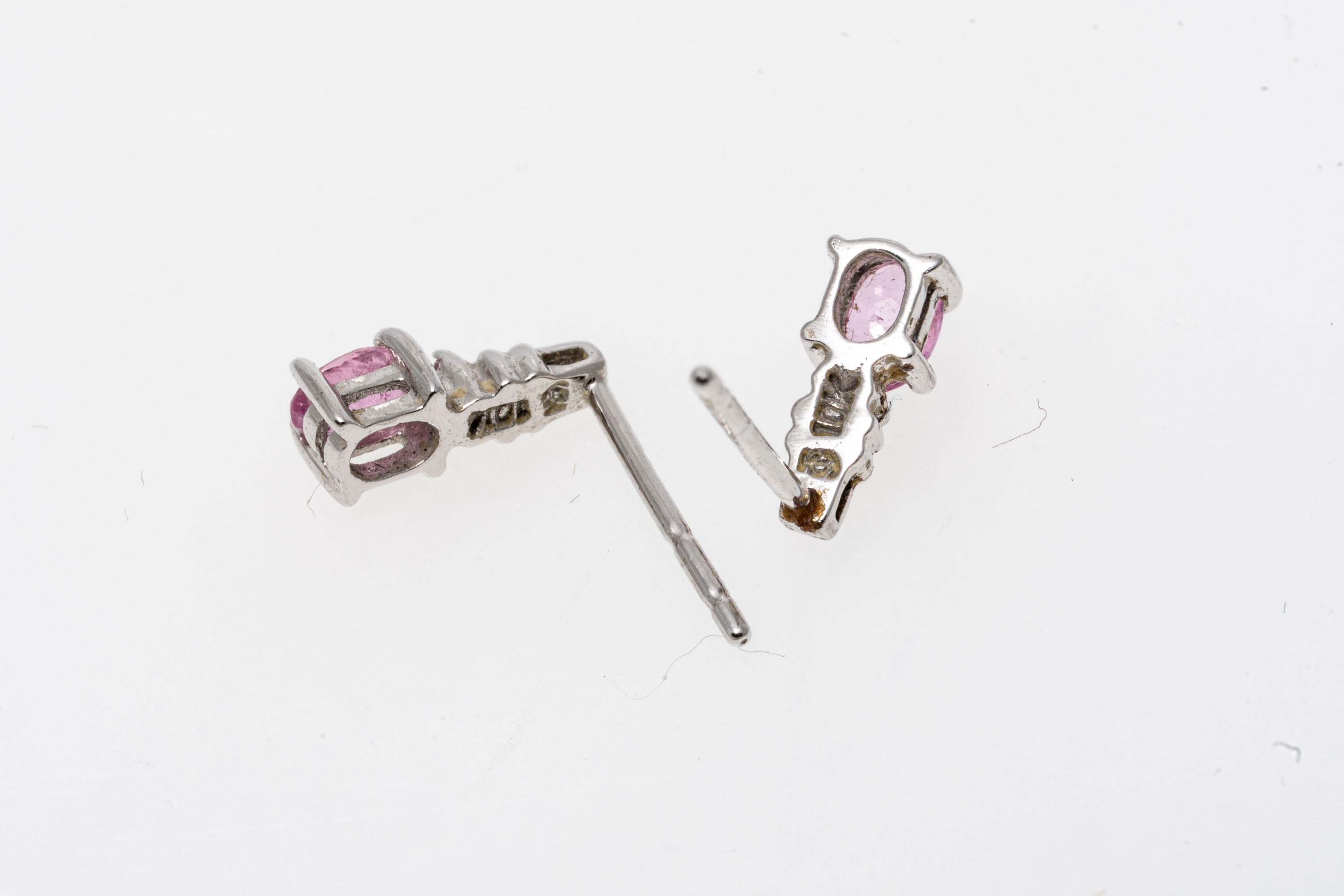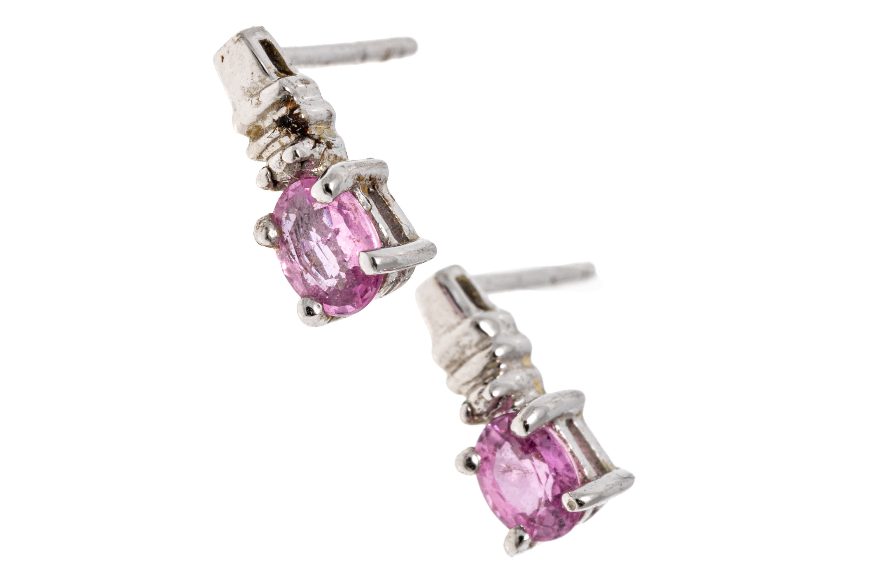 10k white gold oval pink sapphire earrings, finished with posts and missing clutch style backs