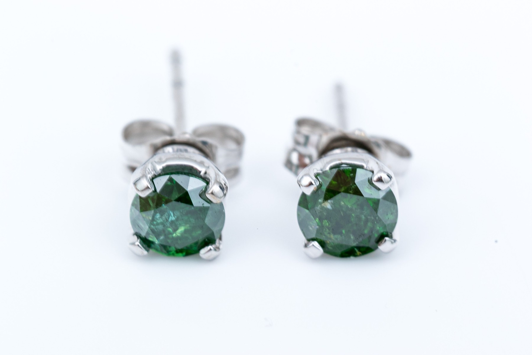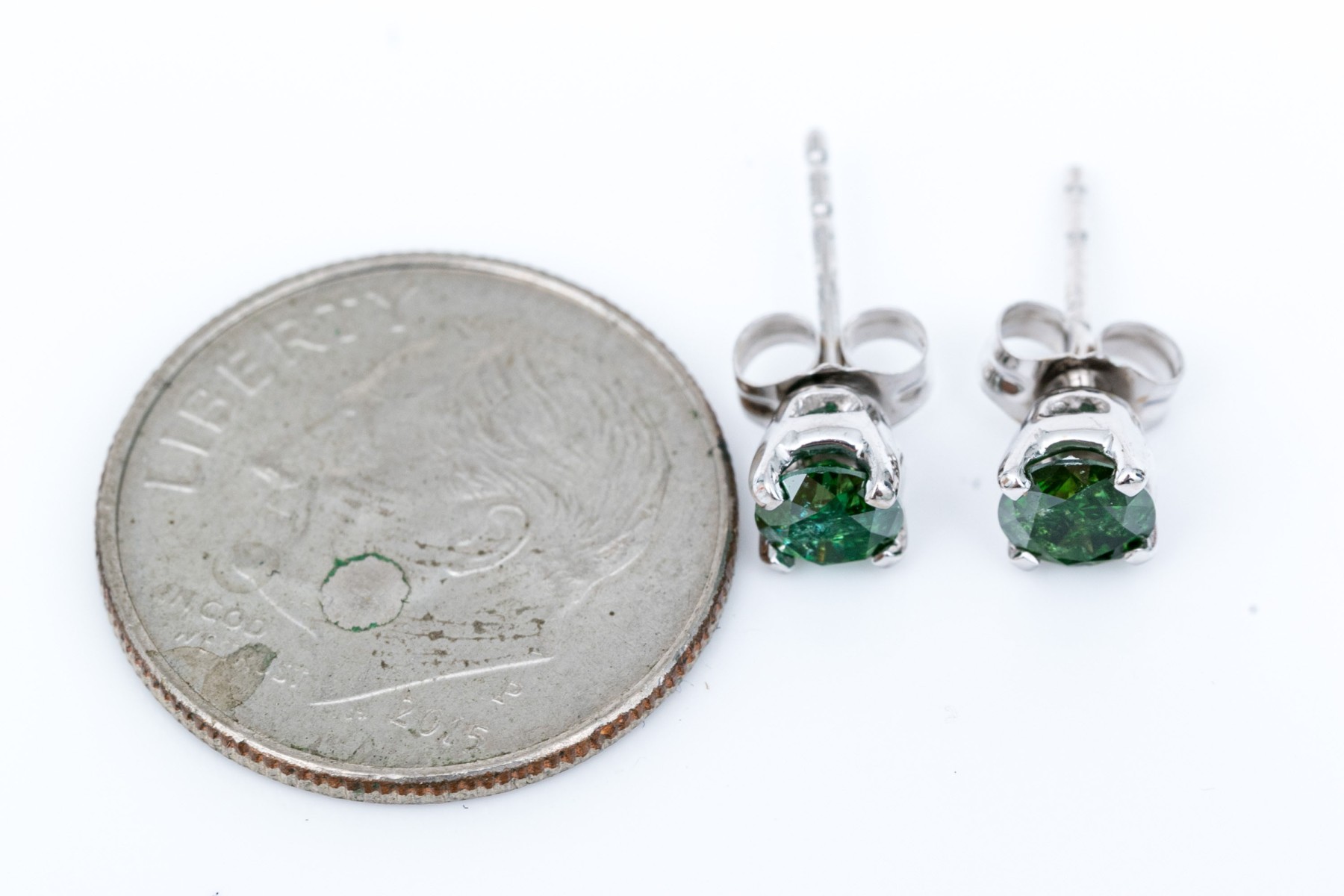 10k white gold pretty green moissanite stud earrings, finished with post and clutch style backs